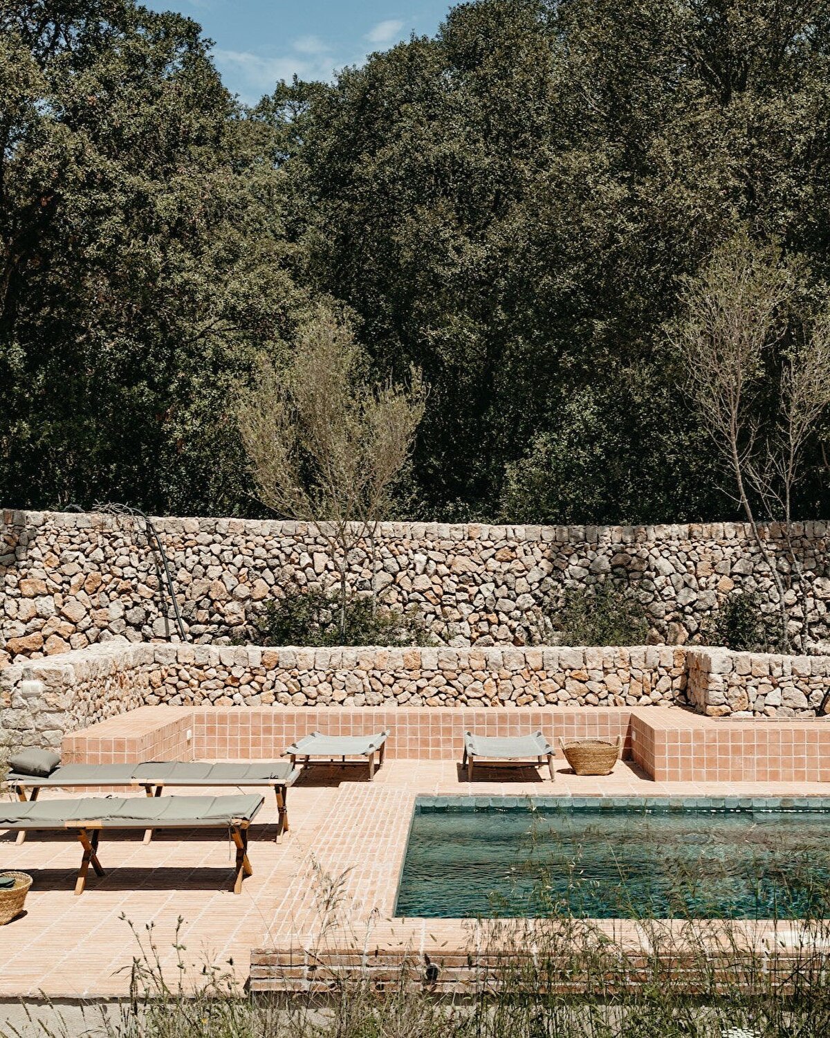 Mimarlar Anne-Cécile Comar ve Philippe Croisier, orijinal yapıların karakterini koruyarak alanı yeniden tasarladıklarını belirtiyor. Rustik ve çağdaş detayların buluştuğu tasarımda malzeme paleti, Menorca'nın yerel taş işçiliği, pişmiş toprak zeminler, iroko ahşap detaylar ve el dokuması tekstiller gibi geleneksel unsurlarına dayanıyor. Aynı zamanda Afrika, Orta Doğu ve Patagonya'dan esinlenen tasarım detayları, sahiplerinin dünya çapındaki deneyimlerini yansıtıyor.