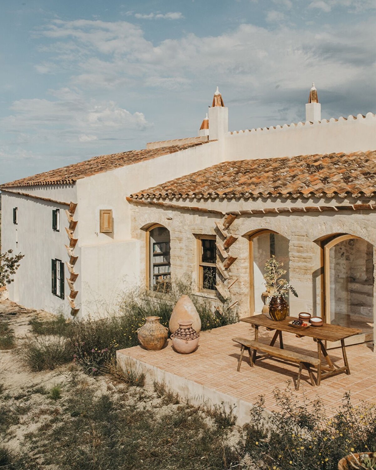 Menorca kırsalında yer alan harap durumdaki iki eski çiftlik binası, Paris merkezli Atelier du Pont ve Aru Arquitectura iş birliğiyle canlı renkler ve doğal dokularla yenilenerek yazlık bir eve dönüştürüldü.