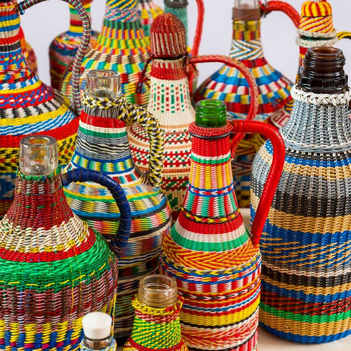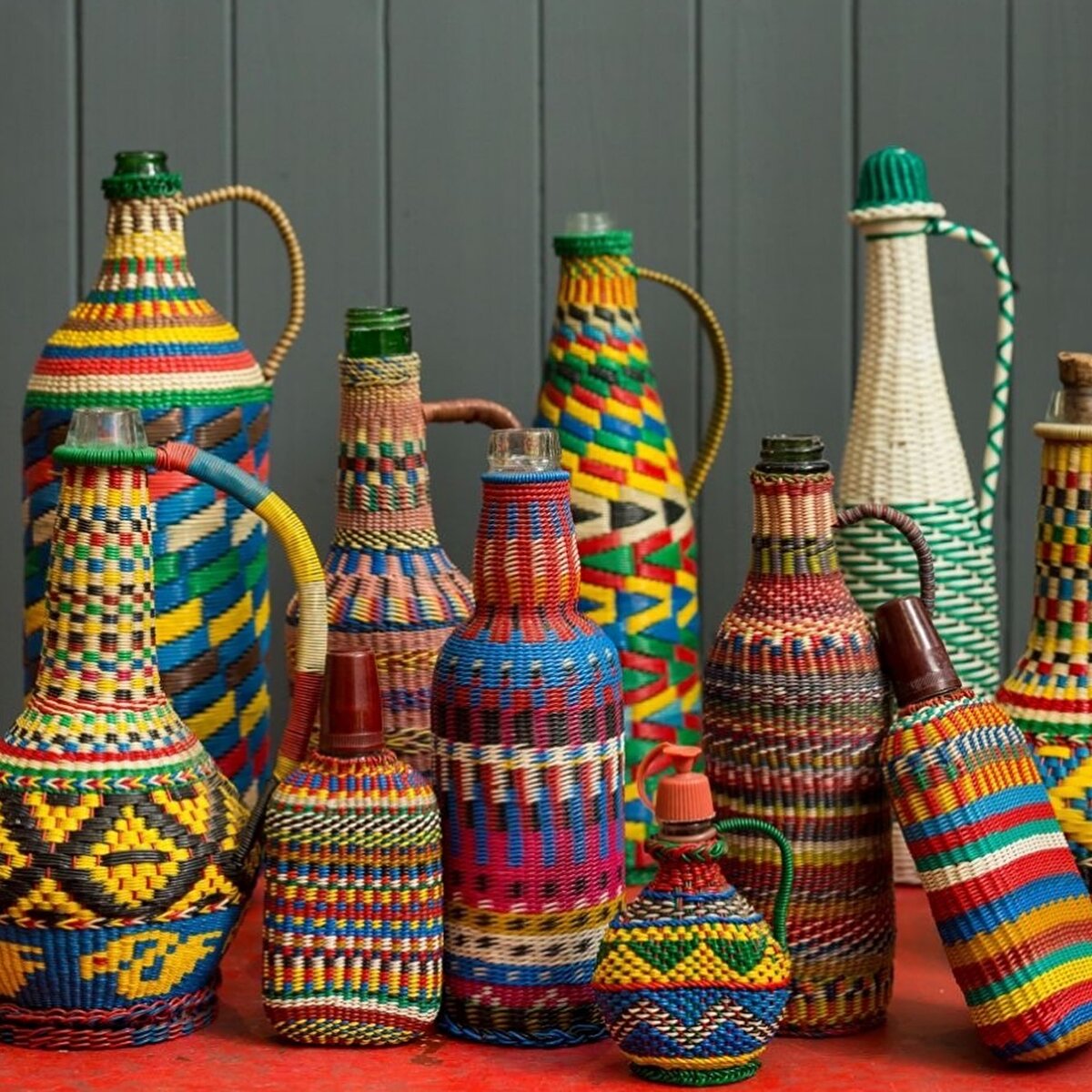 @refoundobjects' “Miners Bottle" series is created by weaving hand-woven patterns on glass bottles.
