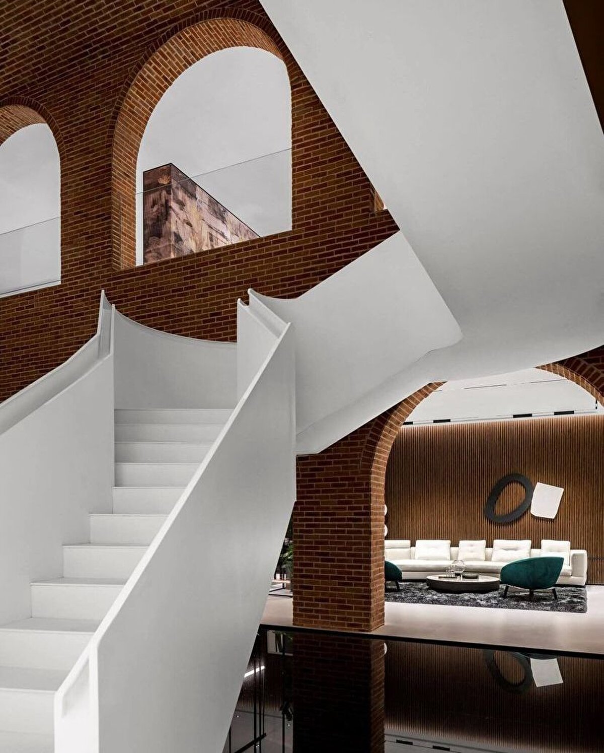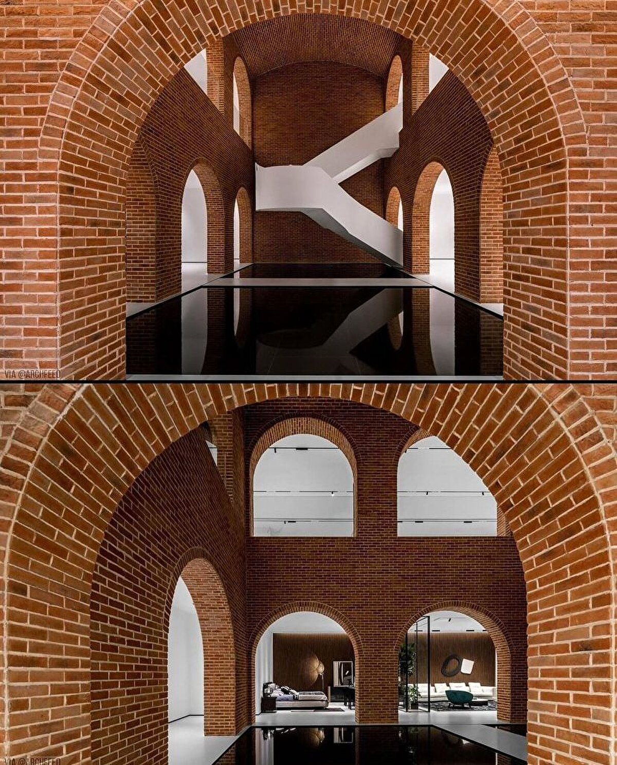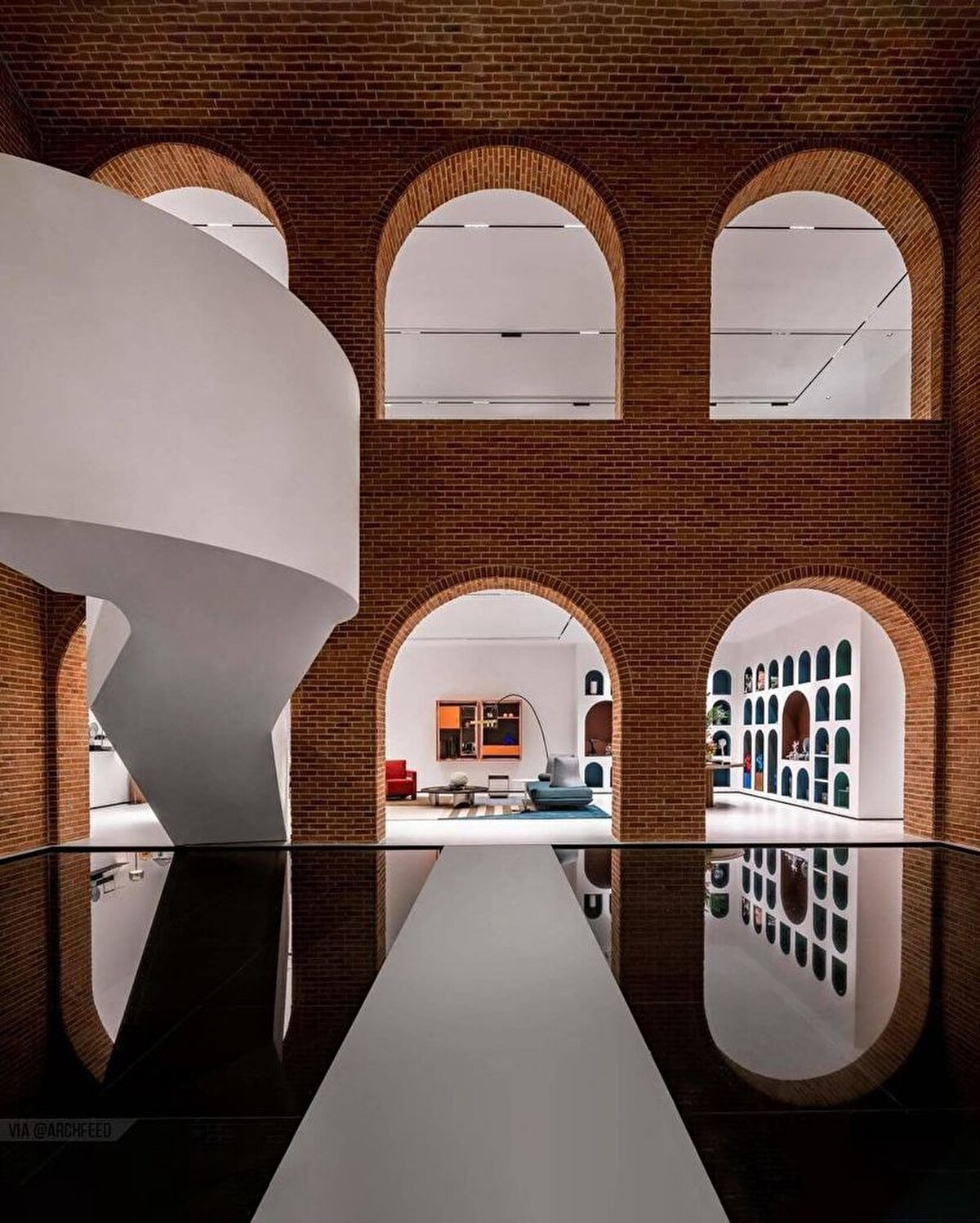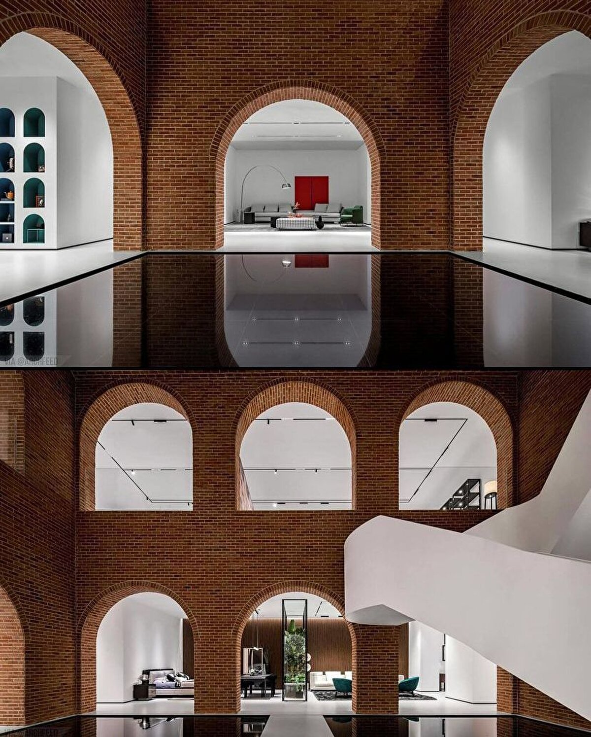 Geleneksel iş senaryolarının ötesine geçen tasarımcılar, insanları, ürünleri ve sahneleri etkileşim yoluyla birleştiren bir alan oluşturmaya karar veriyor. Catanian, Çin kültürünü ve geleneksel İtalyan mimari tarzlarını birleştirerek kapalı bir alanda tuğlalarla atriyumu inşa ediyor. Ziyaretçiler, atriumun sunduğu huzur içinde dolaşırken, kemerlerin ardında farklı sahnelerle karşılaşarak çeşitli hikayeleri zihinlerinde canlandırabiliyor. Atrium, sürekli değişen bir deneyim sunarak insanlarla çevre arasında uyum sağlayan işlevsel bir sanat eserine dönüşüyor.