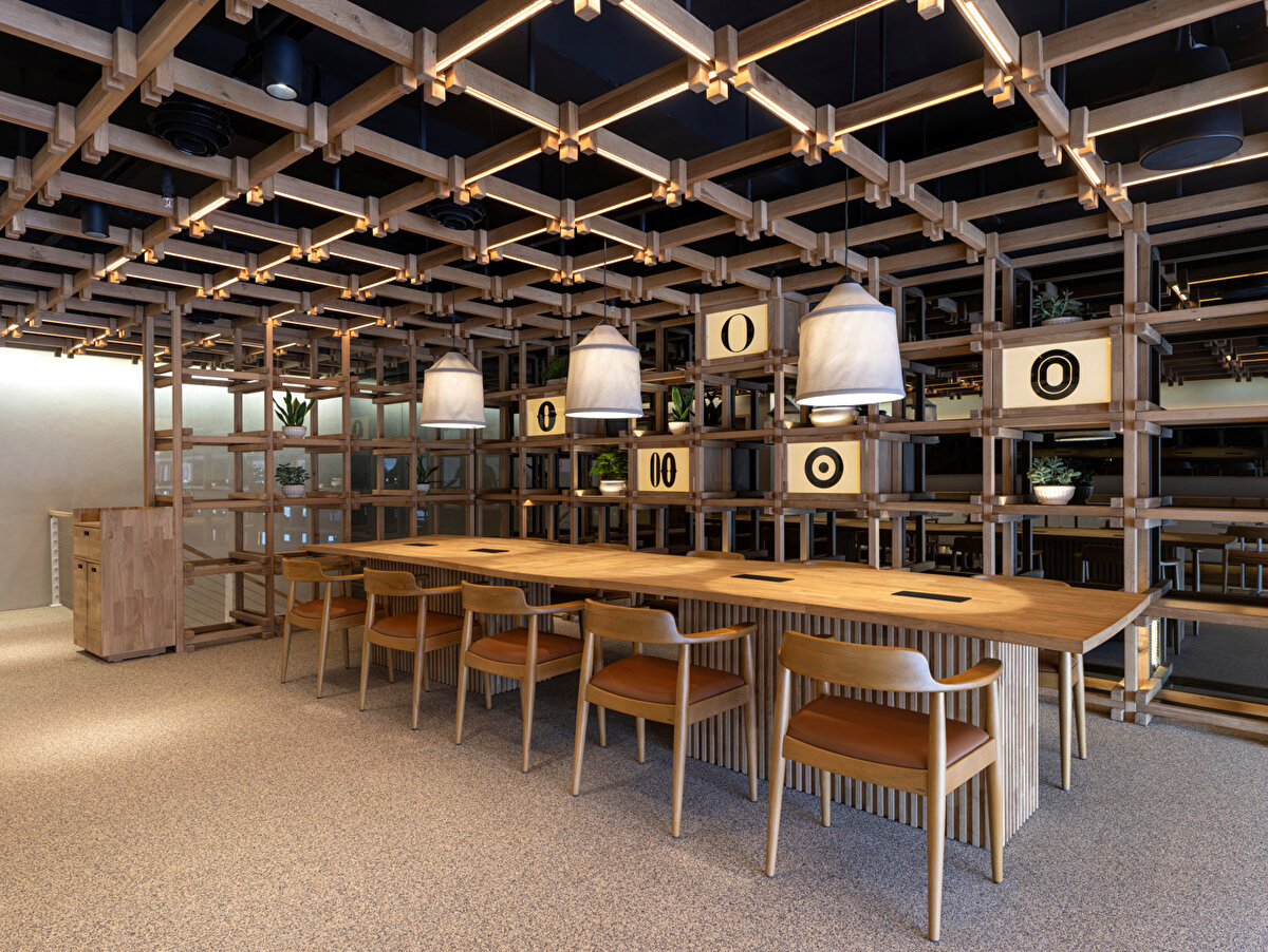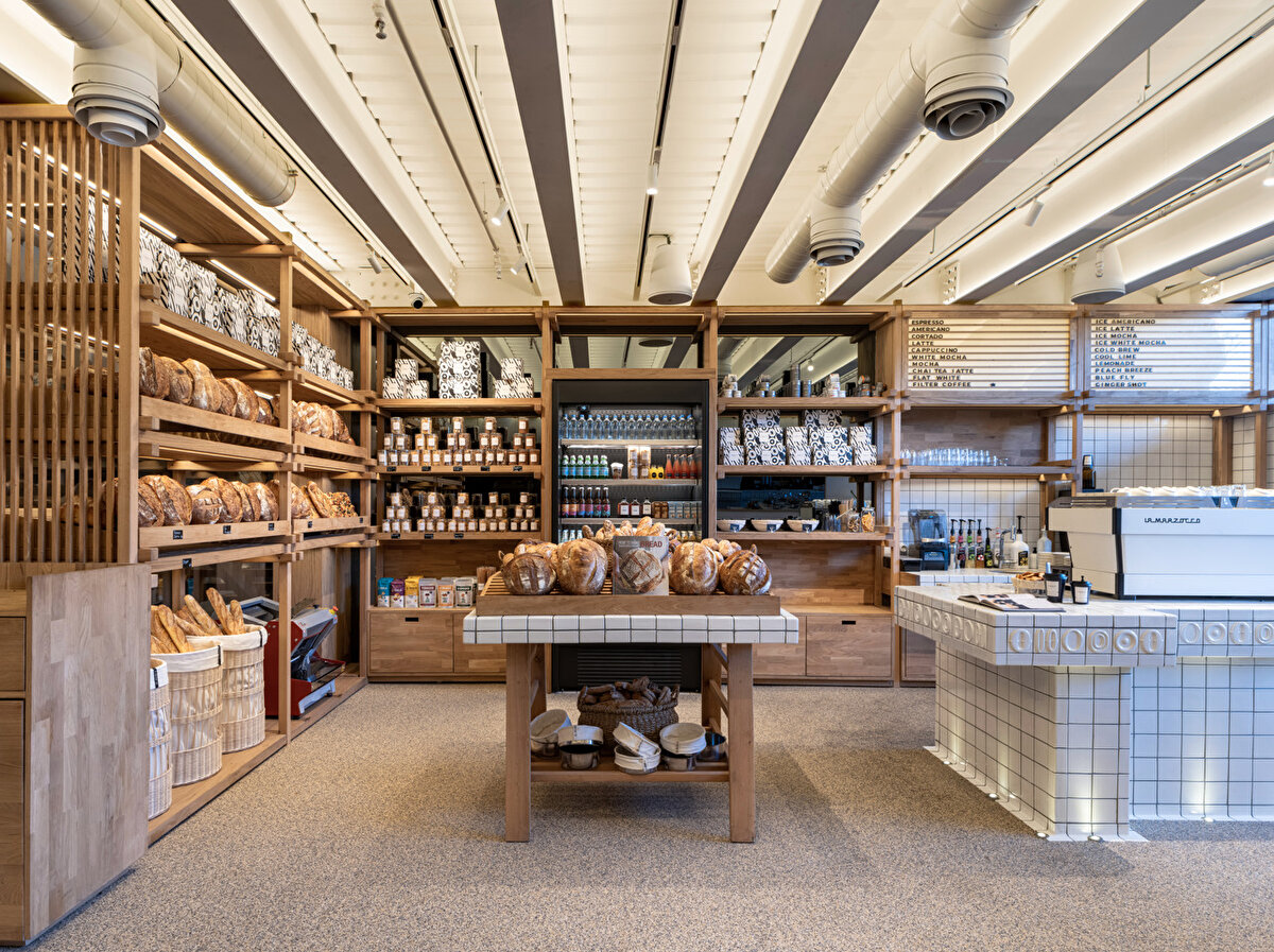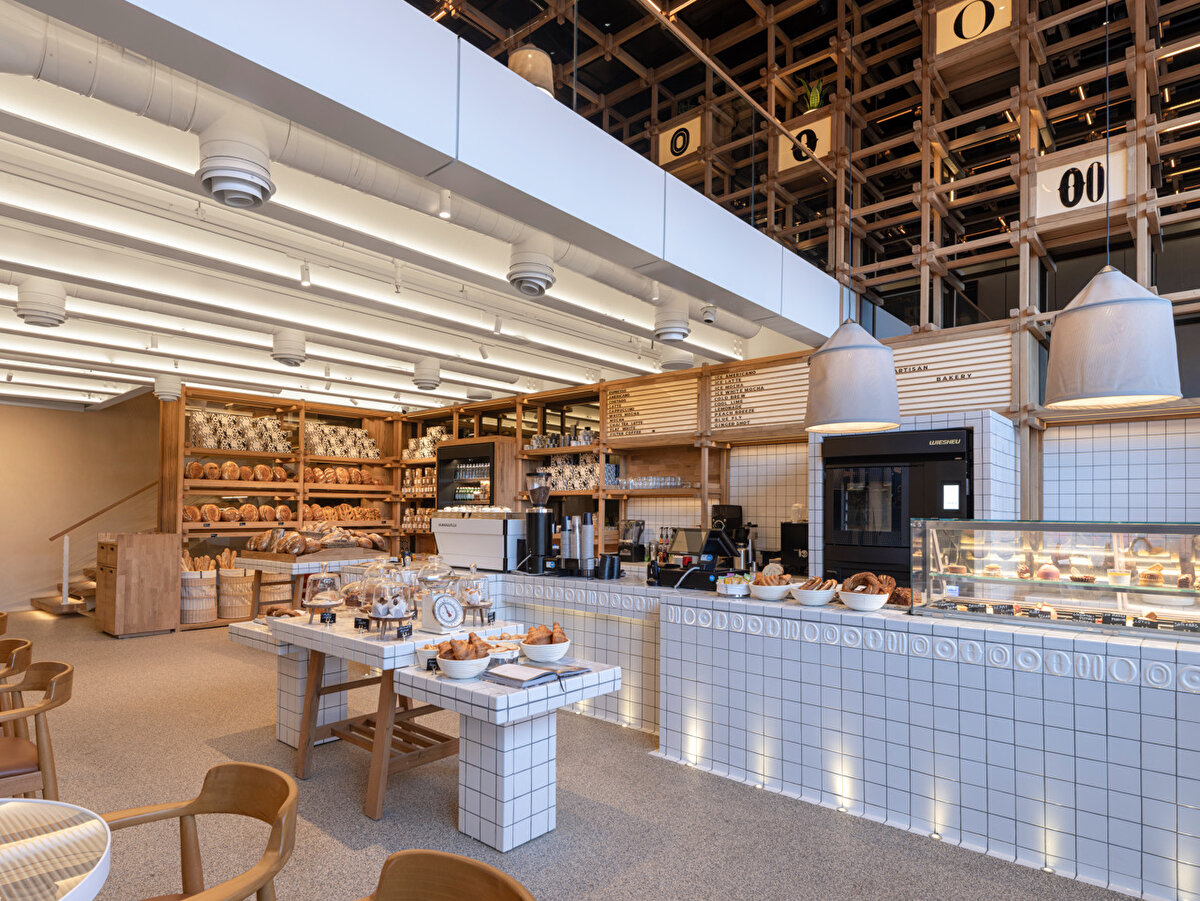 İÇ MEKAN TASARIMI 14 Proje Ofisi: GİRİFT Proje: Fırın'o Artisan Bakery Konum: Gaziantep Yıl: 2023 GİRİFT tarafından tasarlanan Fırın'o Artisan Bakery'in iç mimari tasarımında genç ve yenilikçi bir yaklaşım sergilenerek aile mirasını marka olarak farklı bir noktaya taşımak amaçlanıyor. Mekanın 6.3 metre yüksekliği kullanılarak, işlevsel ve görsel birlikteliği sağlayan bir kabuk tasarlanıyor. Parametrik bir yapı olan bu kabuk, masif meşe ahşap latalardan oluşuyor ve modüler bir sistem şeklinde duvardan tavana kadar uzanıyor. Bu tasarım, mekana dinamizm katmanın yanı sıra aydınlatma, akustik ve depolama gibi işlevleri de yerine getiriyor.