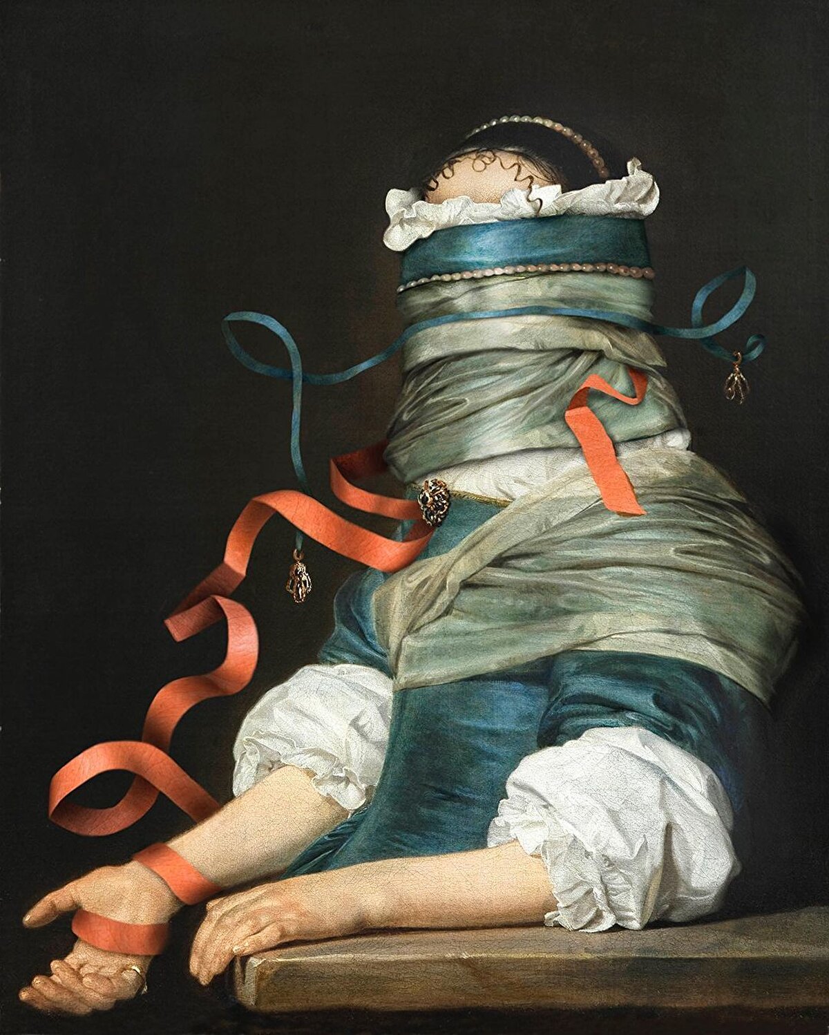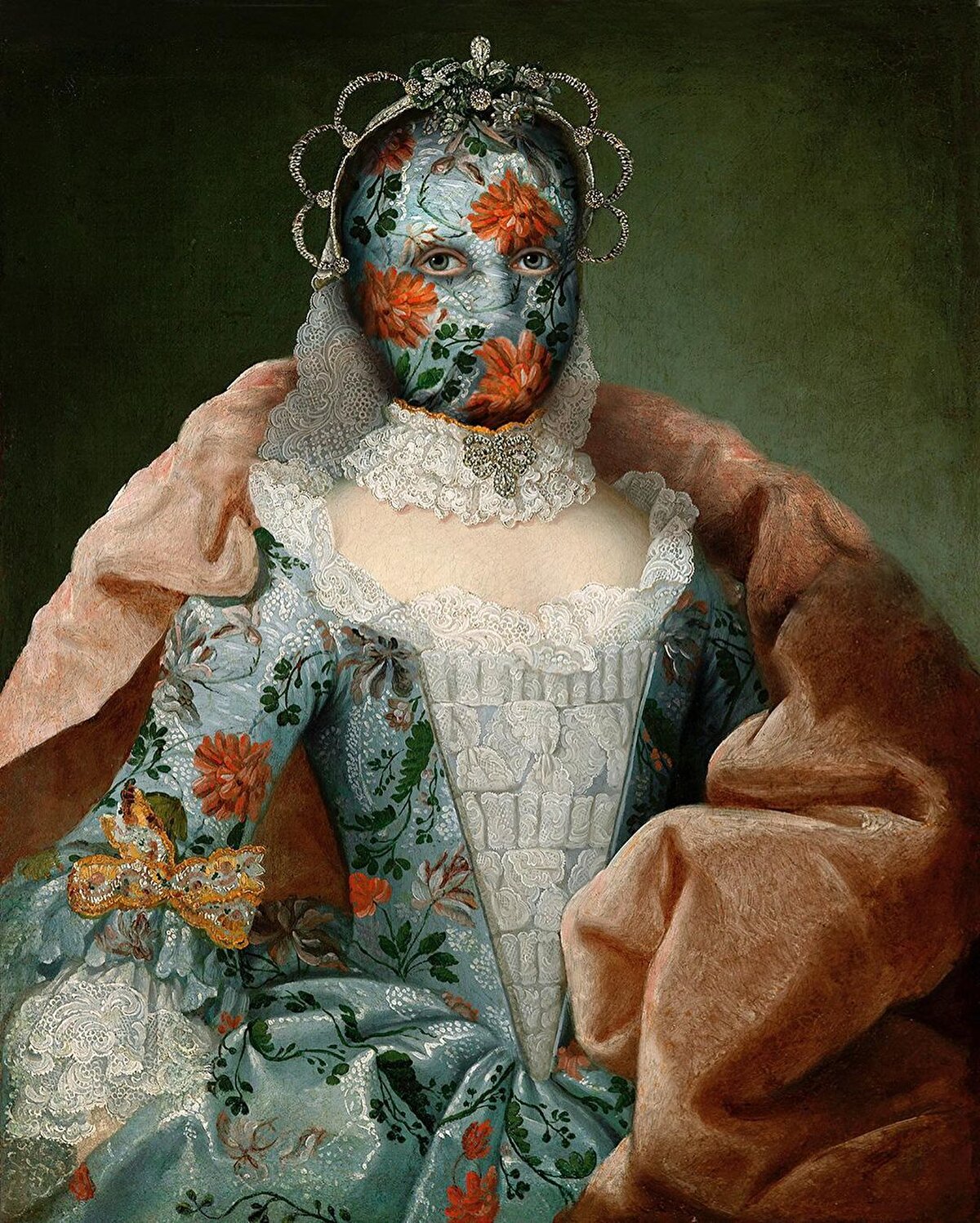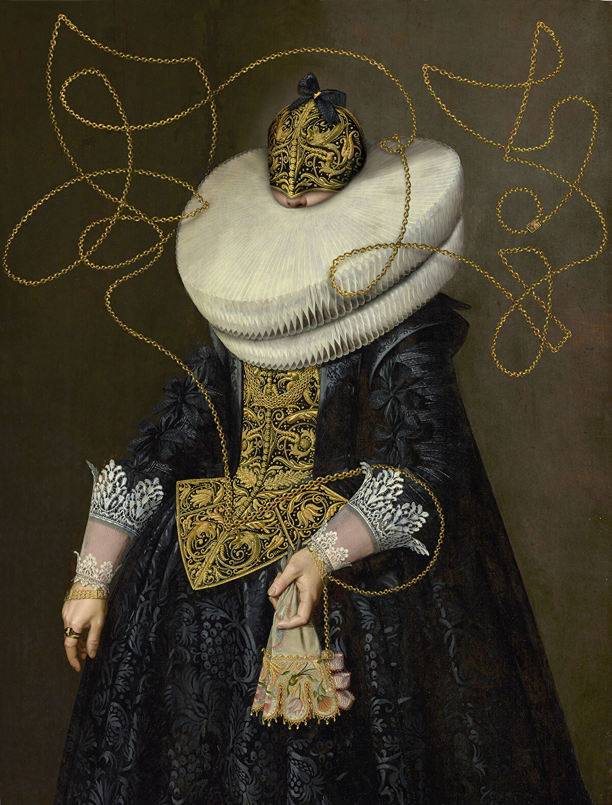 Sanatçı @volker.hermes, 'Gizli Portreler' başlıklı serisi ile orijinal görüntülerin dokularını ve desenlerini abartarak sanat eserlerini değişime uğratıyor. Sanatçı, bu süreçte portlerdeki yüzleri gizleyen, yaramaz görselleştirmeler üreten maskeler ve hem gösterişli hem de absürd yeni süslemeler oluşturuyor.