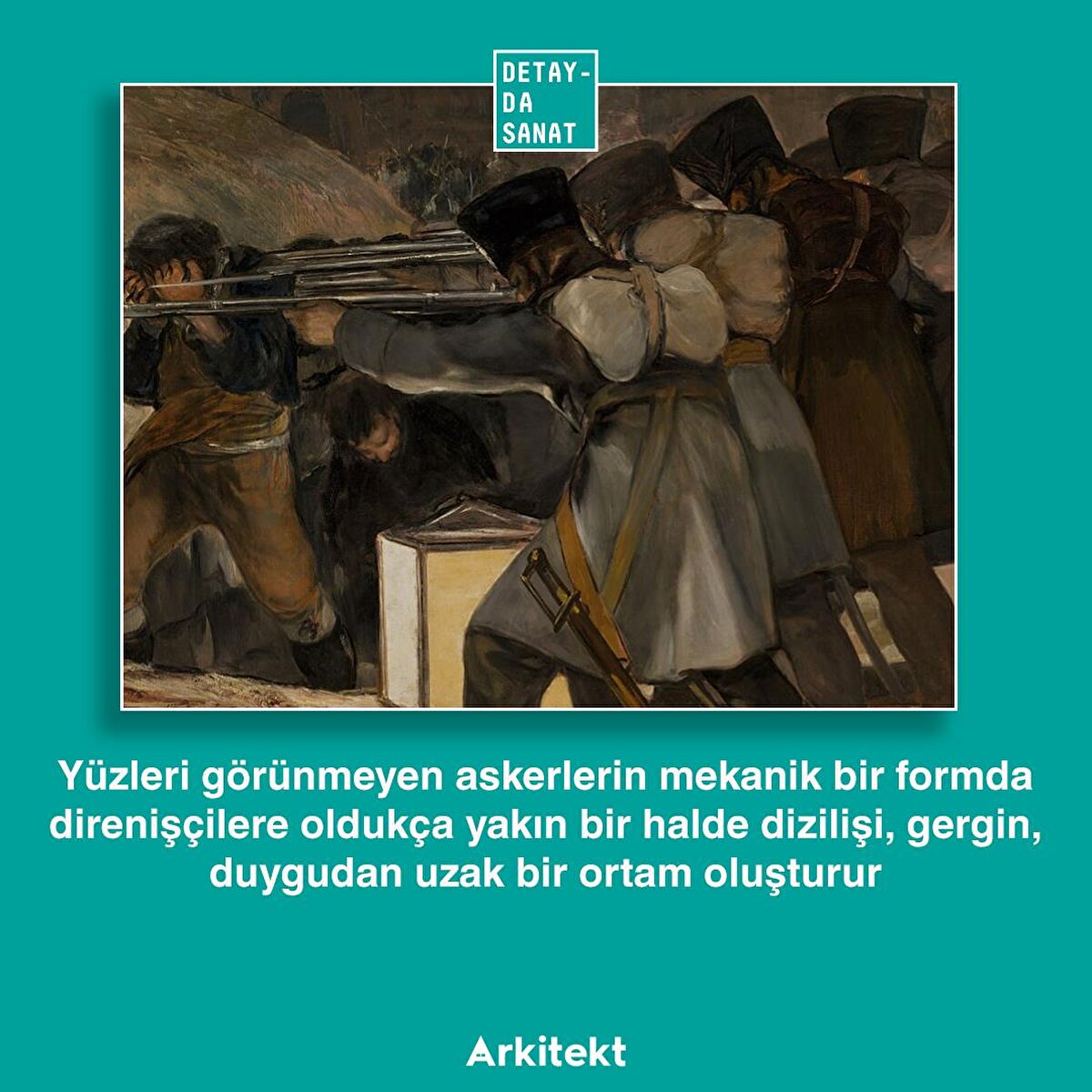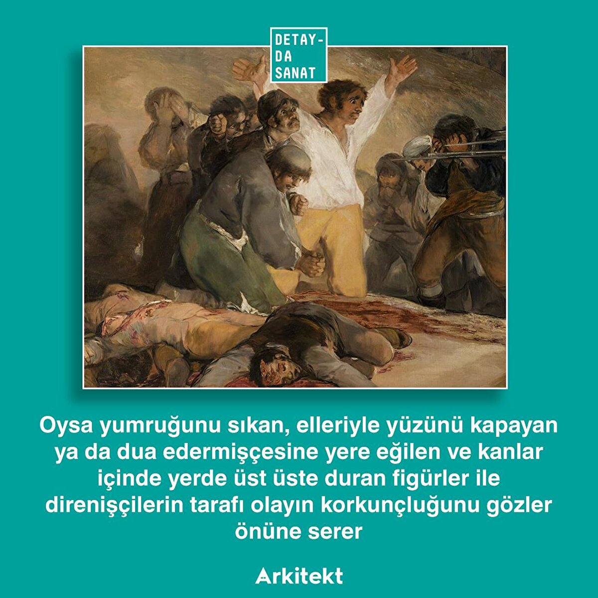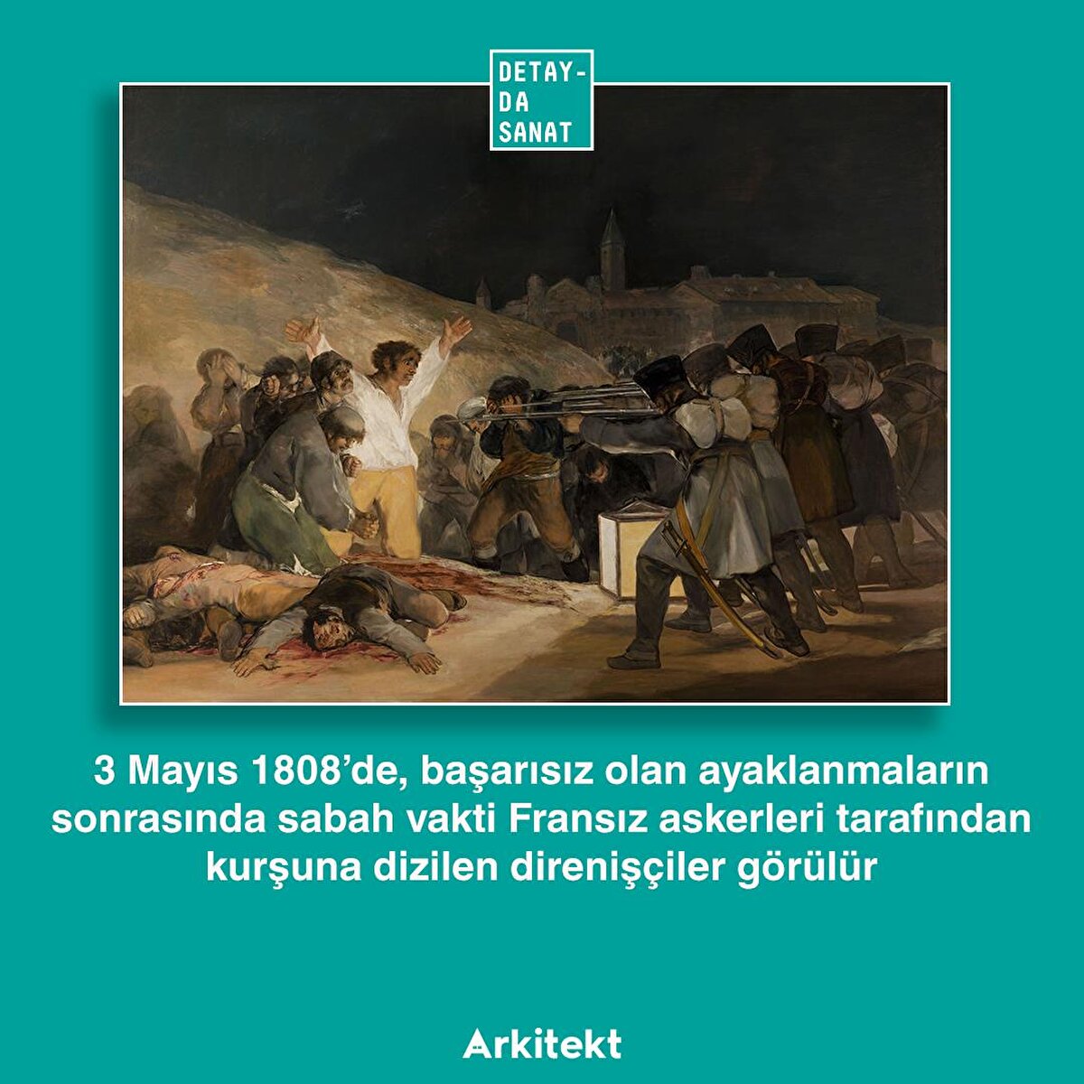 Goya'nın büyük bir ustalık ve hızla çizdiği 3 Mayıs 1808, modern sanata geçişte savaş kurbanları ölümsüzleştirip, düşmanı silikleştiren ilk örneklerdendir.