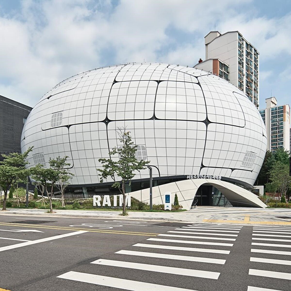 RAIM is a cultural landmark in northeast Seoul, built as a center for the 4th Industrial Revolution. The project is being realized in collaboration with MAA and Withworks between 2019 and 2024. MAA's architectural manifesto for RAIM is a distinctive design language that utilizes robots, AI technologies and intelligent design and construction methods to create an immersive universe for visitors. The museum's spherical, non-directional form is defined by liquid and organic shapes that harmonize with the advanced technologies it contains.