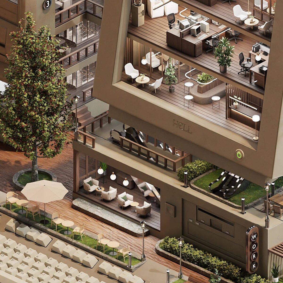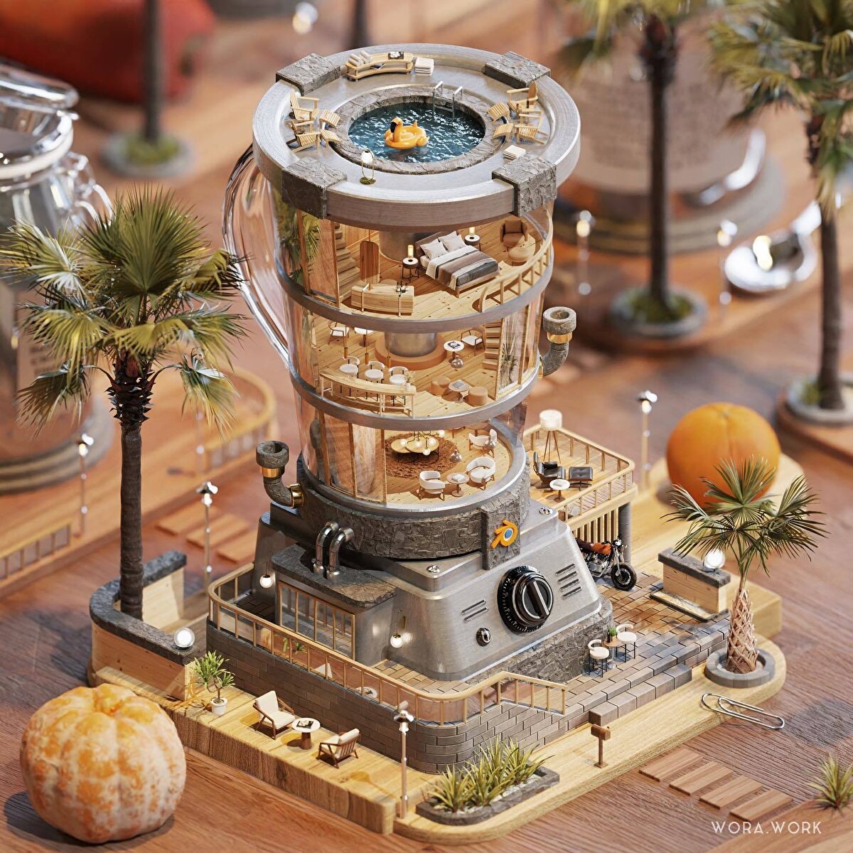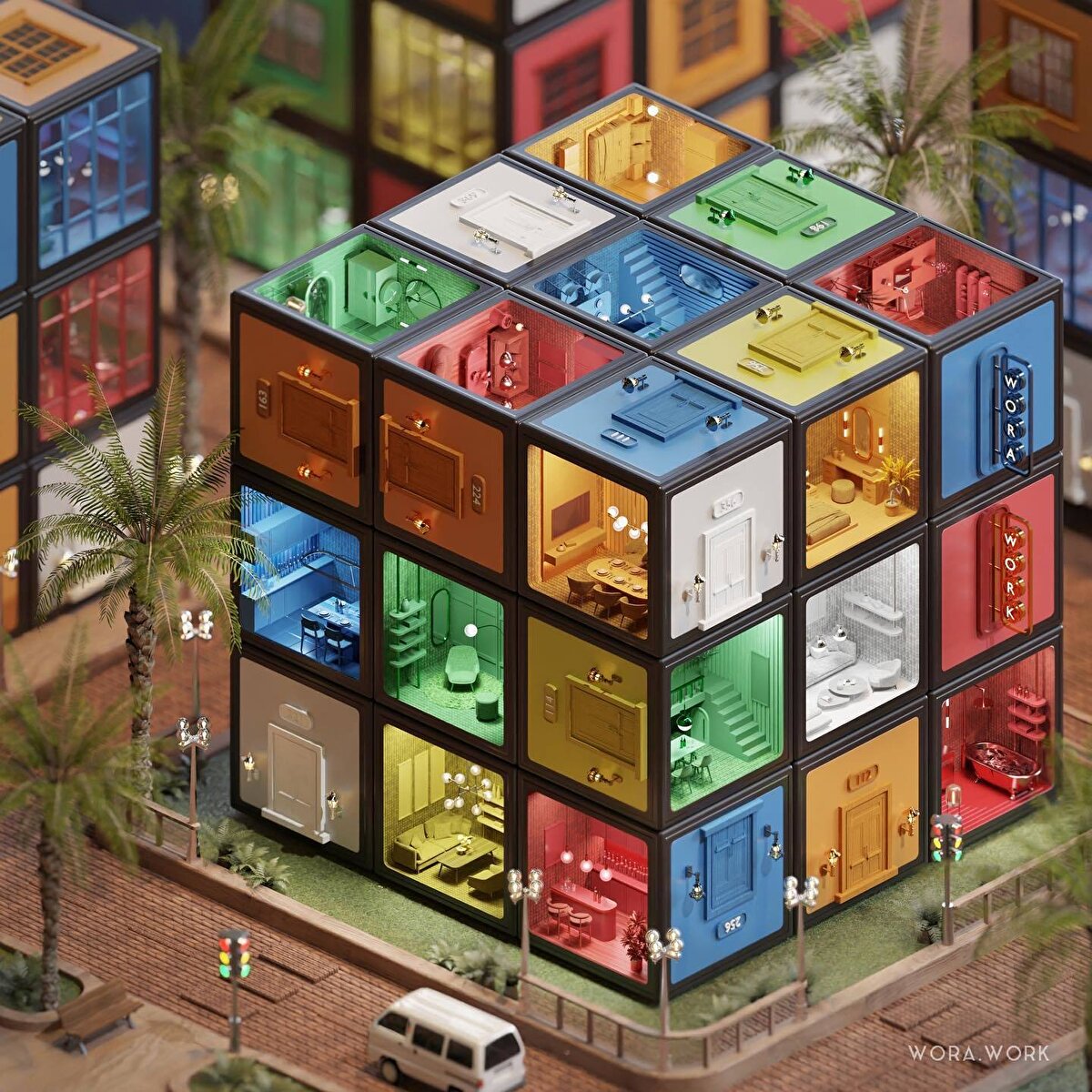 @wora_work, dijital anlatım tekniklerini kullanarak üç boyutlu görseller üretiyor.
