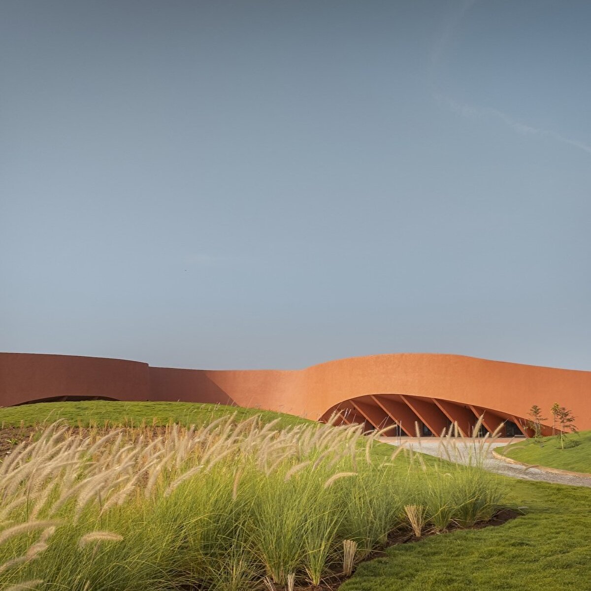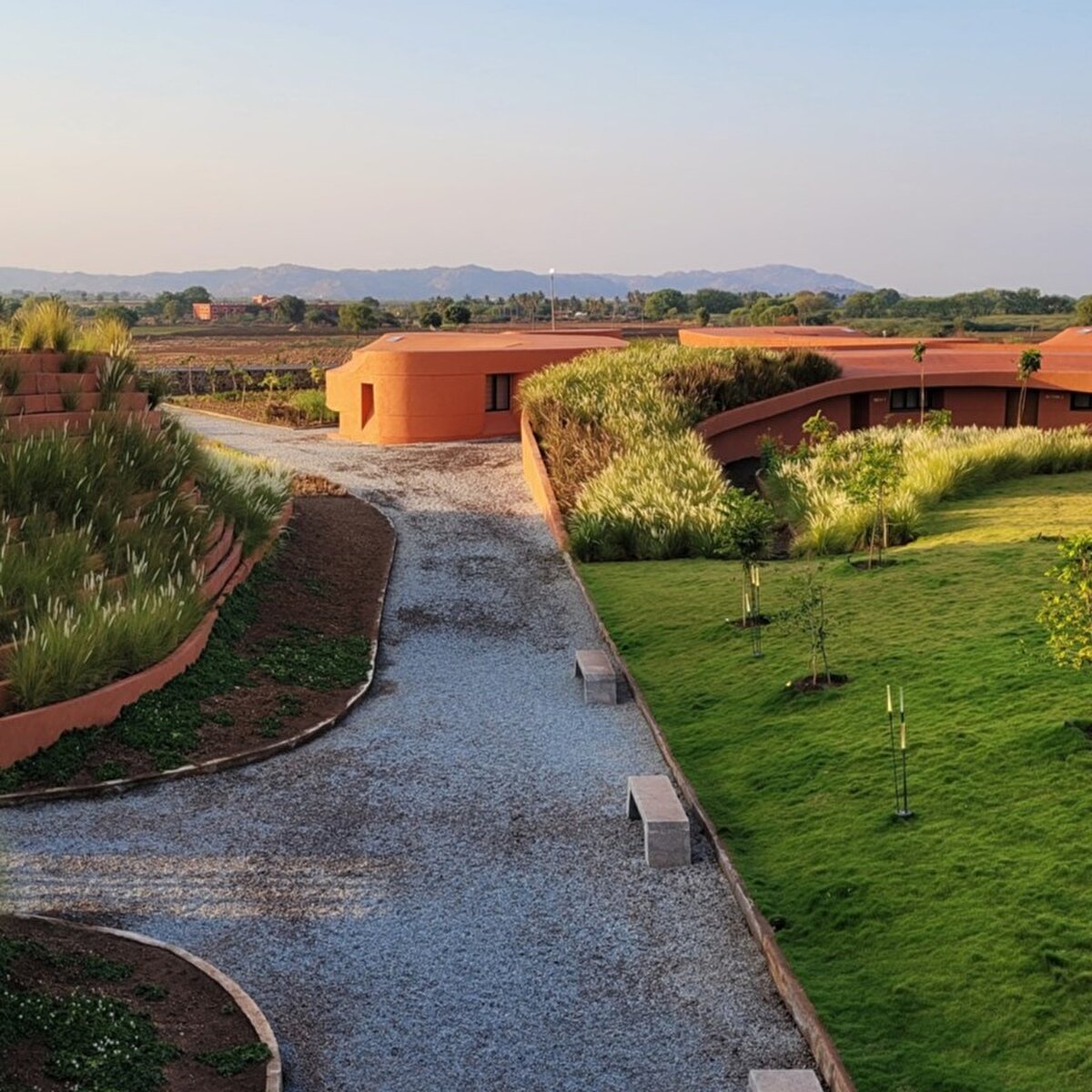 Designed in 2023 by Sameep Padora and Associates, Hampi Art Lab is located on 5 acres of land in Vijayanagar, Karnataka. The view of the Tungabhadra River and the topography of the surrounding hills inspire the design of the project. The project is based on a central 'circulation space', with various facilities planned for artist residencies on either side of this space.