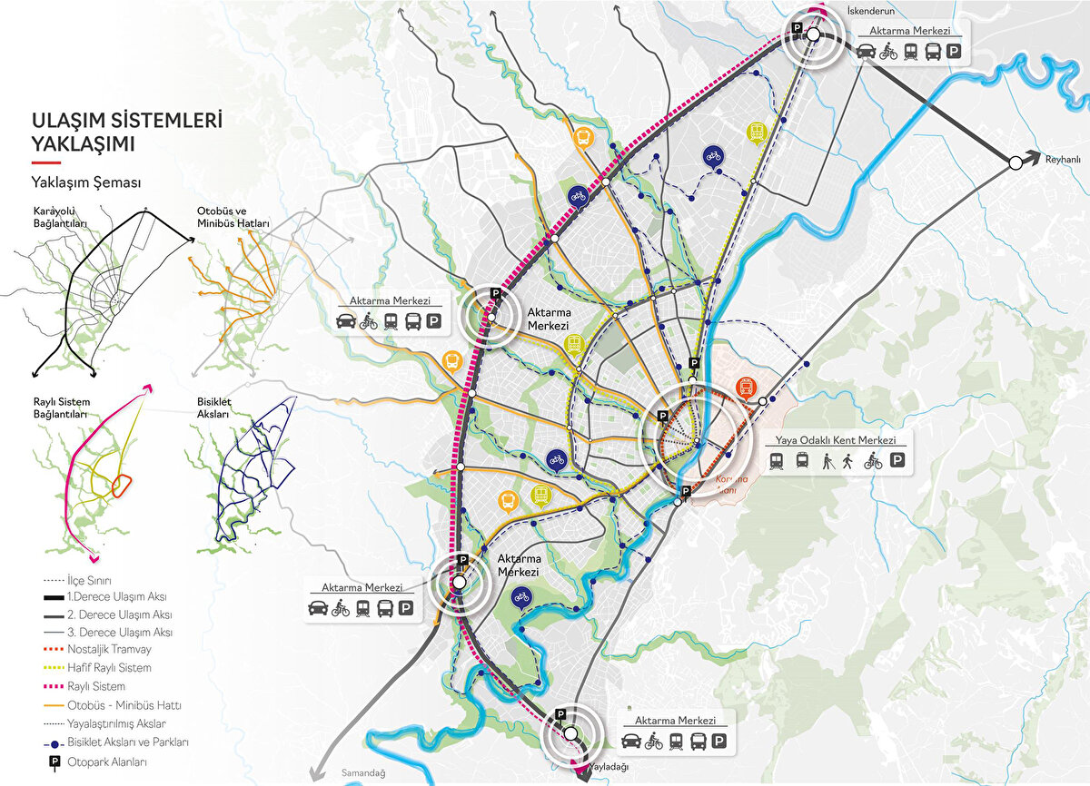 Tüm bölge içerisinde mevcut ana yol izleri tutularak yeniden kurgulanan ulaşım ağı, yaya, bisiklet, insan, toplu taşıma odaklı olarak ele alınmakta, özel otomobile bağlı ulaşım kontrollü olarak düzenlenmektedir."