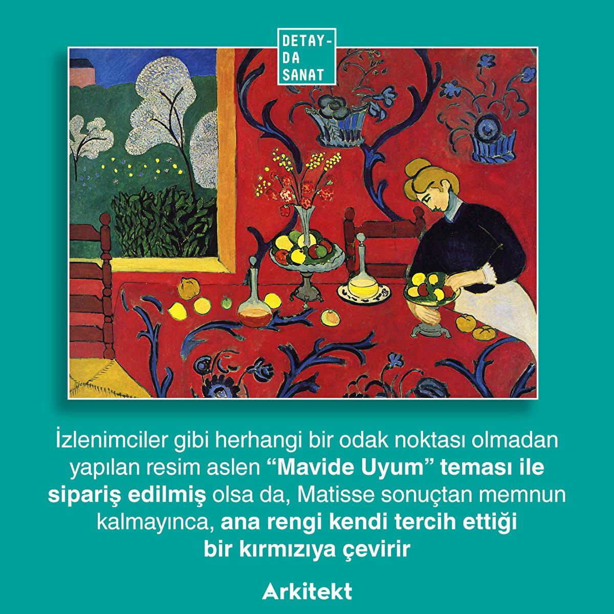 "Doğayı köle gibi kopyalayamam; doğayı yorumlamak ve onu resmin ruhuna boyun eğdirmek zorundayım." sözleriyle sanatını özetleyen Henri Matisse ve ünlü eseri Kırmızı Oda, bu hafta Detayda Sanat'ta!