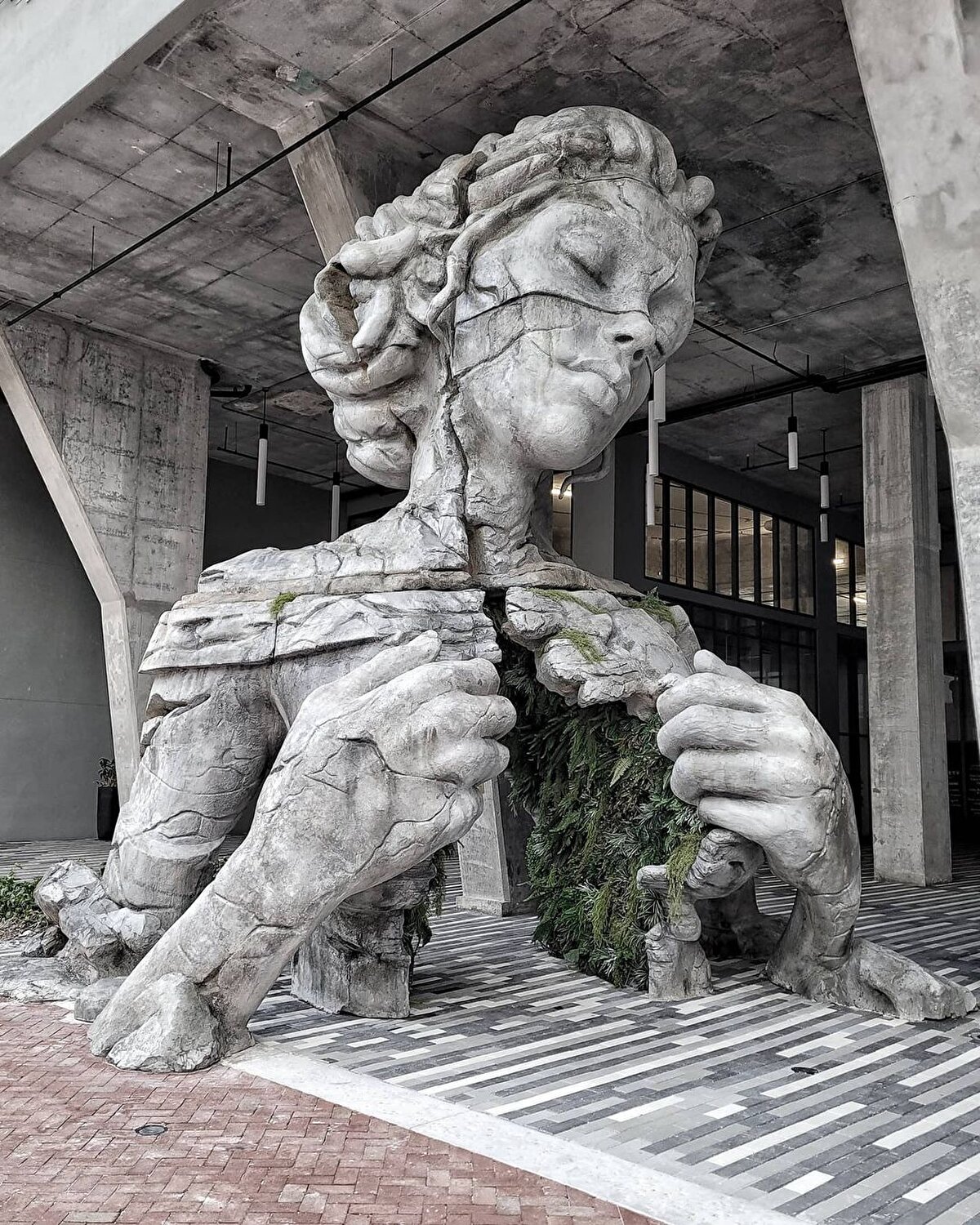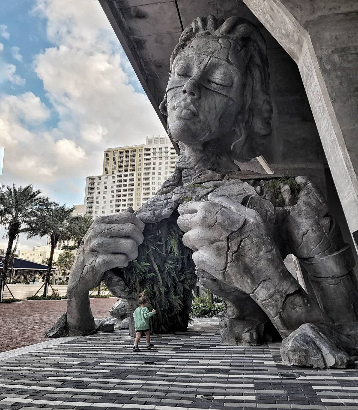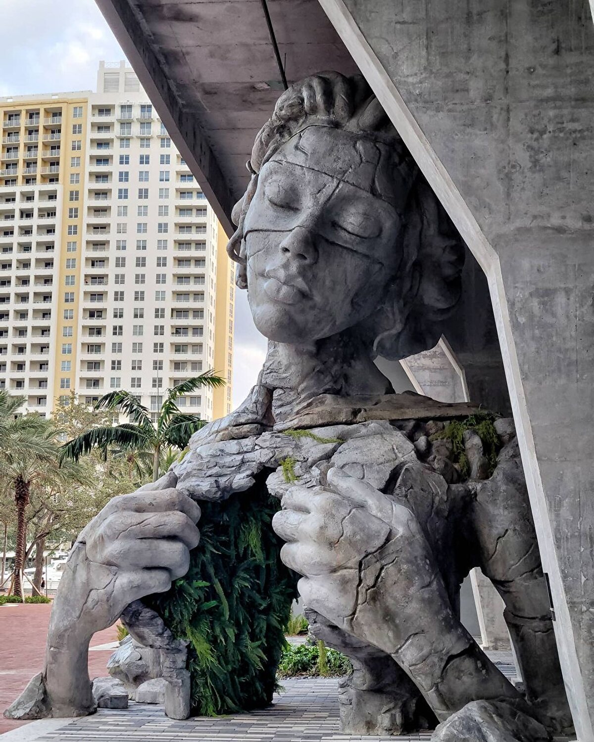 ''Thrive'' isimli en yeni çalışmalarından biri, Florida da bulunan bir konut binasının önünde, kalıcı bir kamu enstalasyonu olarak konumlandırıldı. Heykelsi figür, tıpkı bir peri masalı devinin canlanması gibi görünüyor.