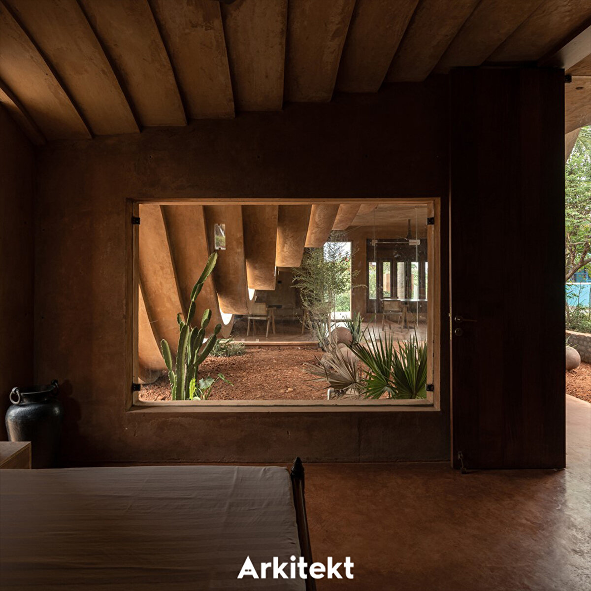 Vaazh House, designed by Vy Architecture Studio, is located in a space that is a center of belonging and conversation with neighbors, with a covered veranda called thinnai, typical of Tamil households. Located in India, the house is divided into three spaces: common areas (living room, courtyard) kitchen and bedrooms. The courtyard in the center unites all spaces.