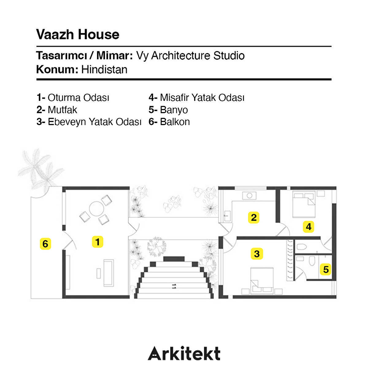 Vaazh House, Vy Architecture Studio tarafından tasarlanıyor, Tamil hanelerine özgü thinnai adlı kapalı verandasıyla komşularla sohbet ve aidiyetin merkezi olan bir alanda konumlanıyor. Hindistan'da yer alan ev, üç alana ayrılıyor: ortak alanlar (oturma odası, avlu) mutfak ve yatak odaları. Merkezde yer alan avlu, tüm alanları birleştiriyor.