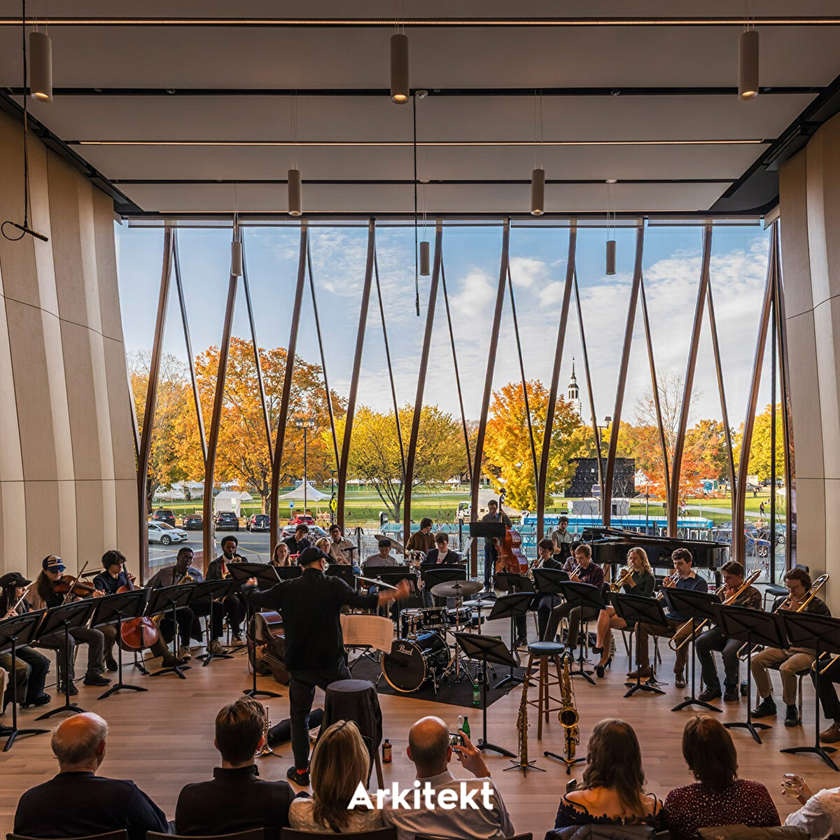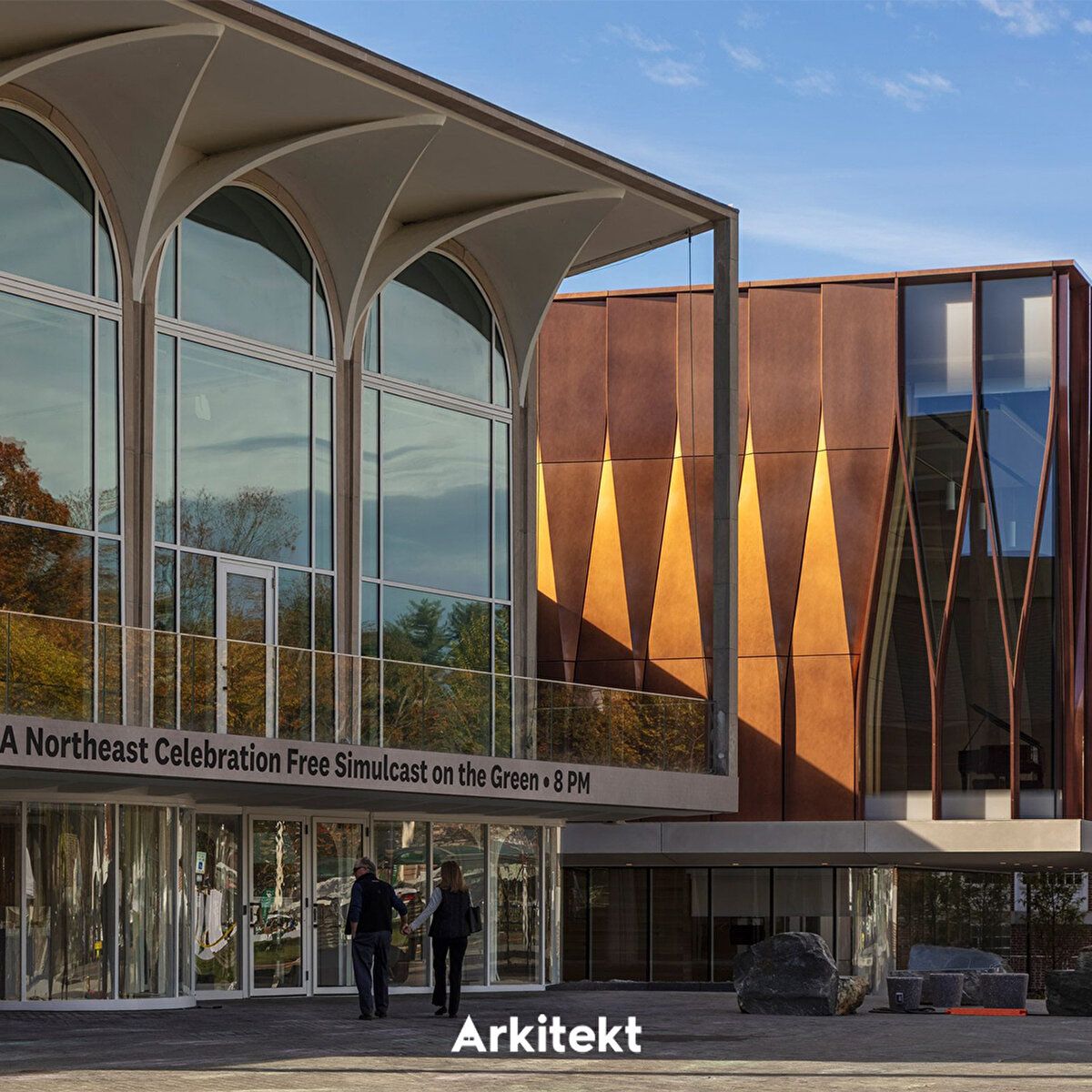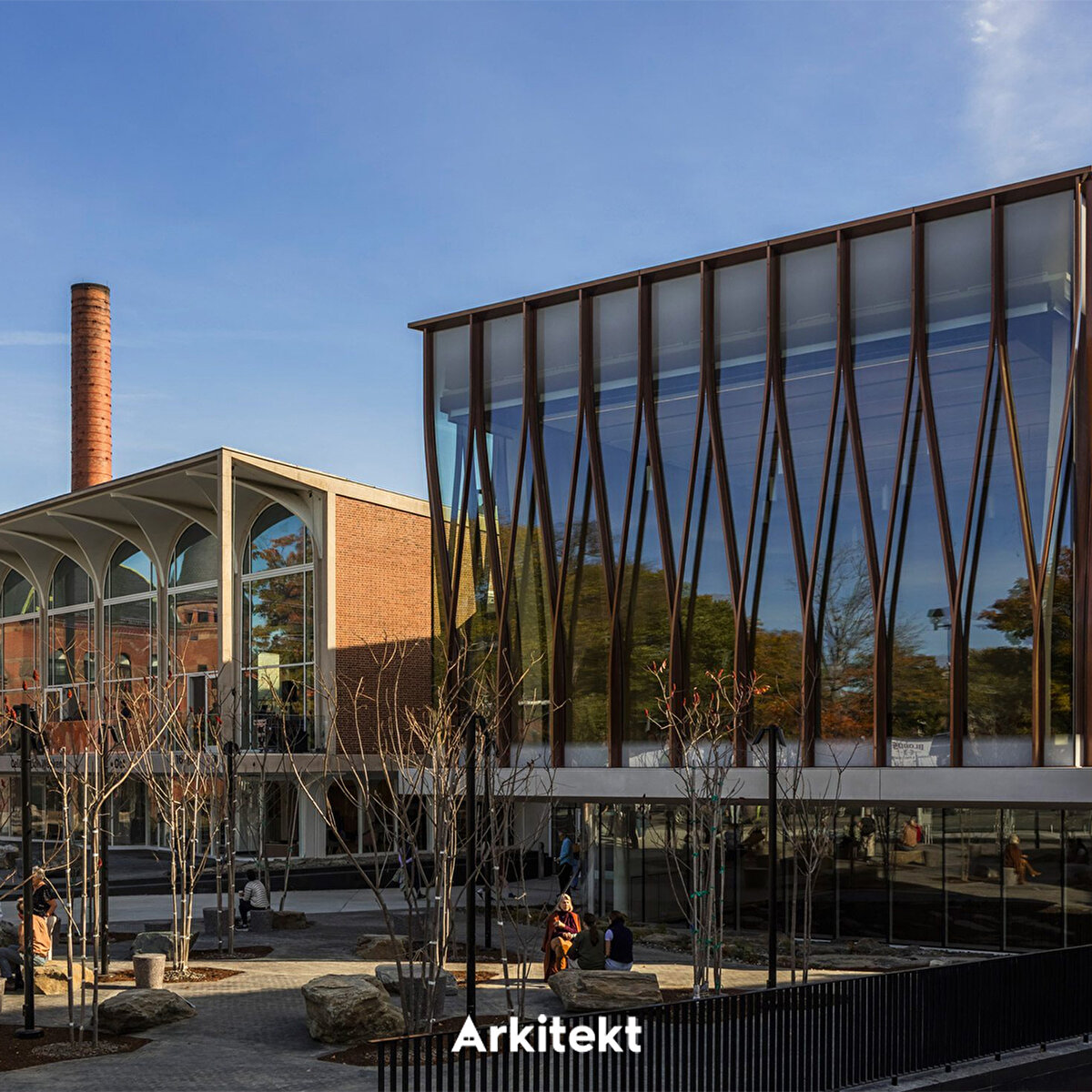 Snøhetta, New Hampshire'daki Dartmouth College kampüsünde yer alan Hopkins Sanat Merkezi'nin genişletme projesini tamamladı. 1960'larda Wallace K. Harrison tarafından tasarlanan yapıya eklenen Recital Hall ve Daryl Roth Studio Theatre, mevcut yapı ile kurdukları mekânsal diyalog aracılığıyla merkezin bütüncül kimliğini güçlendiriyor. Bronz tonlu çelik paneller ve prekast beton yüzeyler, malzeme dili üzerinden hem kontrast hem de kampüsün tarihsel bağlamına referans oluşturuyor.