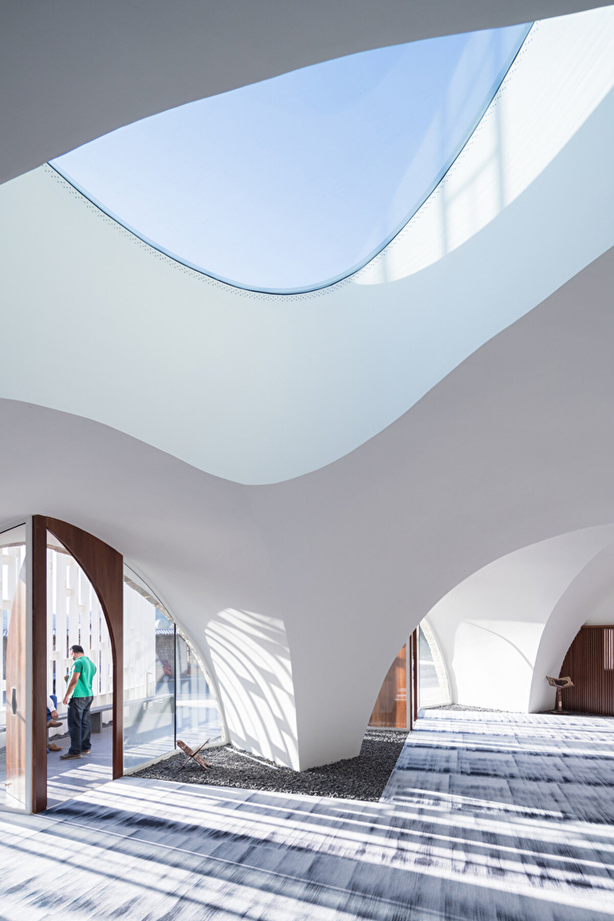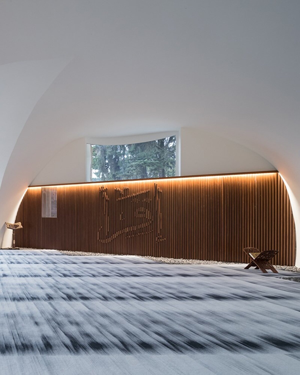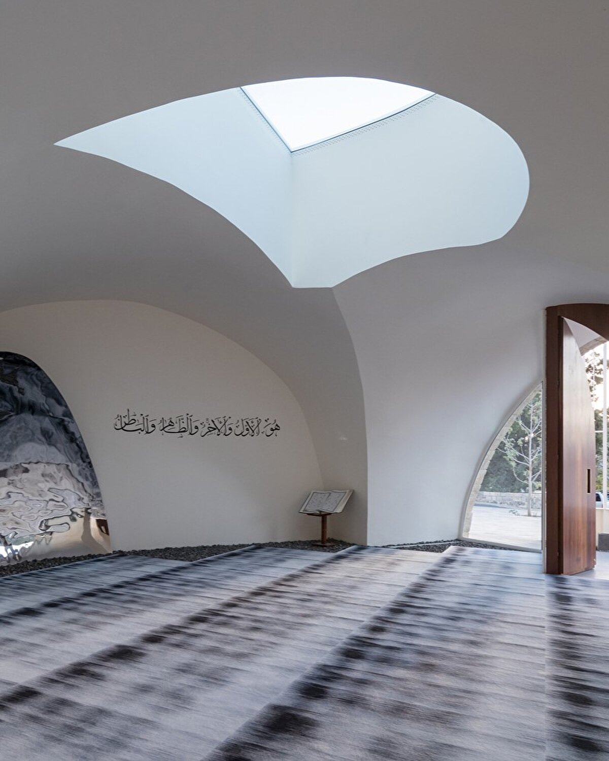 Mevcut yapının iç kısmında, özel olarak Suriye Halep'ten getirilen kireç karışımı kullanılarak tonozların içbükey yüzeyleri "beyazlatılarak" yeniden düzenleniyor ve tonozlu alanı kesen minimalist bir müdahale yapılıyor. Bu tasarım, Kıble duvarının Mekke'ye doğru olan yönünü belirlemeyi ve Mihrap boşluğuna doğal ışık getirmeyi amaçlıyor.