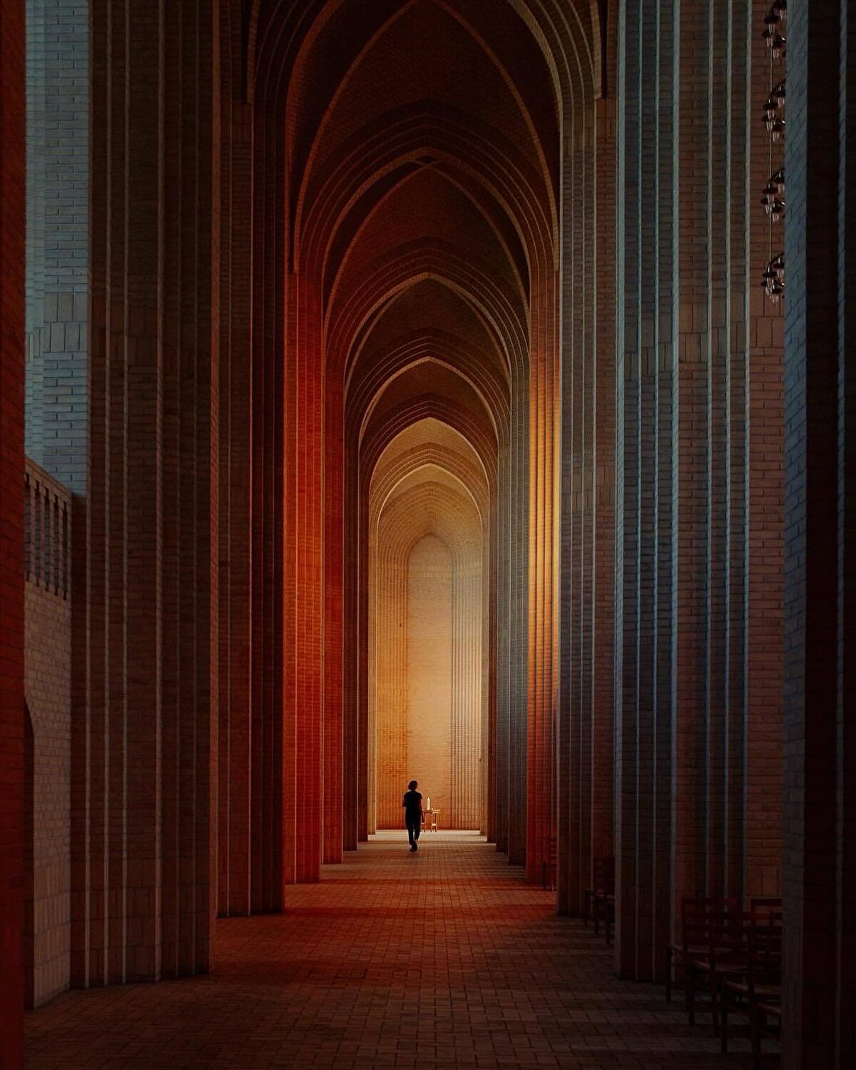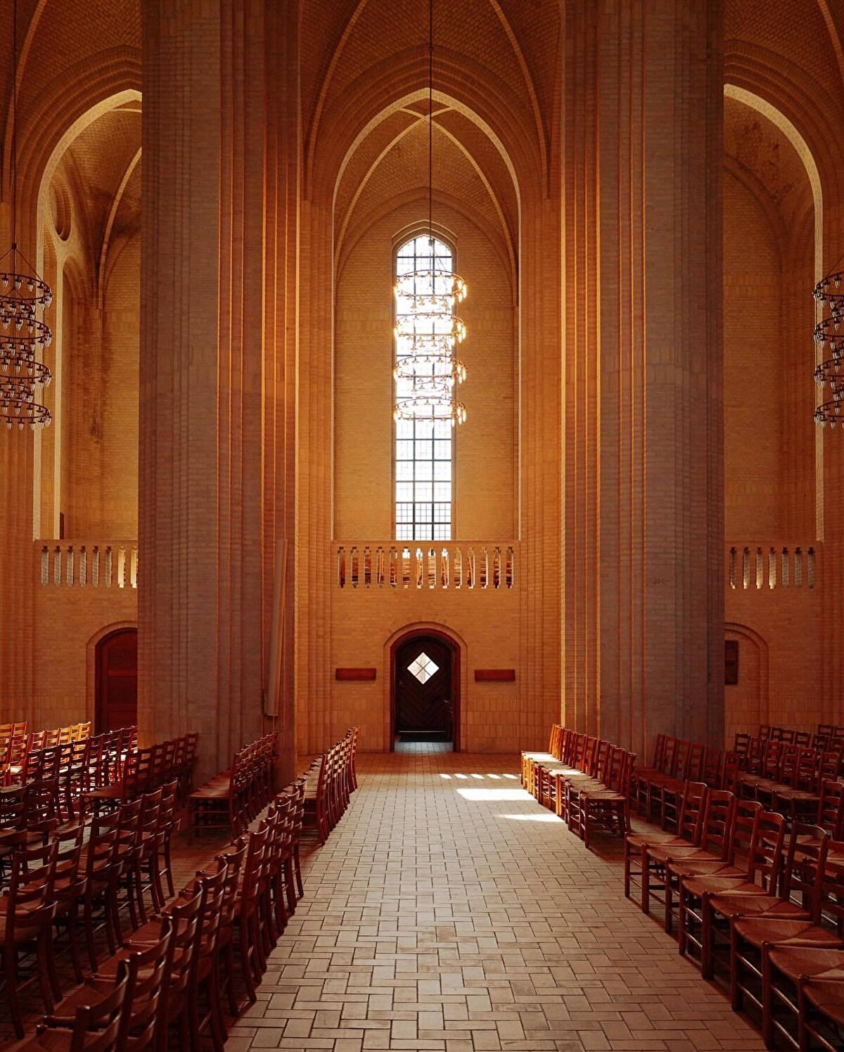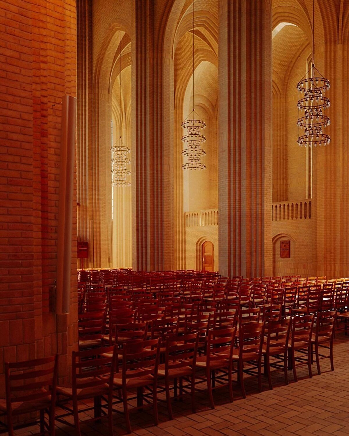 Grundtvig Kilisesi, aynı zamanda iç mekanının genişliği, yüksek tavanları ve özgün tasarımıyla da öne çıkıyor. Gotik mimariden ilham alan ve boyut olarak Kopenhag Katedrali ile benzerlik gösteren iç mekanda, Danimarka yapı malzemesi olan yaklaşık beş milyon sarı tuğla kullanılıyor.