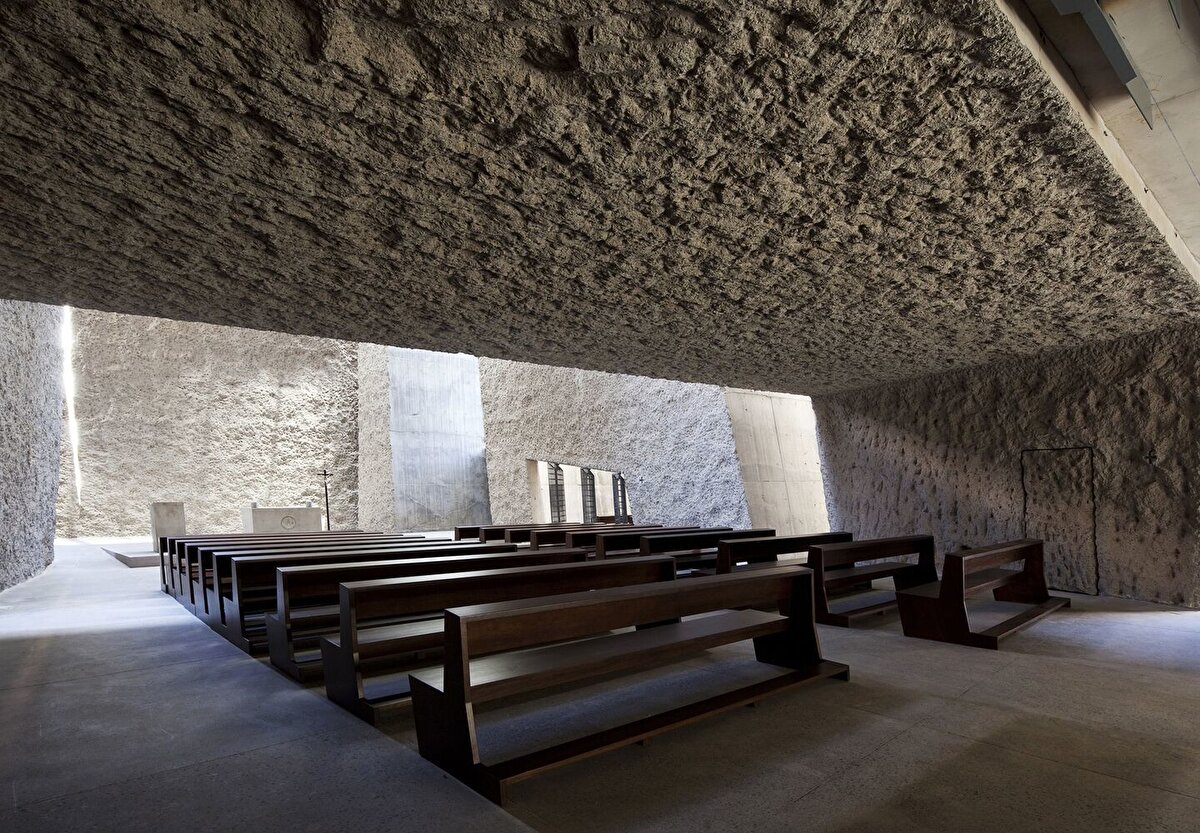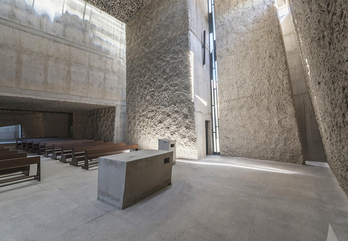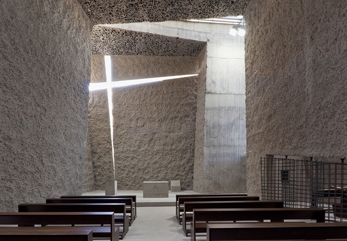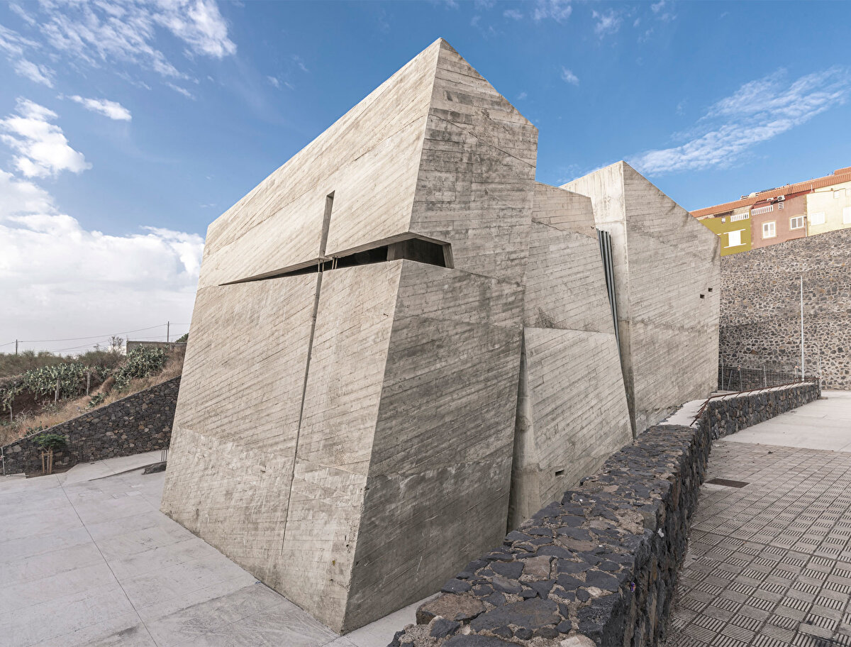 Fernando Menis, volkanik adanın jeolojisinden ilham alarak betonun ve kayaların öne çıktığı bir proje geliştiriyor. Tasarım; zemine gömülü, büyük kayaları andıran dört hacimden meydana geliyor. Hacimler arası yarıklar iç mekanın günün her saati gün ışığı almasını sağlıyor. Brüt betonun kaba ve pürüzlü dokusu, kilisenin içinde bulunduğu geleneksel konut bağlamıyla net bir kontrast oluşturuyor.