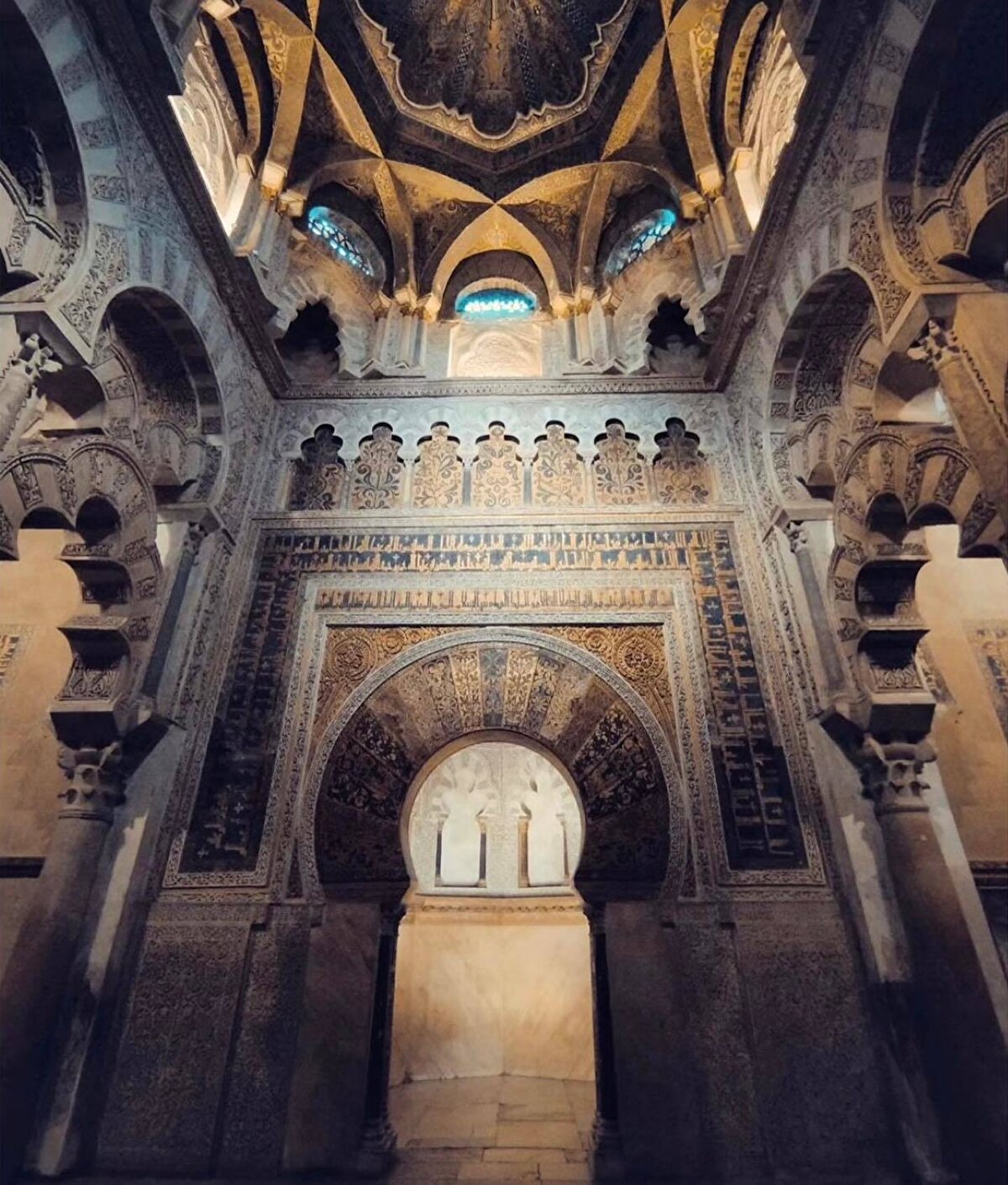 İspanya'nın tarihi merkezinde konumlanan bu yapı, İslam sanatının en etkileyici örneklerinden biri oluyor. 785 yılında Müslüman emir Abdurrahman I, San Vicente'deki eski Vizigot kilisesinin yerine camiyi inşa ettiriyor. Camii, sonraki yüzyıllarda çeşitli eklemelerle zenginleştiriliyor. Abdurrahman III, yeni bir minare inşa ettirirken, 961 yılında Al-Hakam II, zemin planını genişletiyor ve mihrap bölümünü yeniliyor. Son olarak, 987 yılında Al-Mansur tarafından gerçekleştirilen yenileme ile cami, iç mekanında çift kemerli ve at nalı kemerli sütunlarla dolu bir labirent görünümüne kavuşuyor.