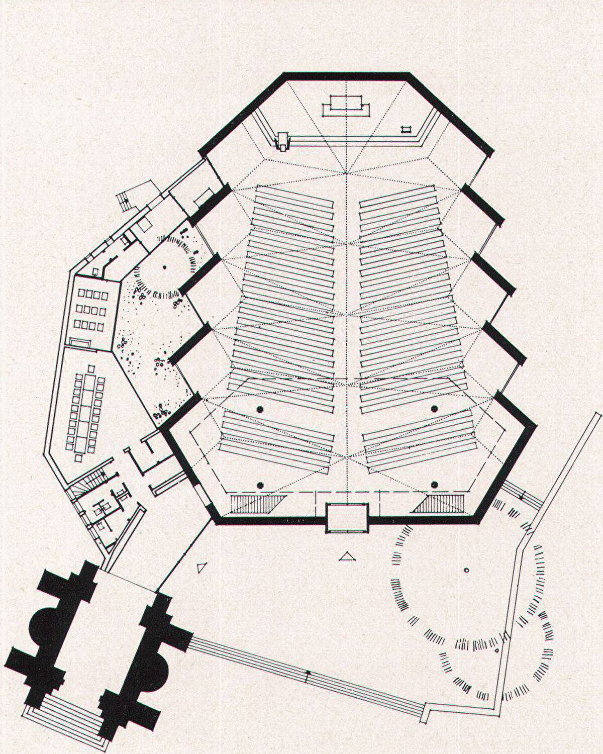 Yeni yapı oldukça basit ve sade şekilde tasarlanıyor. Yapının yan duvarları ve çatısı katlanmış geometrik yüzeylerden meydana geliyor. Betonarme çatı bakırla kaplanıyor, duvarlar ise tuğla, beton ve cam arasında değişiyor.