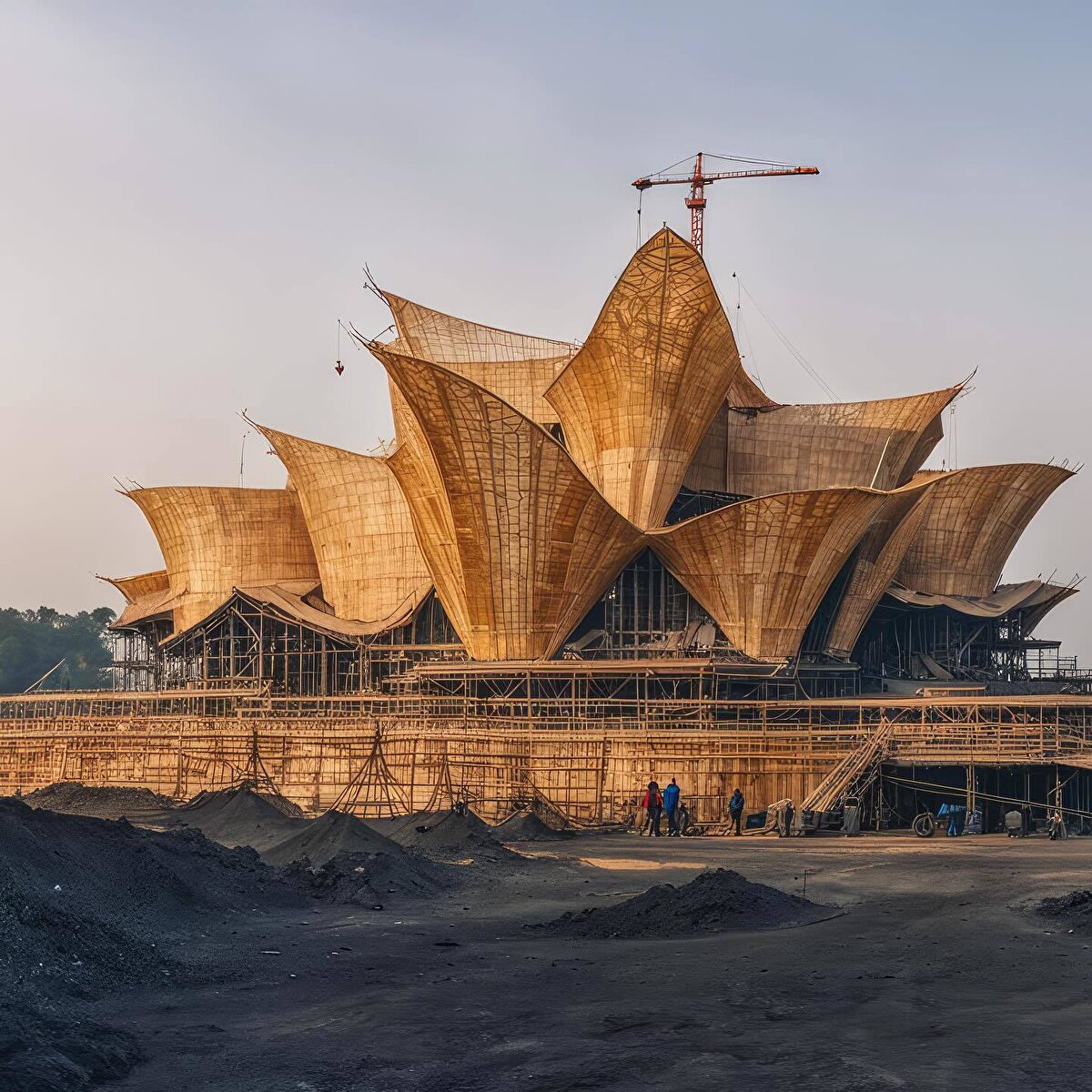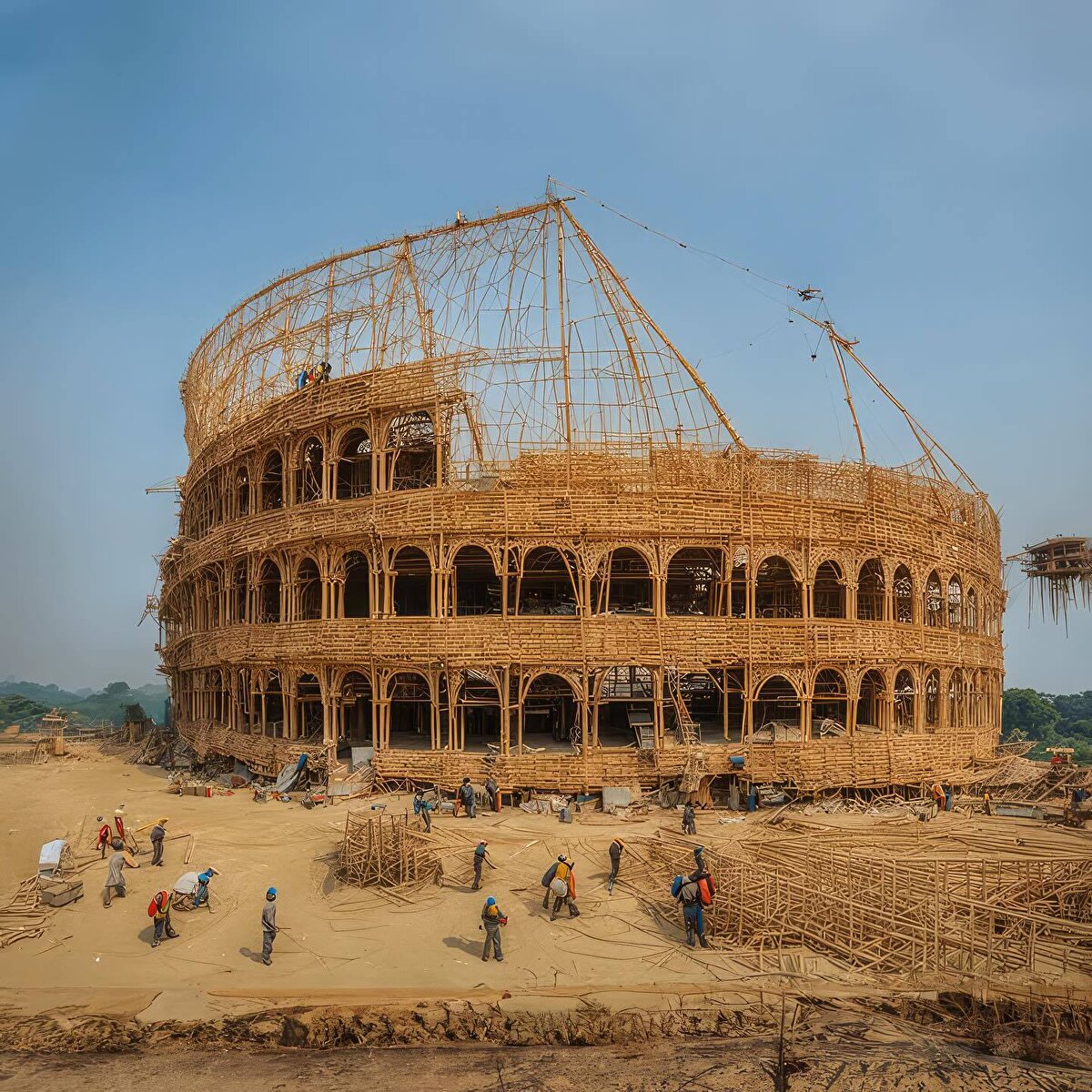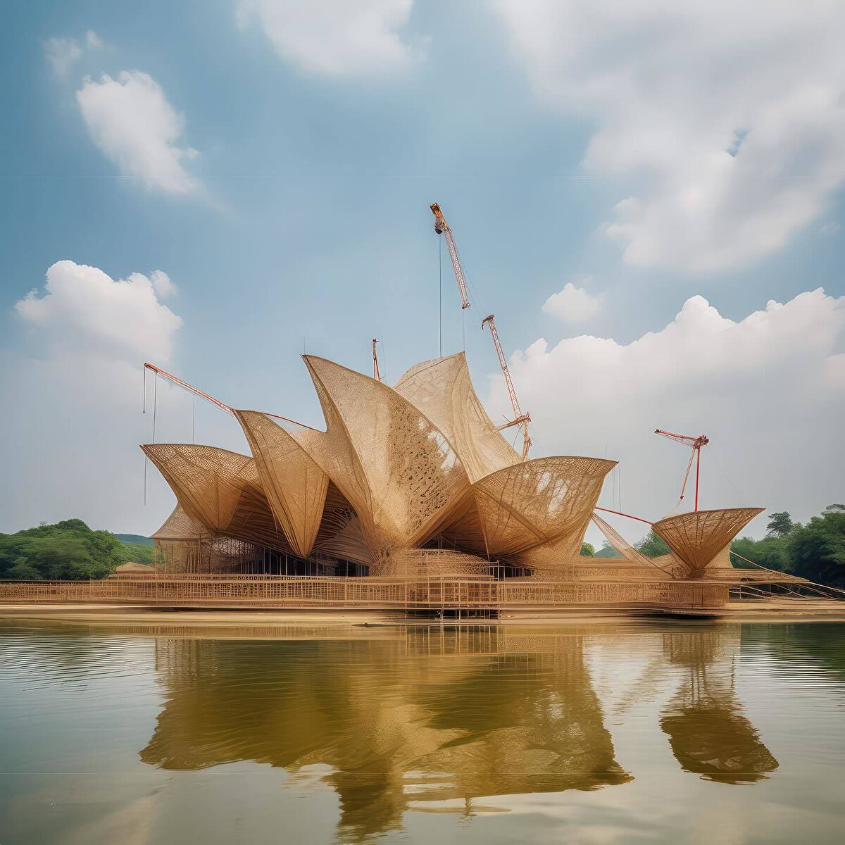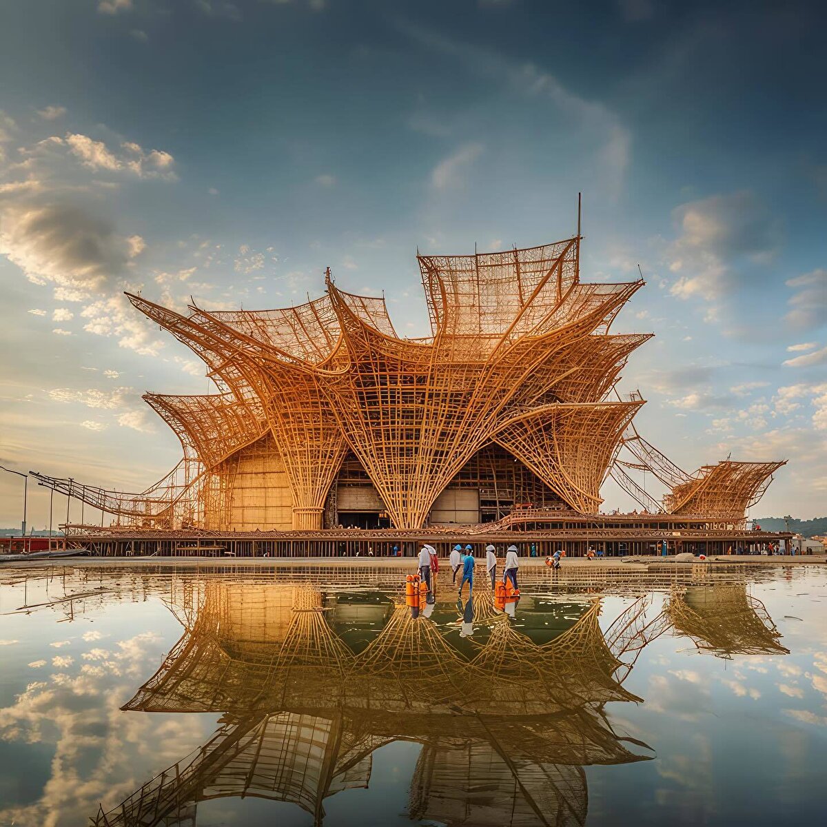 Bambu, çevre dostu ve sürdürülebilir bir malzeme olmasıyla öne çıkıyor. Mimari tasarımcı Carlos Bañon Blazquez, efsanevi yapıların doğal bir dokunuşla nasıl görüneceğini yapay zeka aracıyla yeniden tasarlıyor.