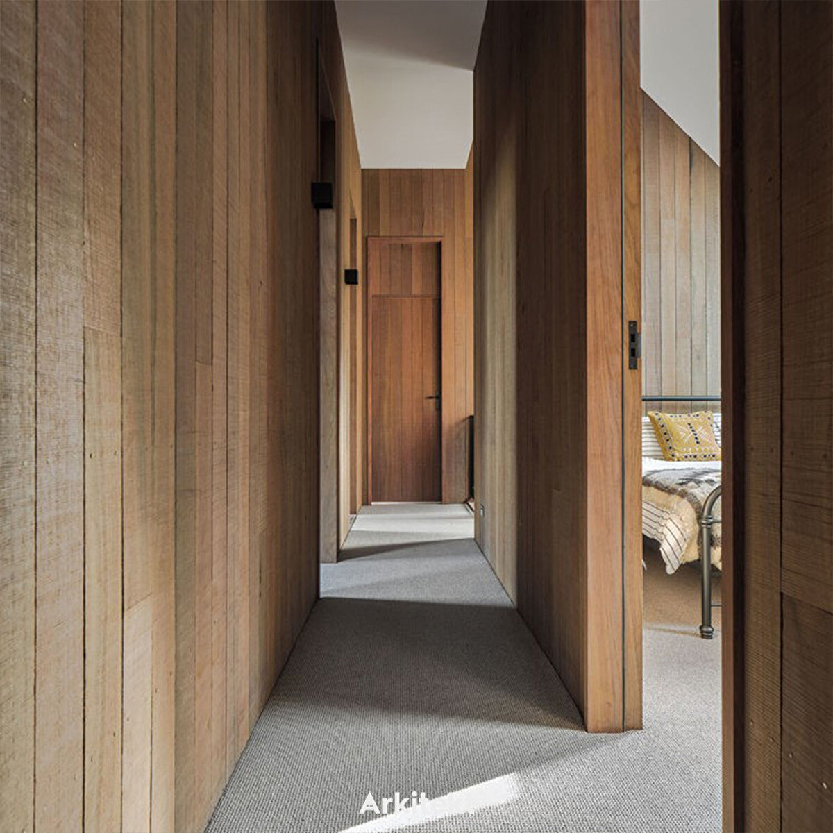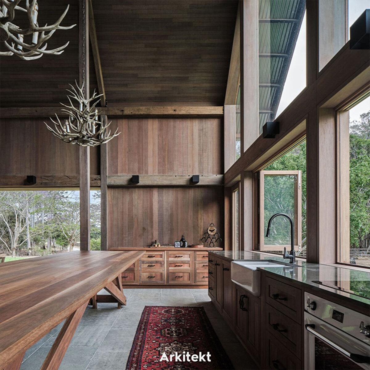 Uhlmann tarafından "kırsal kulübe mimarisi" olarak tanımlanan ev, Avustralya ağacından inşa ediliyor.