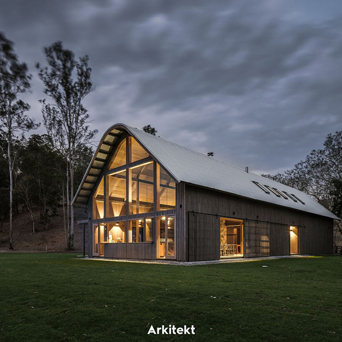 Paul Uhlmann Architects tarafından tasarlanan ve üçgen forma sahip olan yapı, Avustralya'nın Pullenvale kentinde konumlanıyor. Ahırlardan ilham alarak tasarlanan The Barn House, Avustralya'nın taşradaki ahşap ve çinko kaplamalı kulübelerine atıfta bulunuyor.