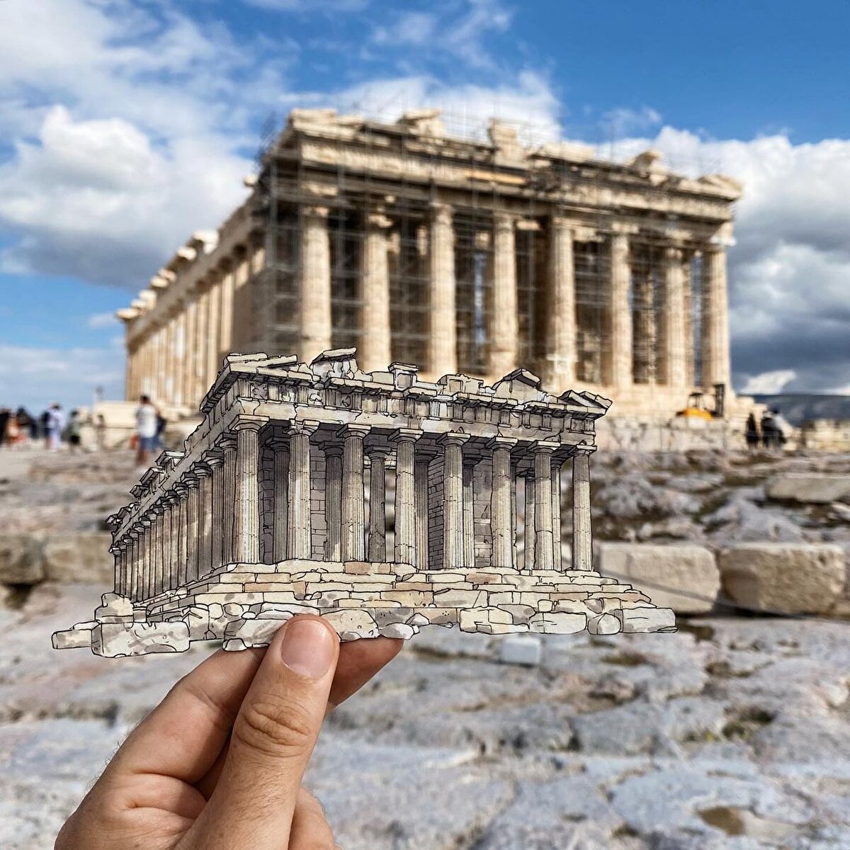 Sanatçı, 2015'ten beri gezdiği şehirlerin küçük çizimlerini oluşturarak Avrupa seyahatlerini belgeliyor.