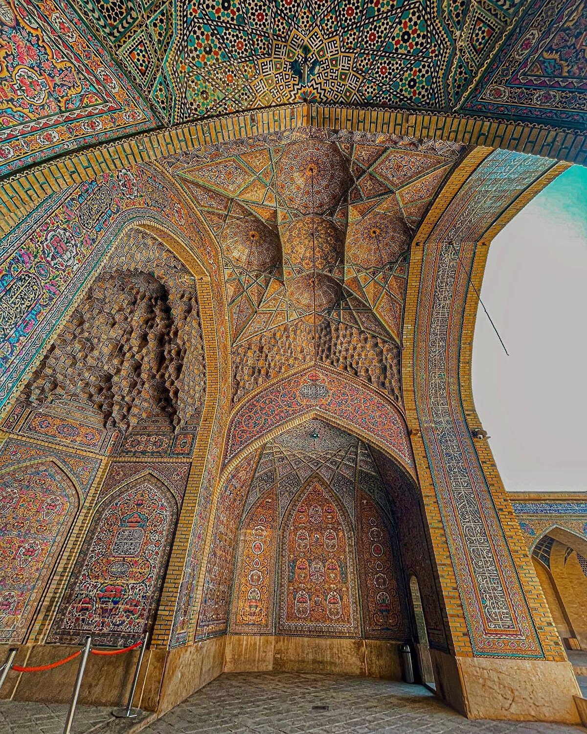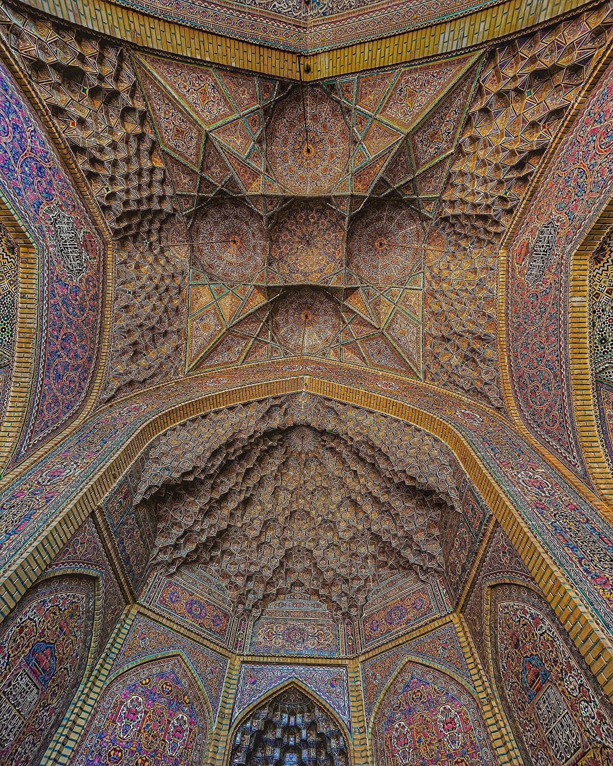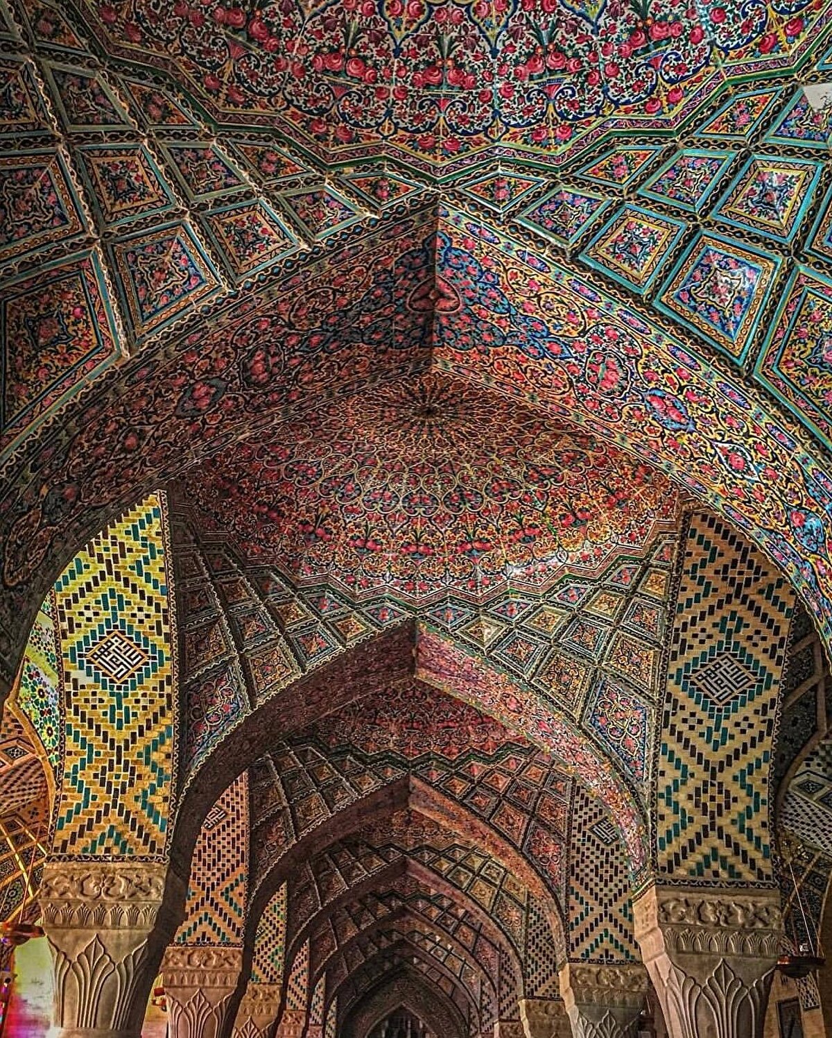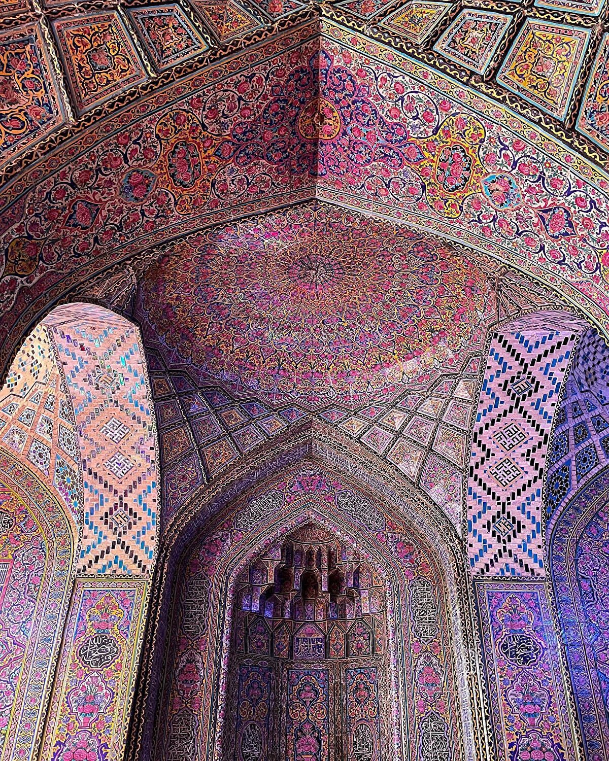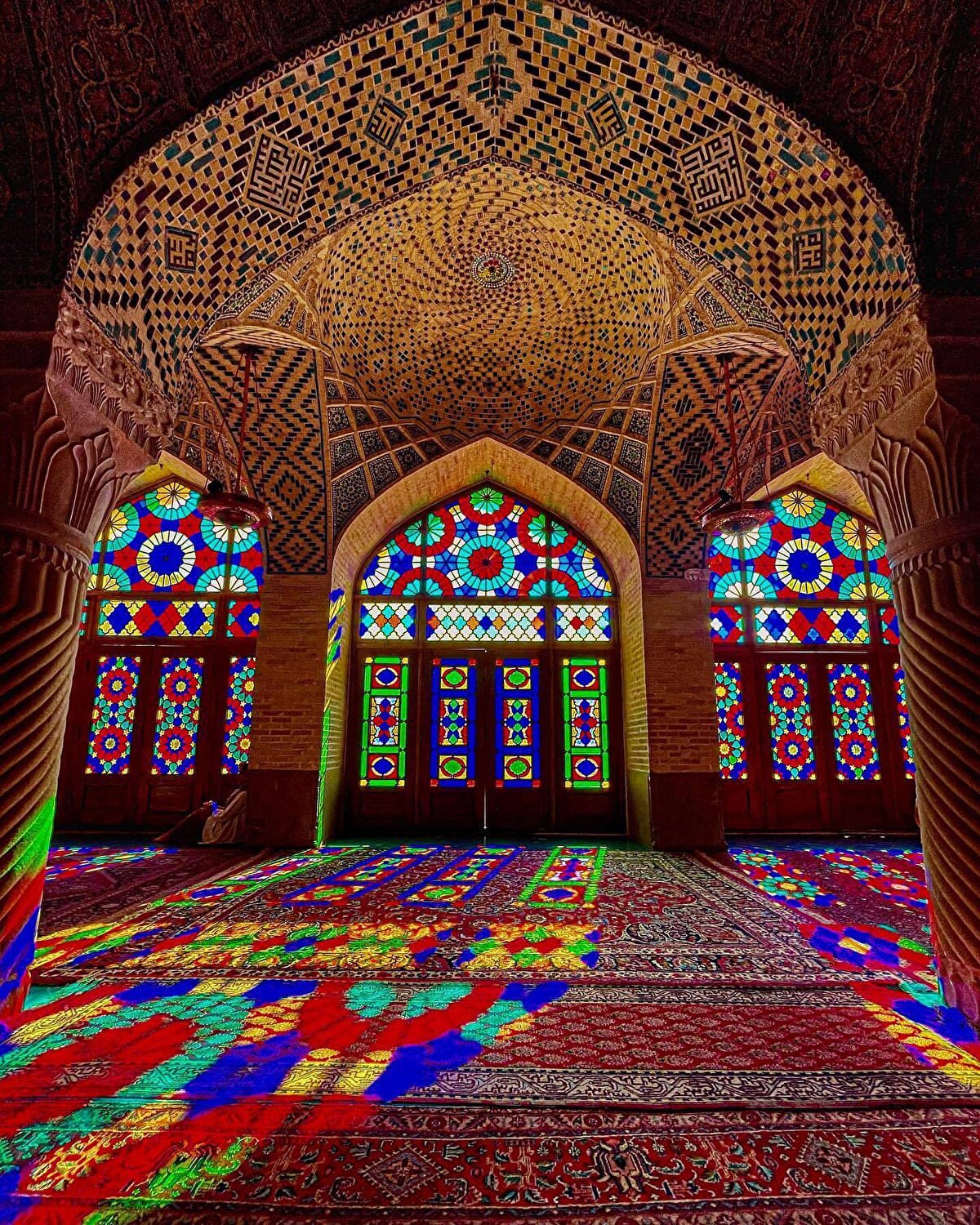 İran'ın Şiraz şehrinde yer alan ve Pembe Camii olarak da bilinen Nasır el-Mülk Camii, etkileyici mimarisi ve karmaşık vitray pencereleri ile öne çıkıyor. Bu pencereler, özellikle sabah güneşi vurduğunda cami içerisinde renk cümbüşü oluşturuyor. 1888'de tamamlanan caminin inşasında kullanılan pembe ağırlıklı çiniler, dışarıdan bakıldığında camiyi pembe gibi gösterse de, içeride her renkten izler bulunuyor. Cami, vitray pencereleri, çift renkli fayansları, çinileri, motiflerle süslenmiş duvar ve tavanları, mozaik ve ince işçiliğiyle estetik ve maneviyatı bir araya getiriyor.