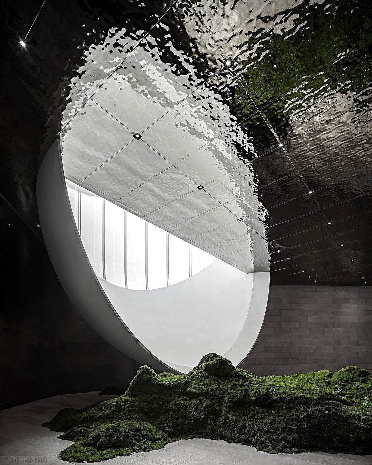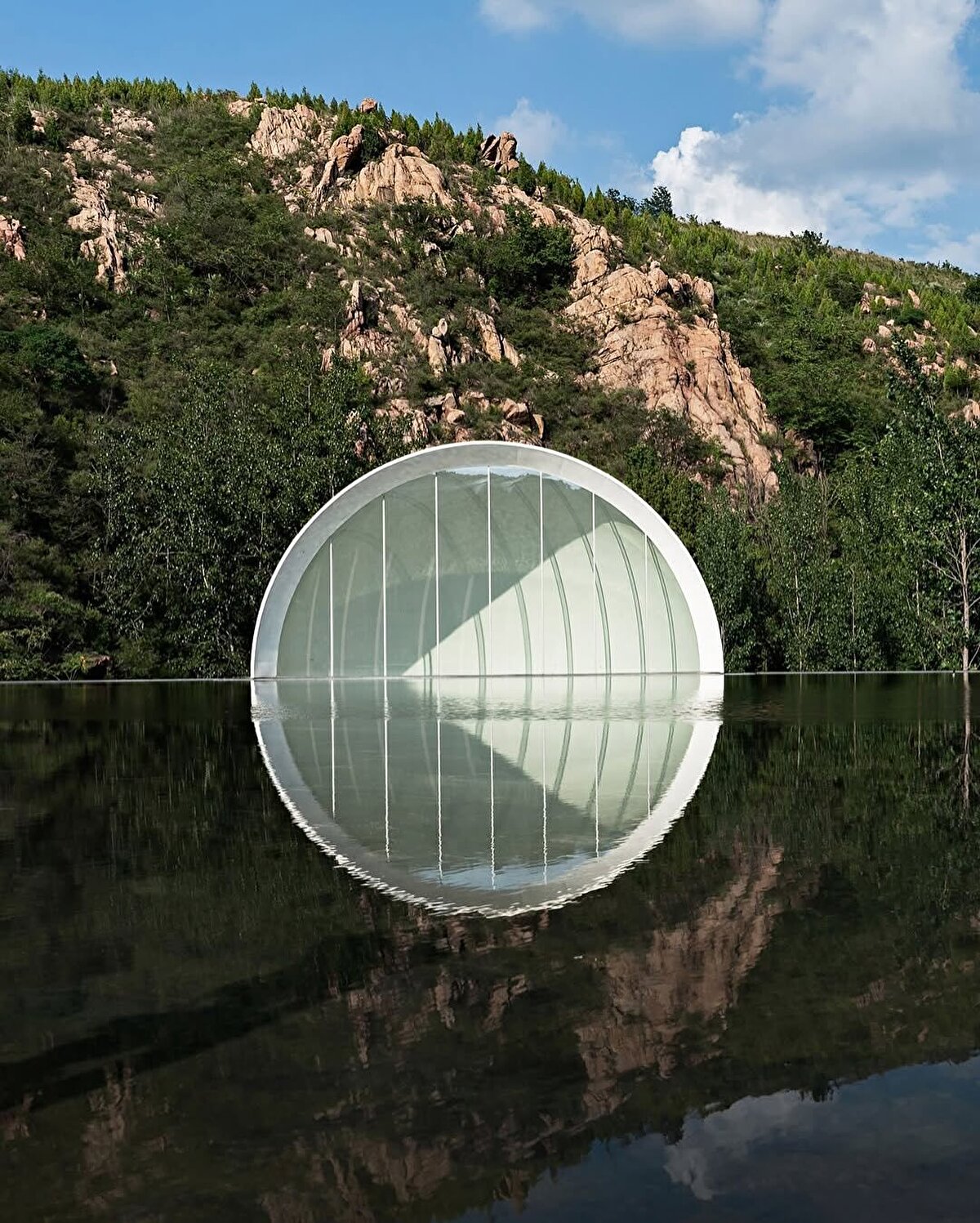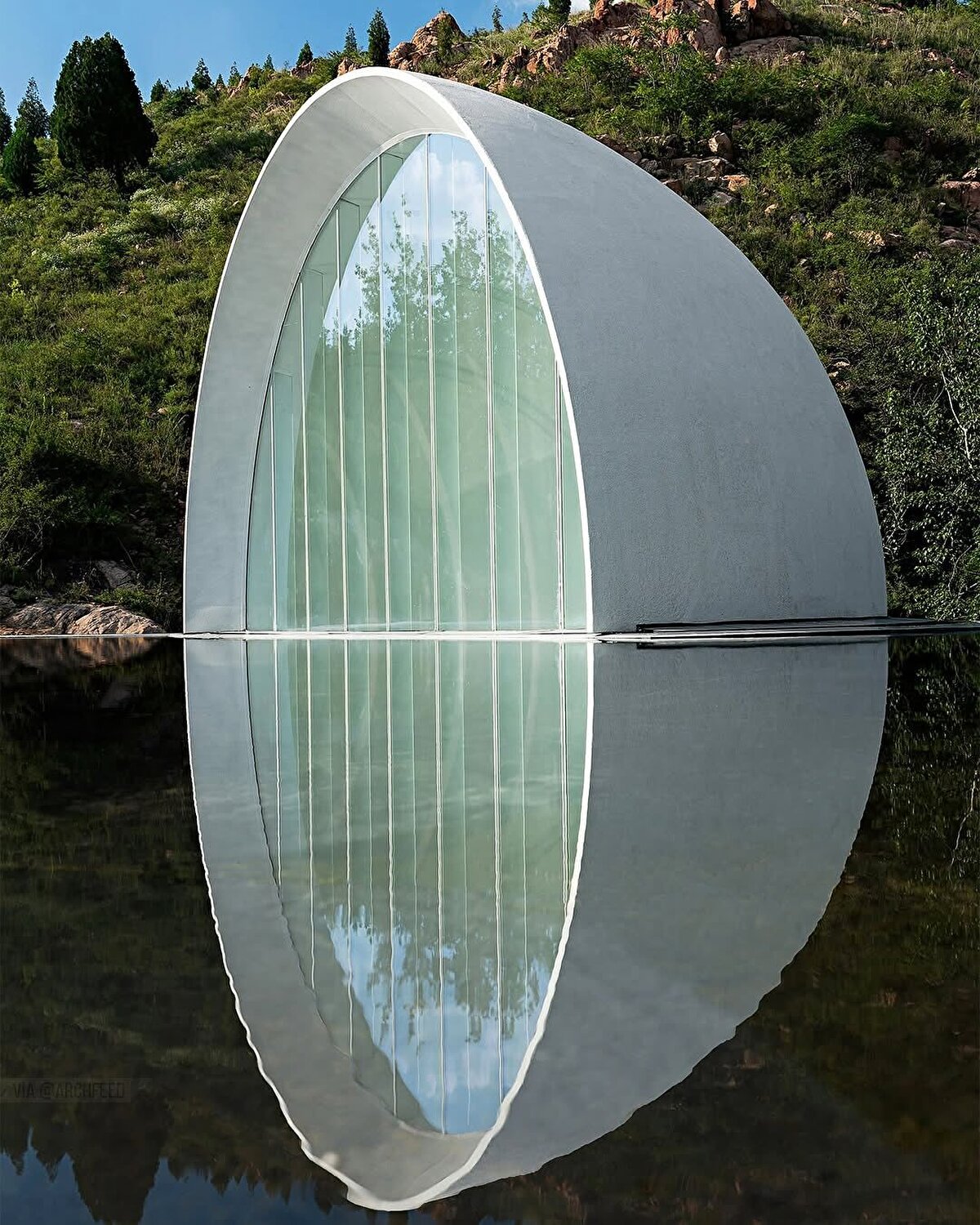 Hometown Moon, Çin'in Shandong eyaletinde, Tai'an şehrine bağlı Daolang köyünde Syn Architects tarafından tasarlanıyor. 2021 yılında tamamlanan proje, özellikle yerle kurduğu fiziksel ve sembolik ilişki üzerinden şekilleniyor. Toplam 1.469 metrekarelik mimari alana sahip yapı, temel olarak bir tören alanı işlevi görüyor. Mimari yaklaşım, geometrik sadeliği ve suyla kurulan ilişkiyi merkeze alarak yarım küre formunun suya yansımasıyla “tam ay" imgesini oluşturmayı hedefliyor. Bu görsel kompozisyon doğal çevreyle etkileşimi ve anlam dünyasını belirliyor.
