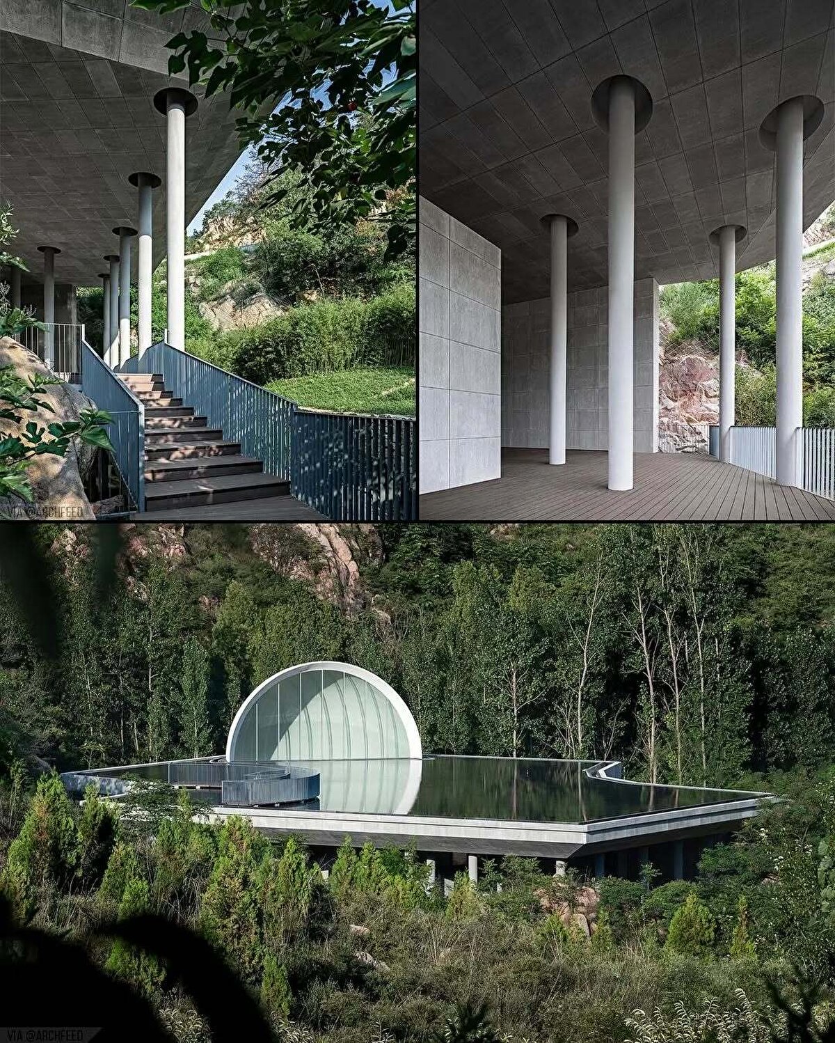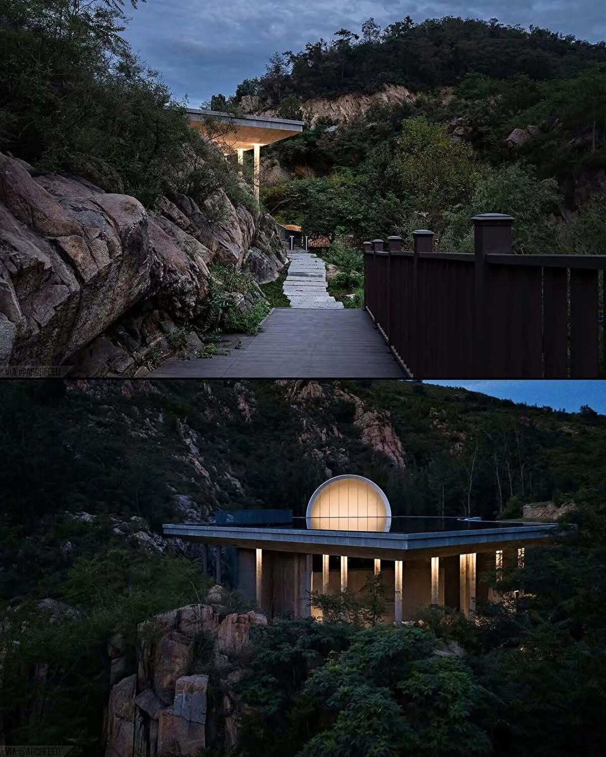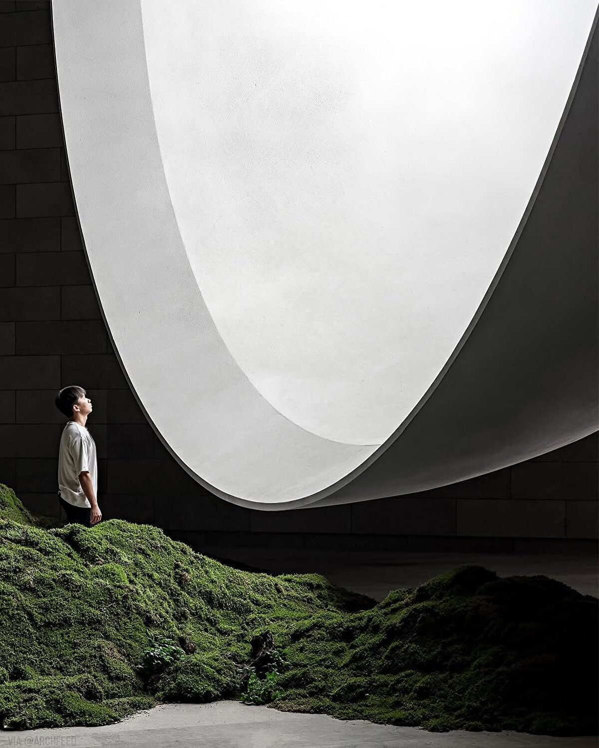 Hometown Moon, Çin'in Shandong eyaletinde, Tai'an şehrine bağlı Daolang köyünde Syn Architects tarafından tasarlanıyor. 2021 yılında tamamlanan proje, özellikle yerle kurduğu fiziksel ve sembolik ilişki üzerinden şekilleniyor. Toplam 1.469 metrekarelik mimari alana sahip yapı, temel olarak bir tören alanı işlevi görüyor. Mimari yaklaşım, geometrik sadeliği ve suyla kurulan ilişkiyi merkeze alarak yarım küre formunun suya yansımasıyla “tam ay" imgesini oluşturmayı hedefliyor. Bu görsel kompozisyon doğal çevreyle etkileşimi ve anlam dünyasını belirliyor.