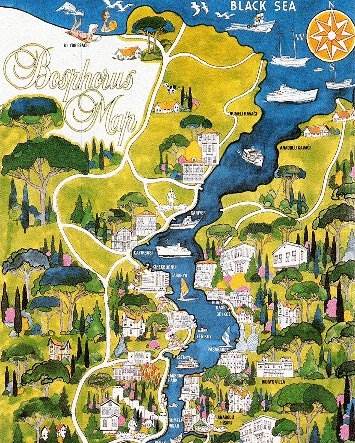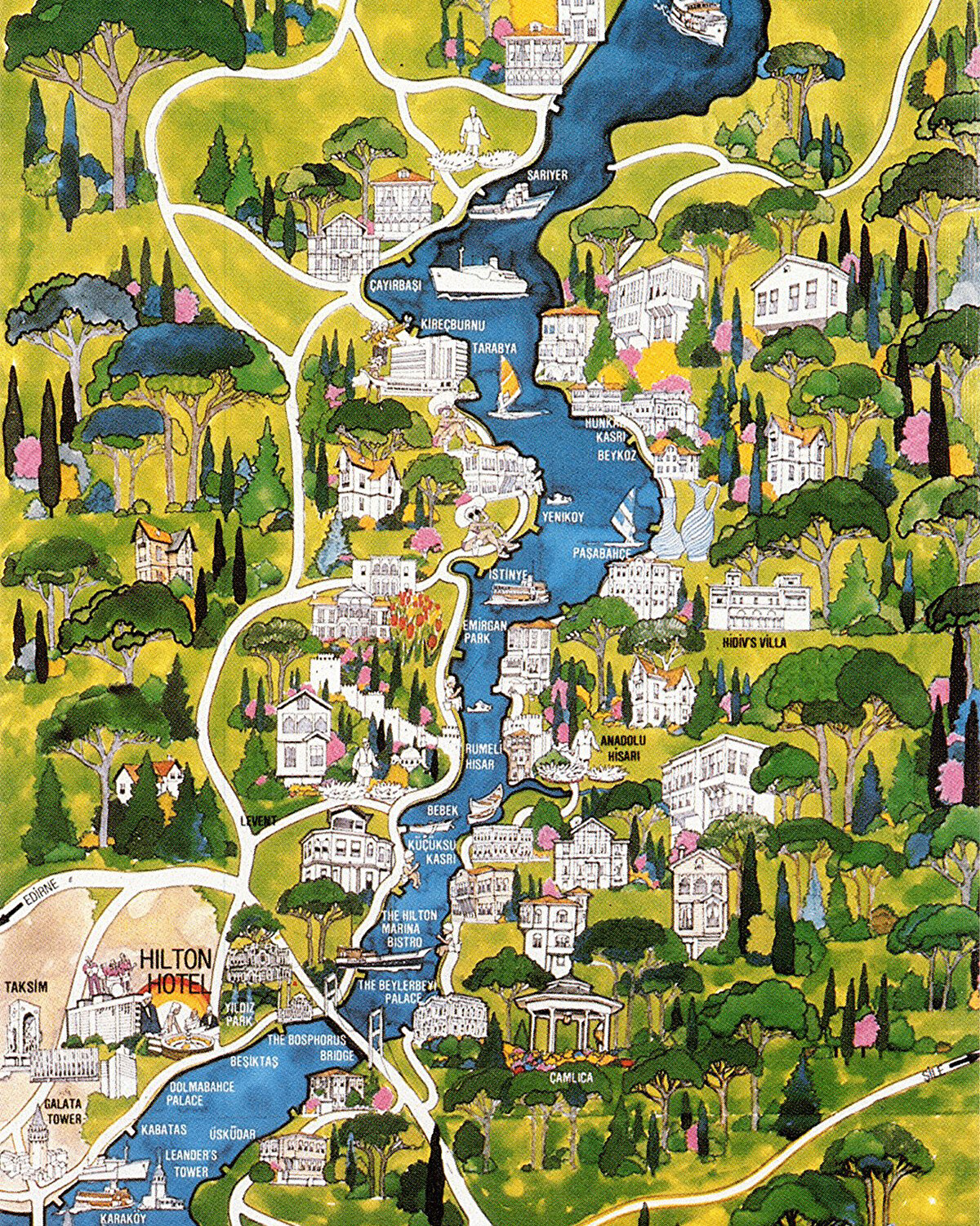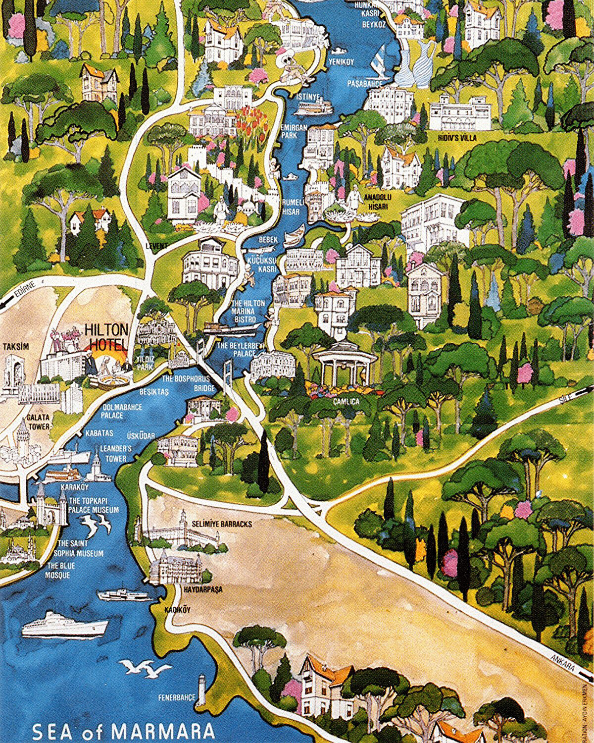 Aydın Erkmen'in 1974 yılında Hilton Magazin için hazırladığı İstanbul Boğazı haritası.