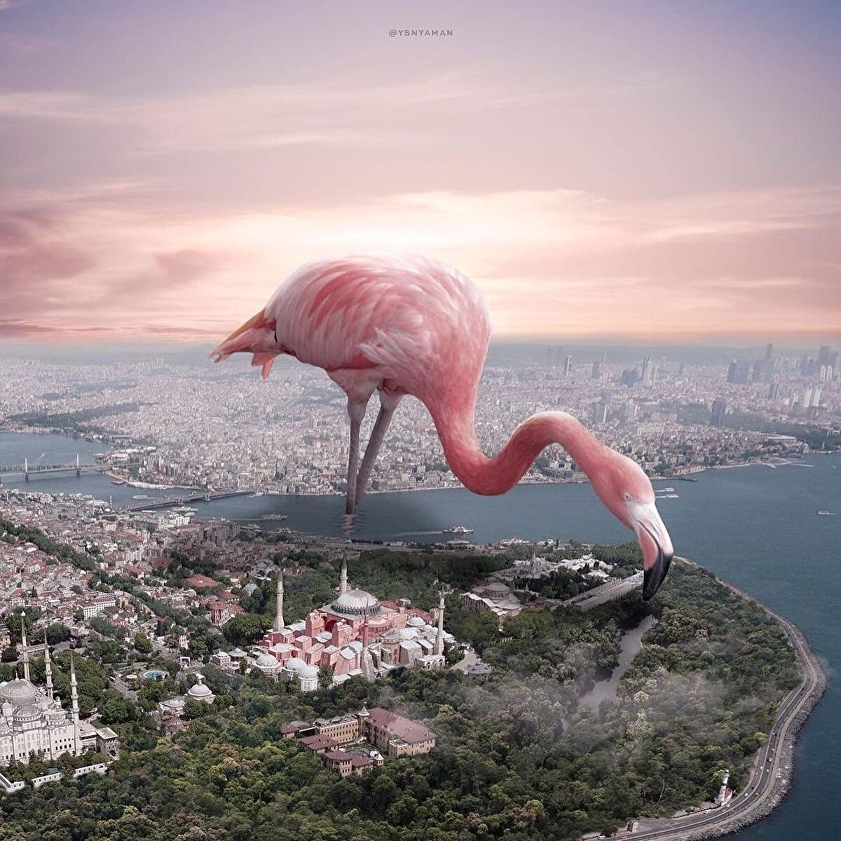 Grafik tasarımcı Yasin Yaman'ın İstanbul'u sürreal bir şekilde yeniden yorumladığı tasarımları ise bizleri fantastik bir yolculuğa çıkarıyor.