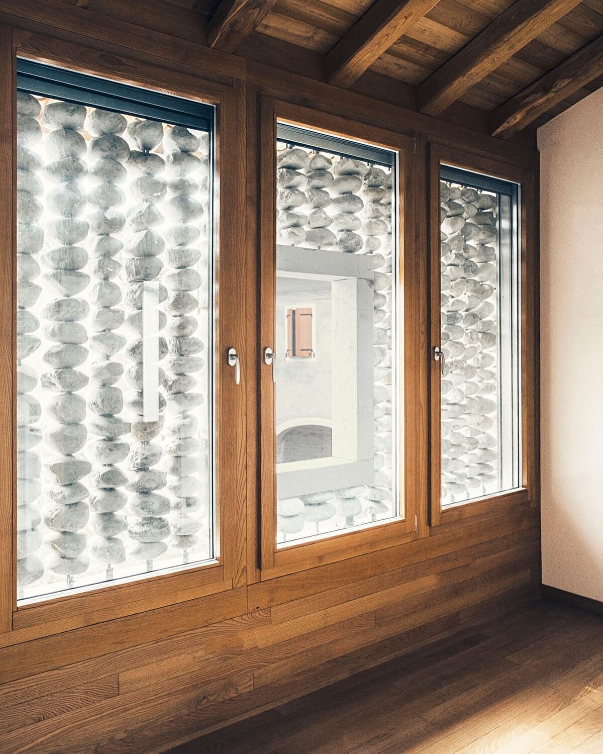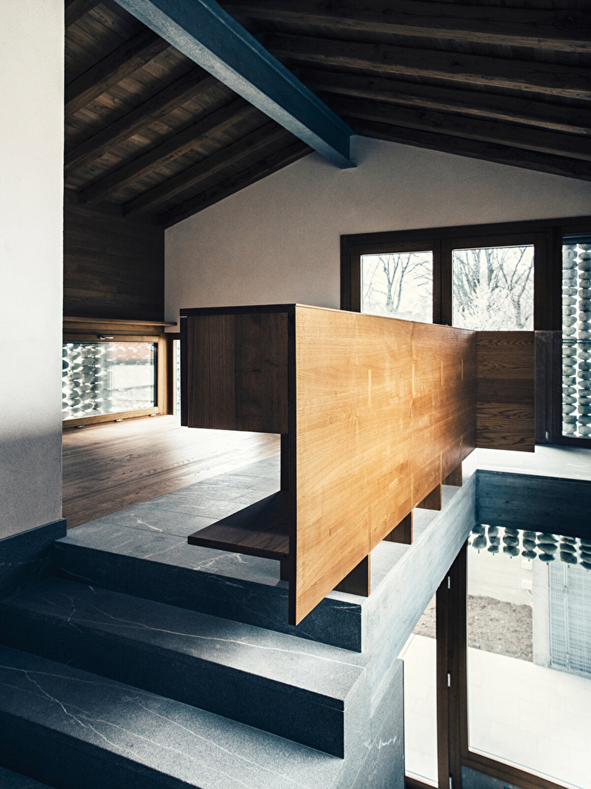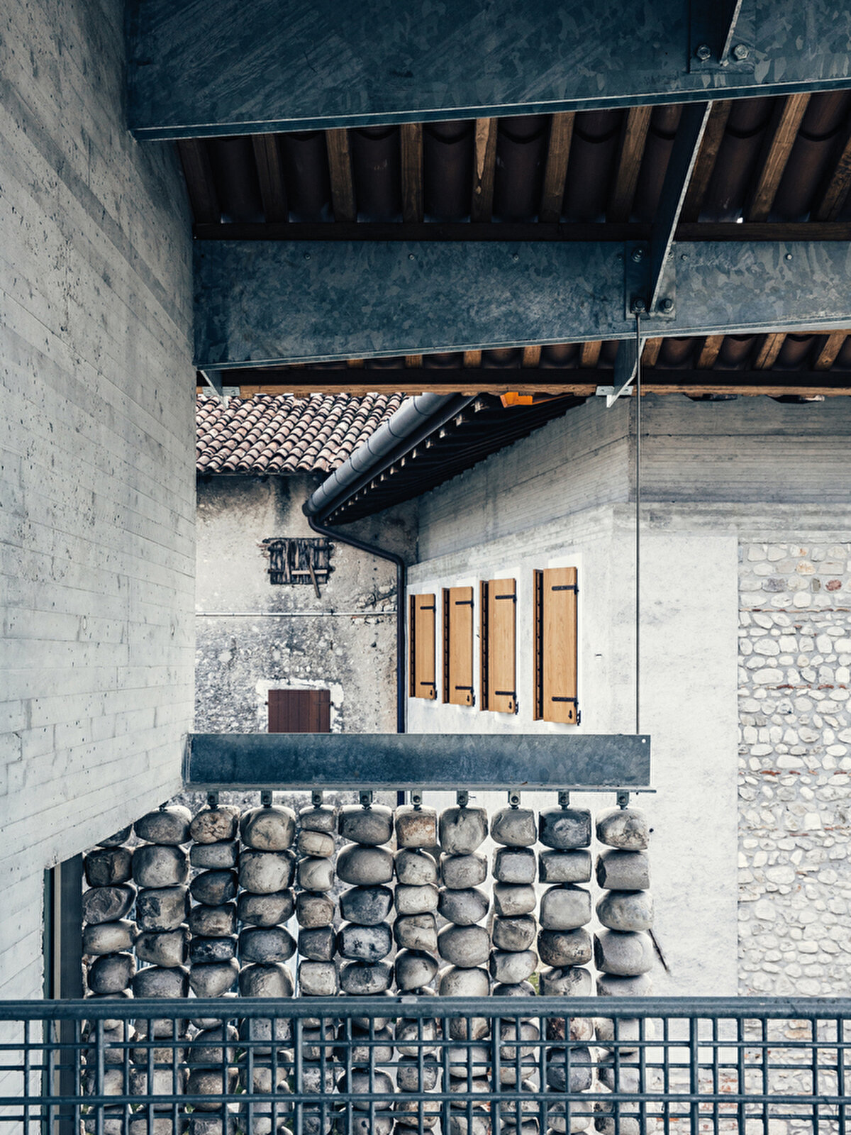 The main building offers a harmonious synthesis of traditional materials and modern architecture with a dynamic combination of reinforced concrete boxes at different levels. Traditional stone is reinterpreted as an aesthetic element within the reinforced concrete structure, while the building aims to meet contemporary standards in terms of both seismic safety and energy efficiency. The use of light enriches the spatial perception by emphasising the balance between the old and new texture.