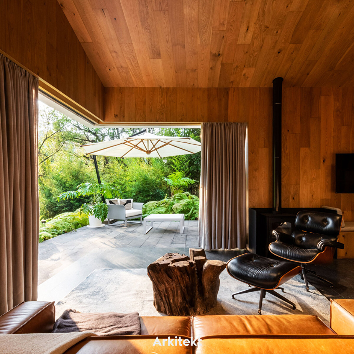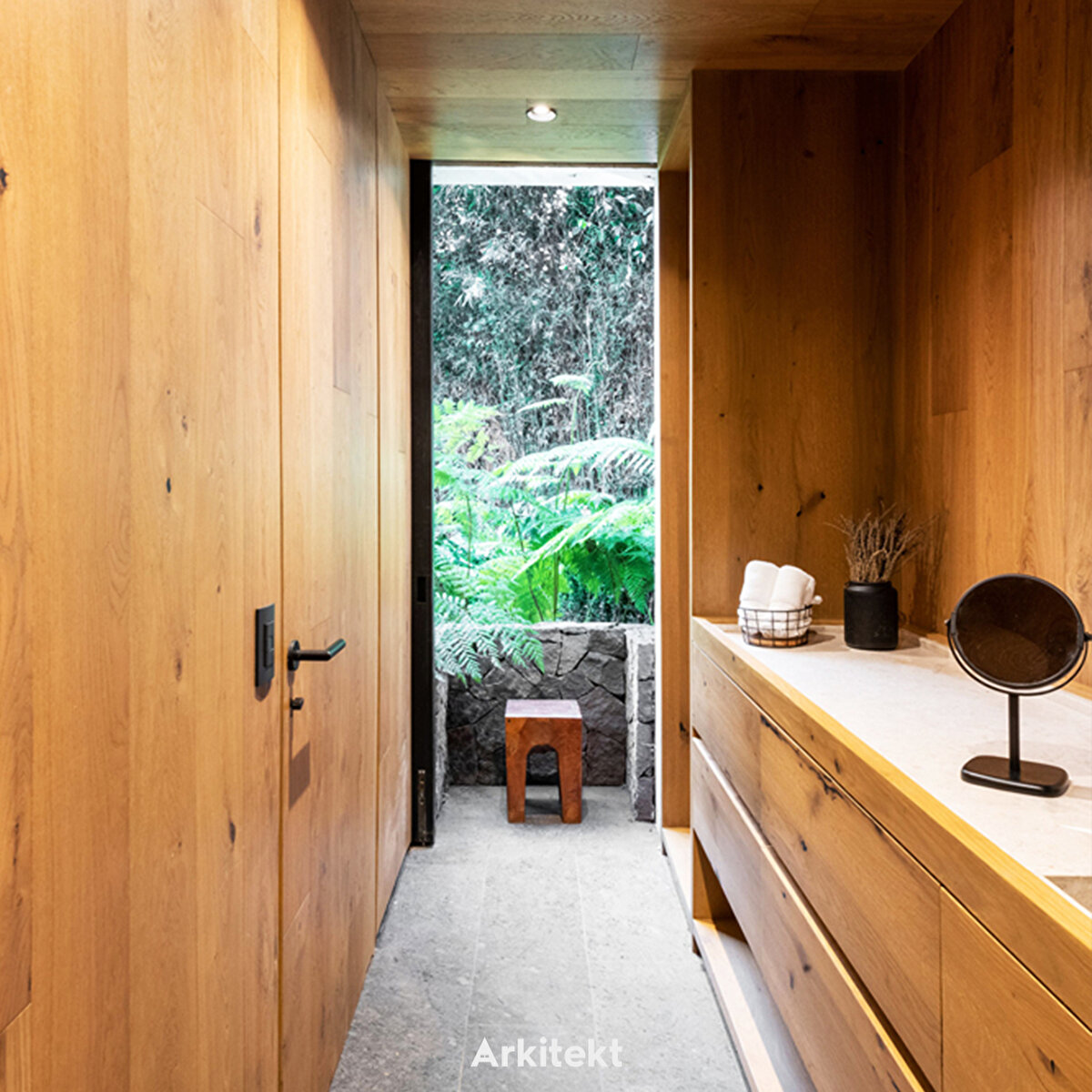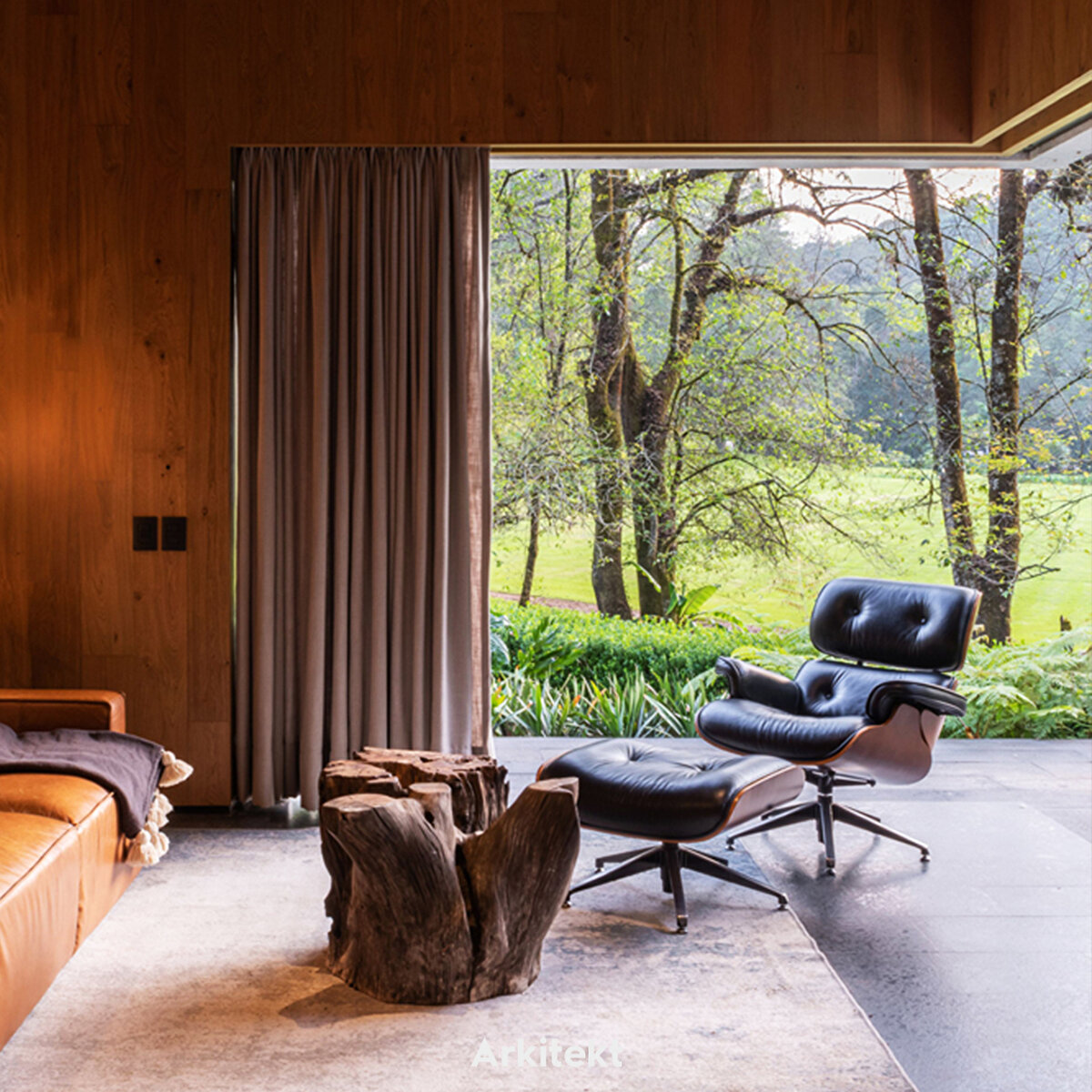 İç mekandaki ahşap kullanımıyla ön plana çıkan tasarım, doğal çevresiyle de güçlü bir ilişki kuruyor.