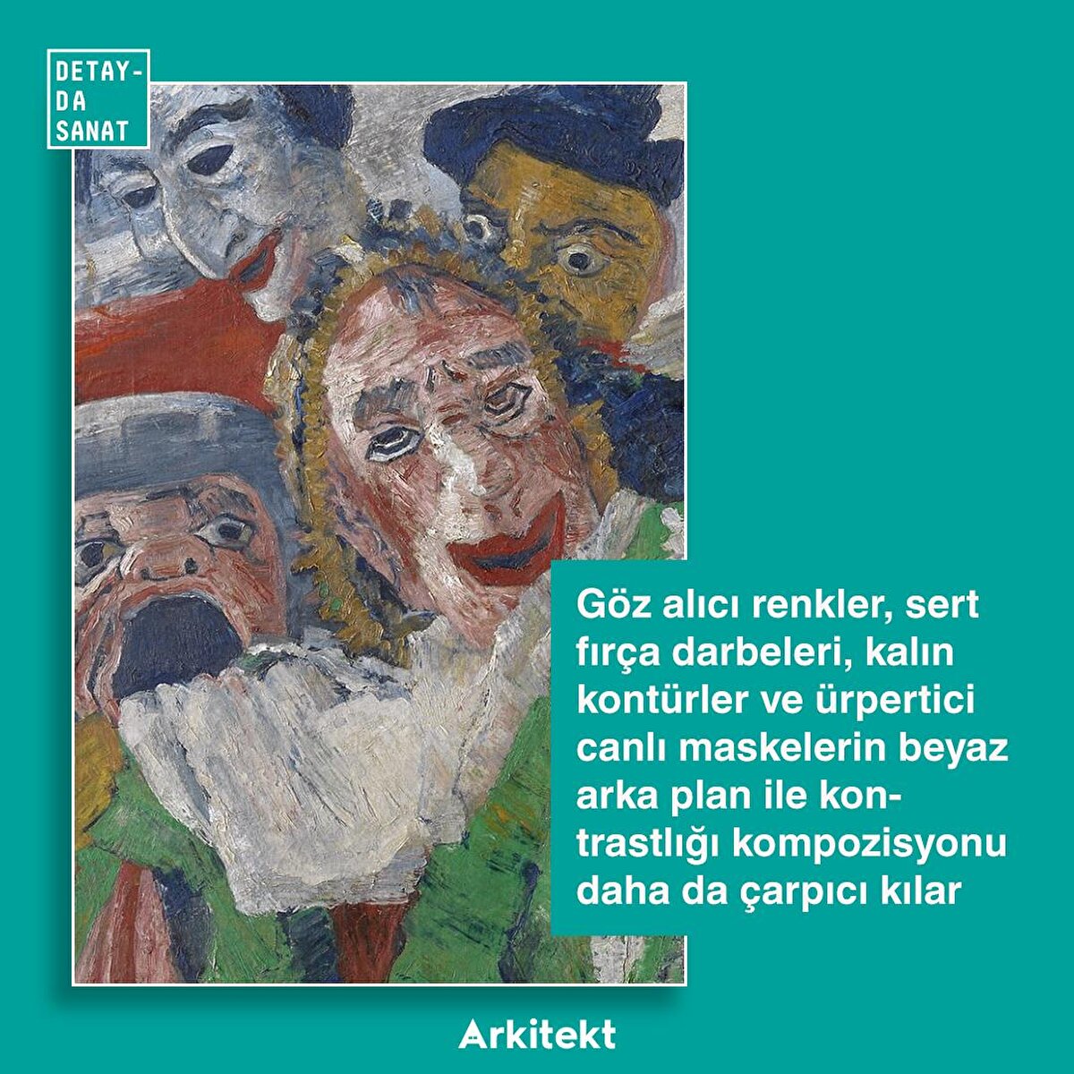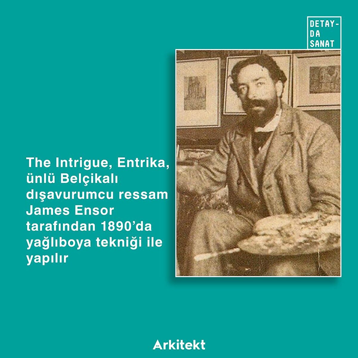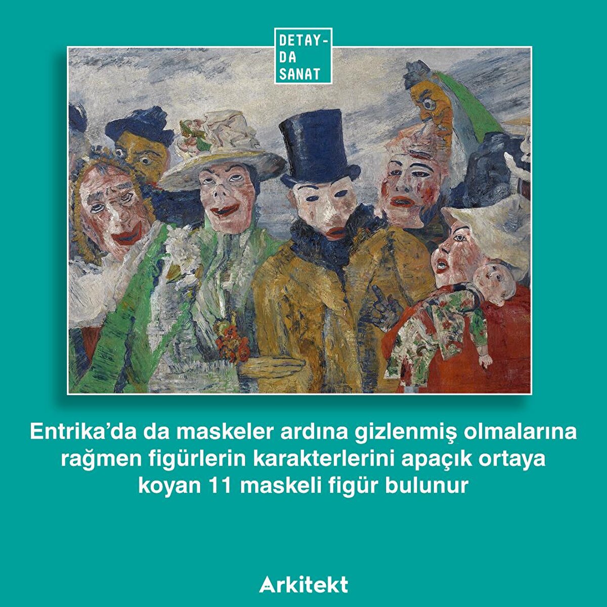 Sanat dünyasında maskeler denildiğinde akla ilk gelenlerdendir James Ensor. Toplumun ikiyüzlülüğüne, kendinden olmayanı ötekileştirmeye yatkın tarafına, maskenin aslında maske olmaktan çıkıp gerçek yüze dönüştüğüne dair toplum eleştirilerini dert edinir sanatına. İşte bu izde giden en önemli grotesk eserlerinden Entrika, bu hafta Detayda Sanat'ta!