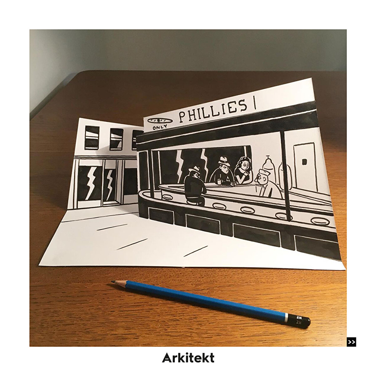 Kağıdı katlayarak, yırtarak, buruşturarak veya başka bir şekilde değiştirerek çizimlerine 3. boyut kazandıran sanatçının çalışmalarına gelin birlikte bakalım.