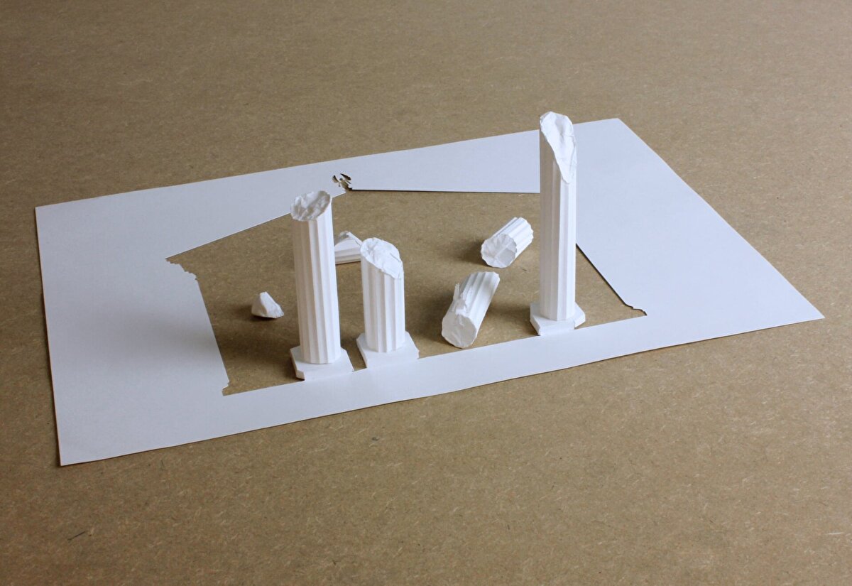 Sanatçı Peter Callesen, mimari kalıntılardan ilhamla kağıttan minyatür heykeller üretiyor.