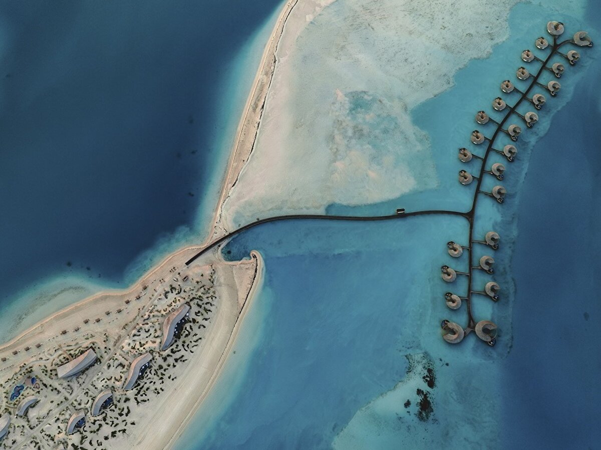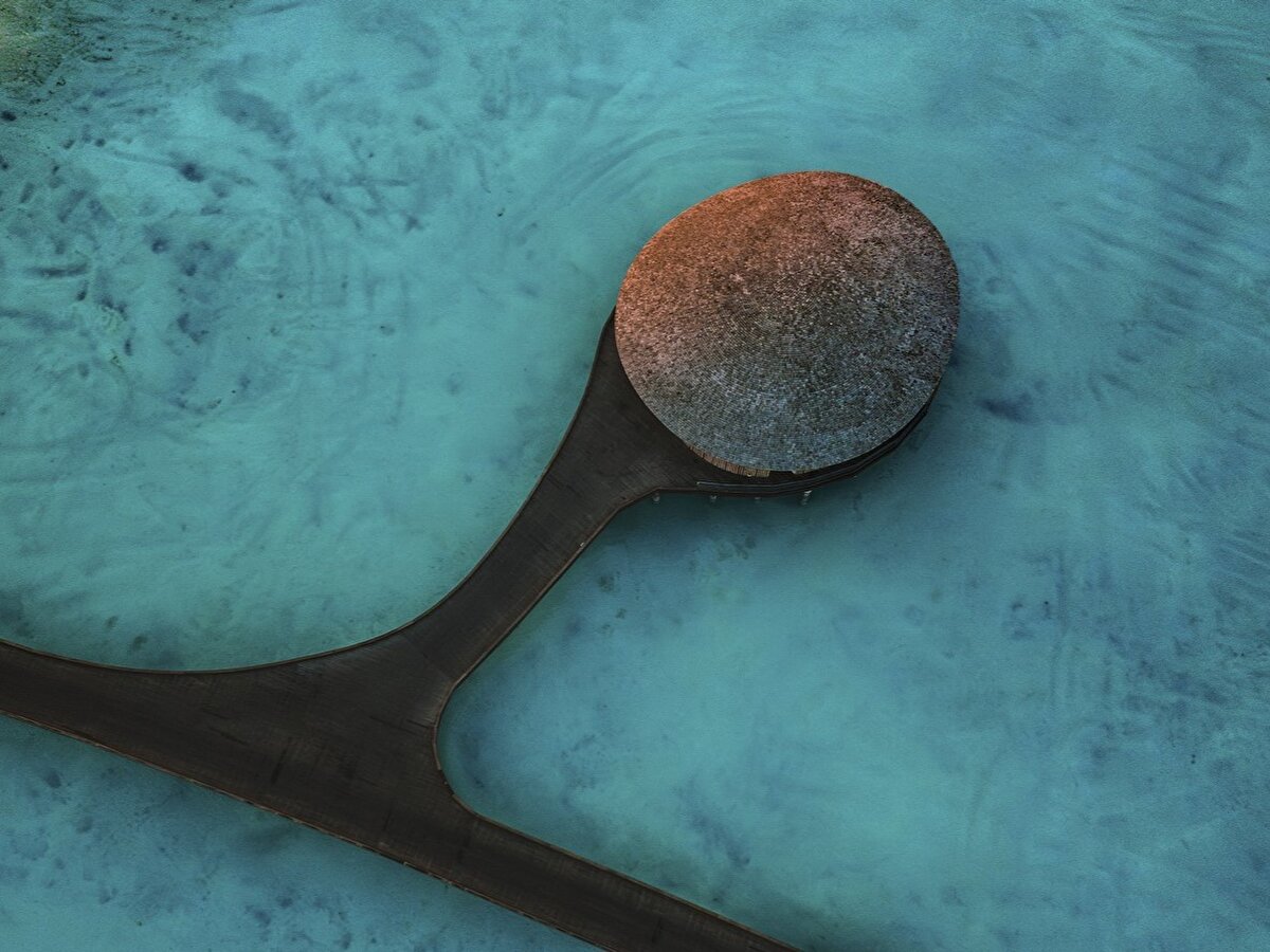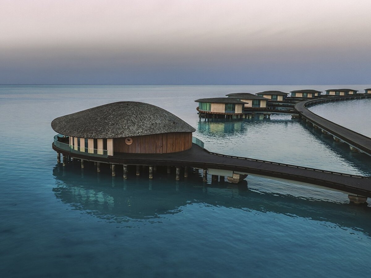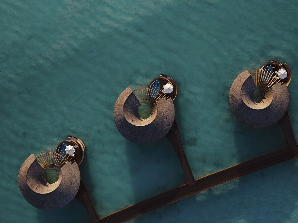 Okyanus üzerindeki villalar ise zengin mercan yaşamından ilhamla okyanus manzarasının kesintisiz manzaralarını sunuyor. Otel tesisleri de dahil olmak üzere tüm yapılar, mimariyi doğal çevreyle bütünleştirme hedefiyle mercan ve kumul biçimli bir plandan meydana geliyor.