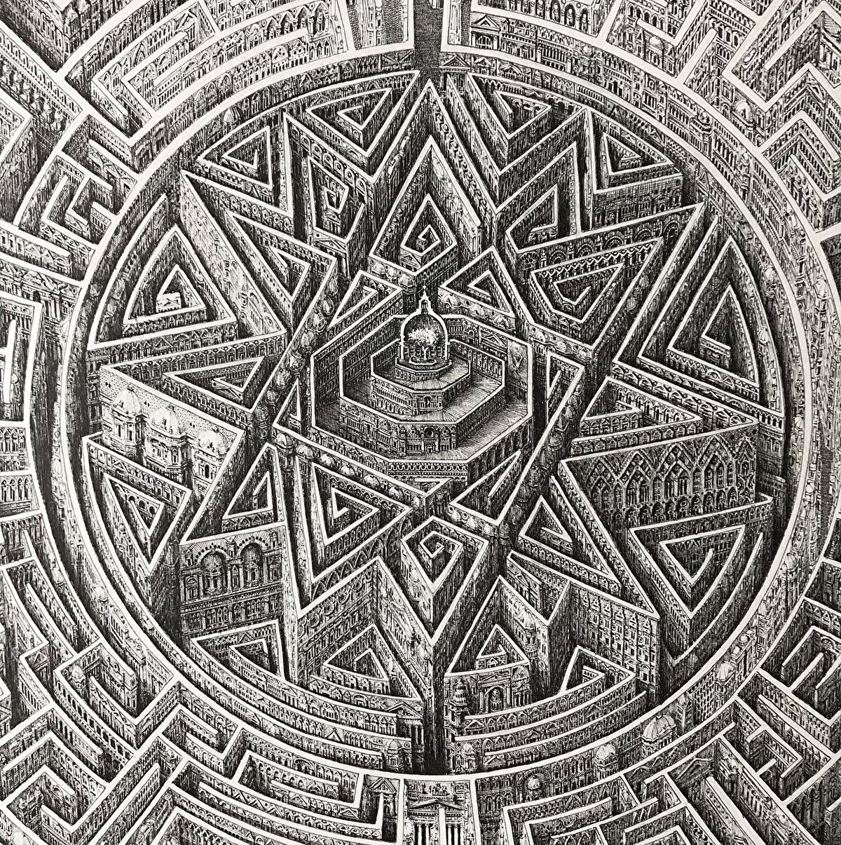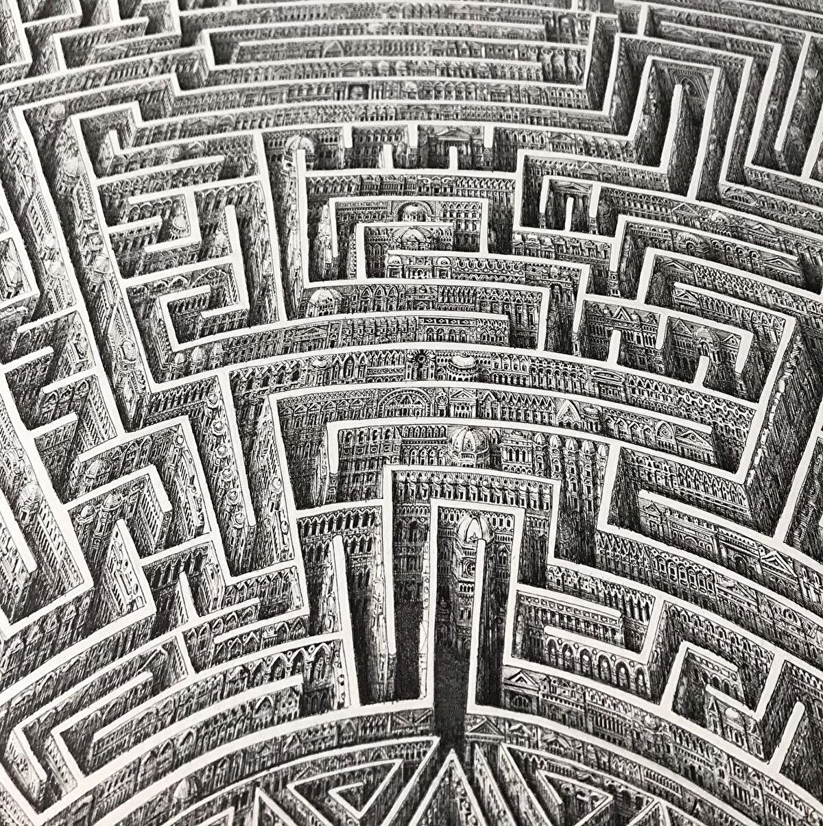 Kağıt üzerine tek renk kalemle çizimler yapan sanatçı, kentlerden ilham alarak gerçeküstü ve farklı düzlemlerde görseller üretiyor.