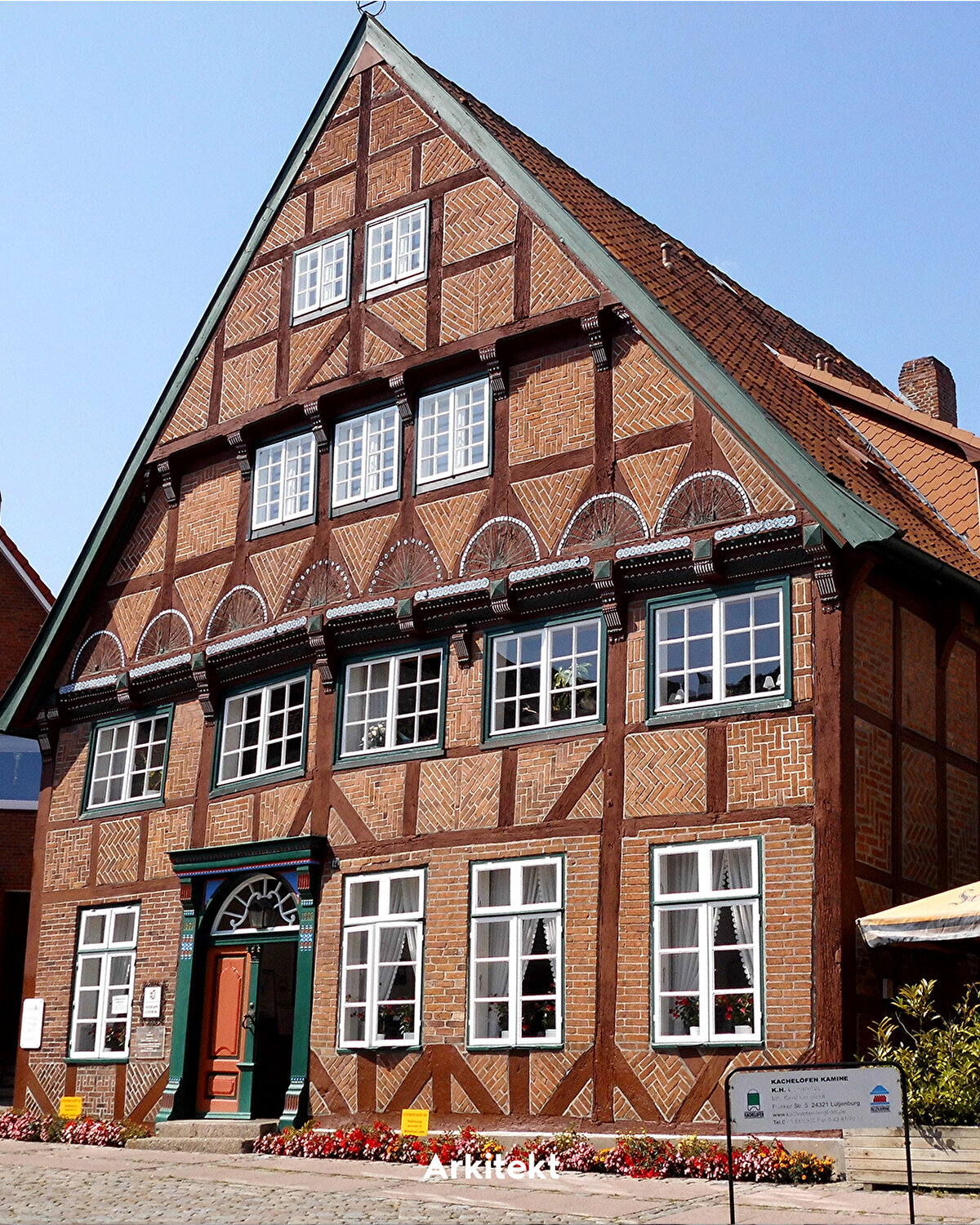 Bazı yapılarda Fachwerk taşıyıcı sistem dikkat çekerken, bu teknik günümüzde korunmuş cephelerde kendini okutuyor. Pencereler çoğunlukla küçük bölmeli ve çift kanatlı olarak düzenleniyor; açıklıklar cephe boyunca simetrik olarak yerleşiyor. Yapılar, dar taş döşeli yollarla sınırlanan parsellerde, küçük bahçeler ve peyzaj elemanlarıyla birlikte yer alıyor. Lütjenburg, mimari ve doğal dokusuyla bölgesel yapı geleneğini sürdürüyor.