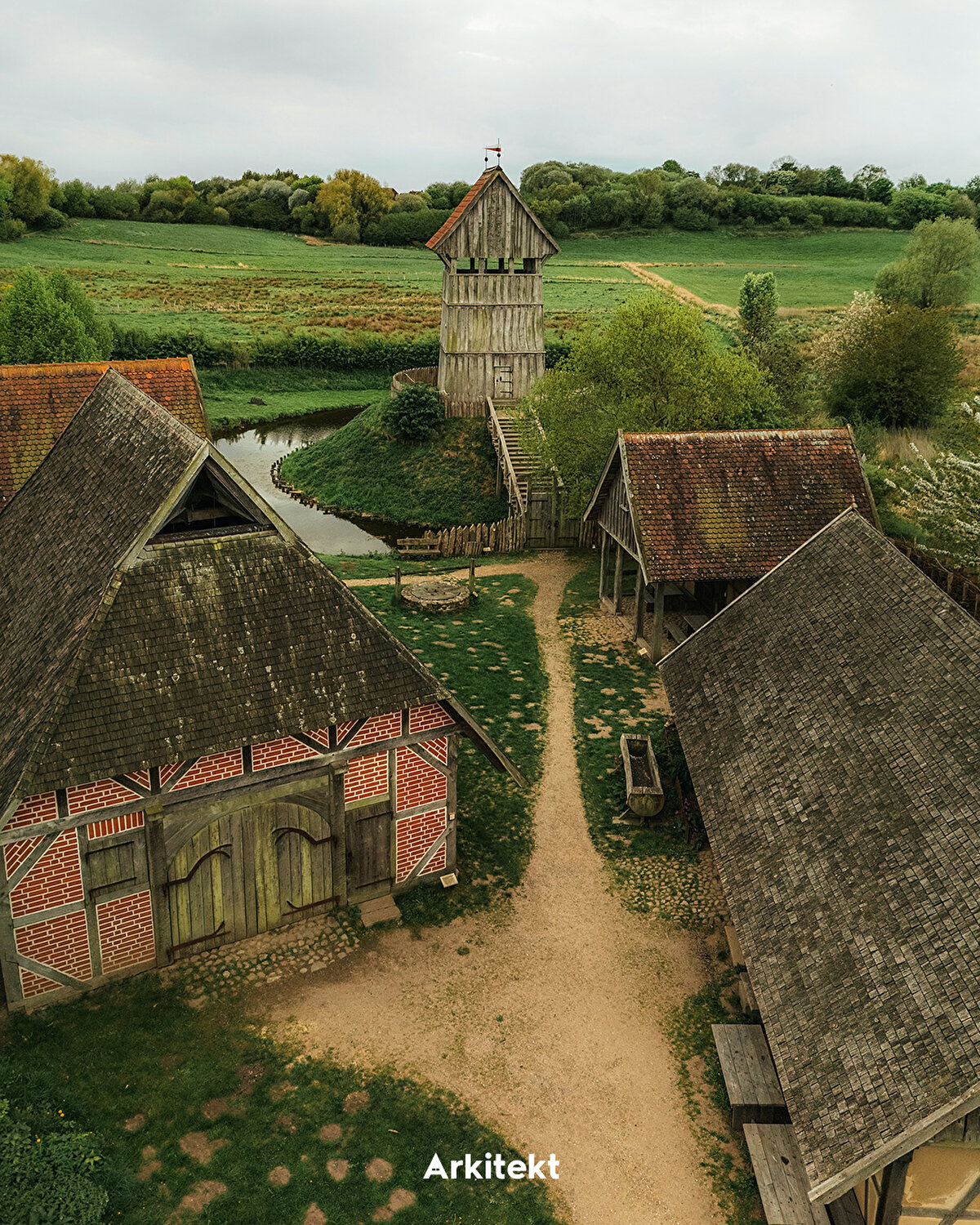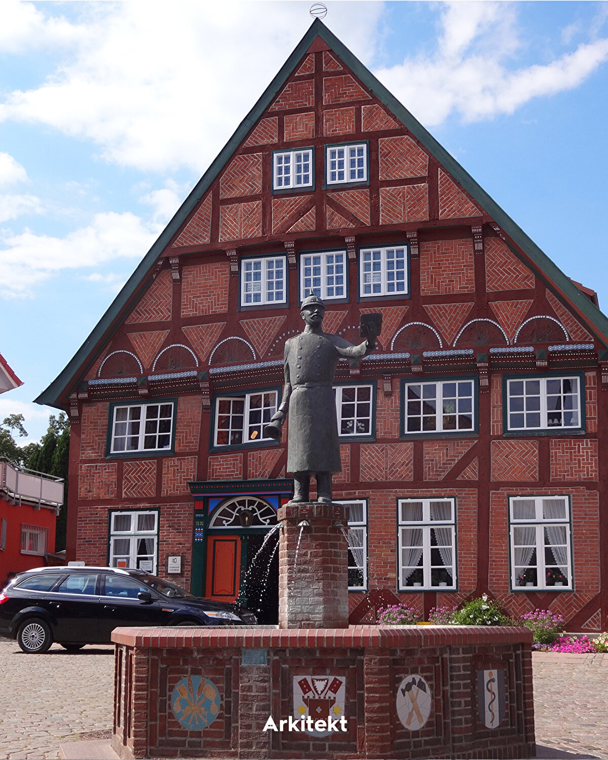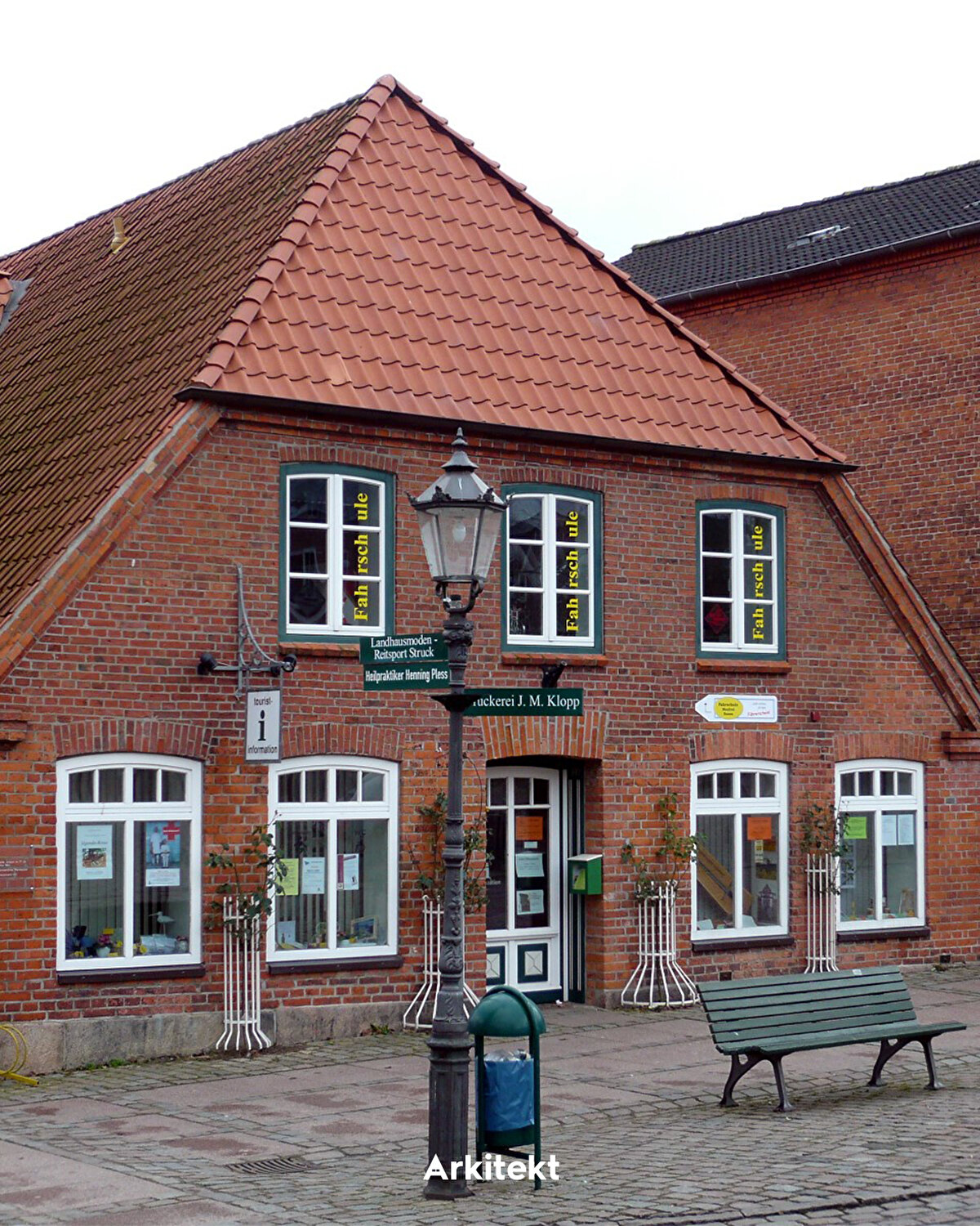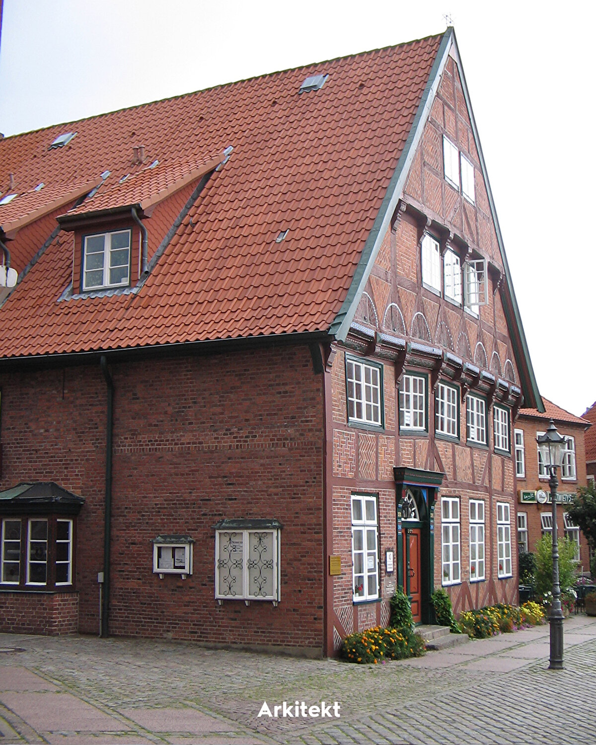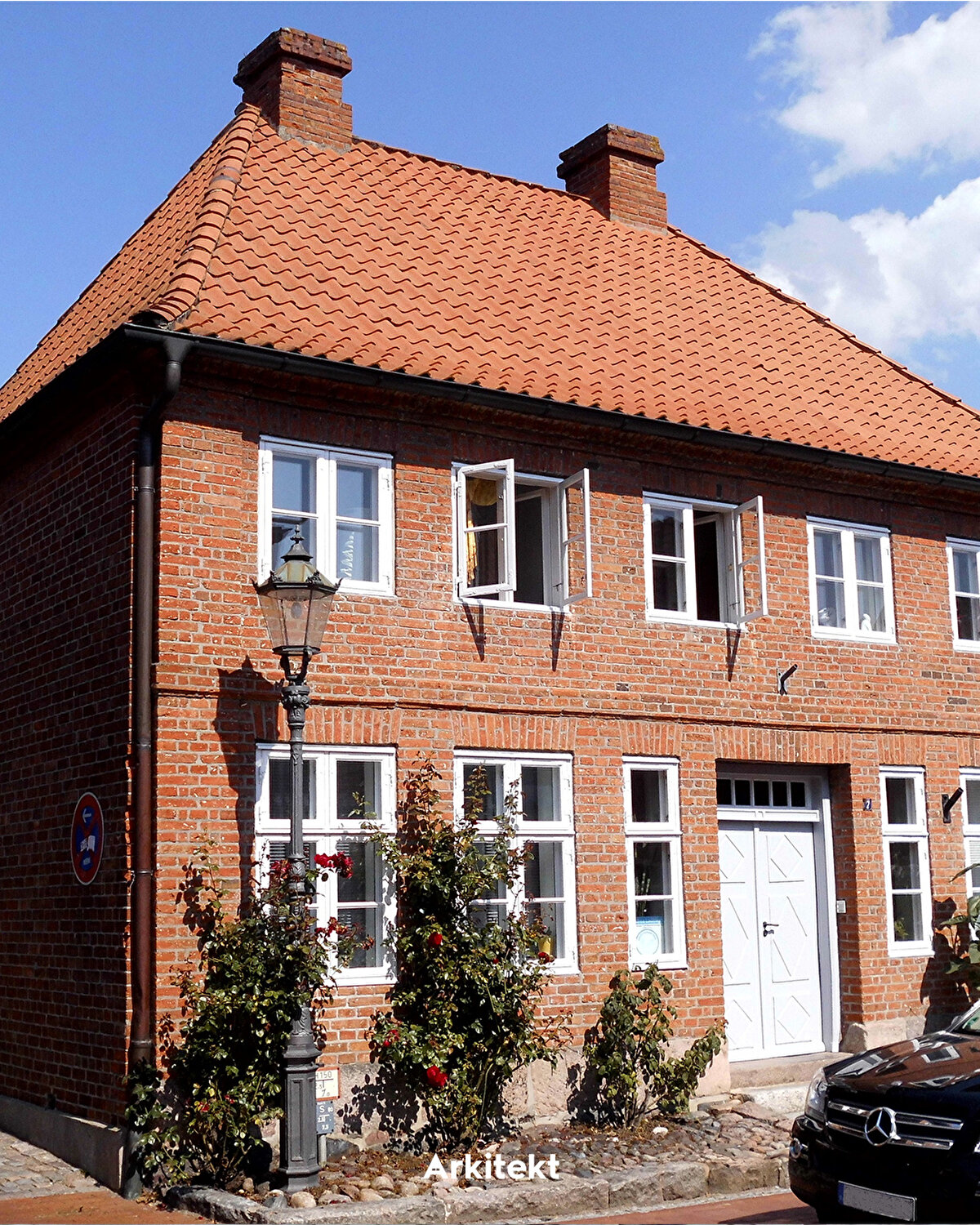 Fachwerk timber-framed structures are evident in some buildings, and this technique is still visible today in preserved facades. Windows are mostly small, divided into sections and double-winged; openings are symmetrically arranged along the facade. The buildings are located on plots bordered by narrow stone-paved roads, with small gardens and landscape elements. Lütjenburg continues the regional architectural tradition with its architectural and natural texture.