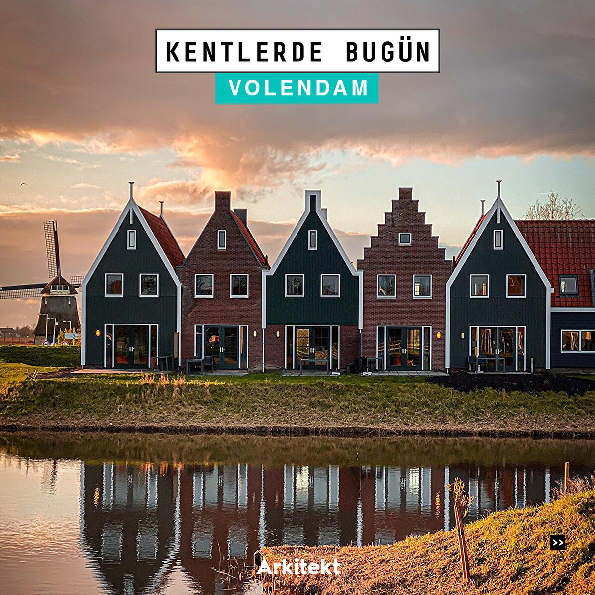 Geleneksel tipik Hollanda evleriyle ünlü olan Volendam'da yapılar, dar sokaklara sıralanıyor. Çatılar genellikle dik ve kiremitli olup, evlerin dış cephesinde parlak renkler, ahşap doğrama ve detaylar kullanılıyor.