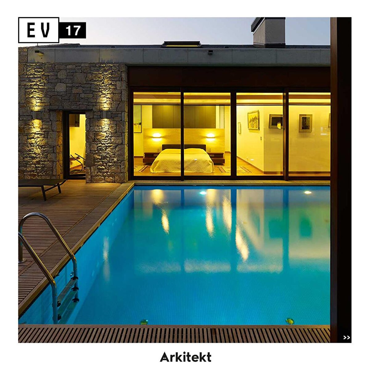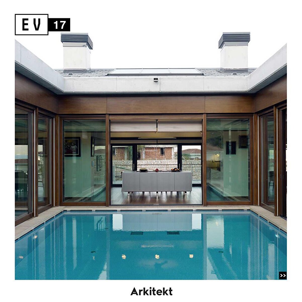 Oturma odası, mutfak ve yatak odası gibi tüm günlük aktivitelerin geçtiği yaşam alanları zemin katta bulunan yüzme havuzu etrafında düzenlenerek havuz evin odak noktası haline getirildi.