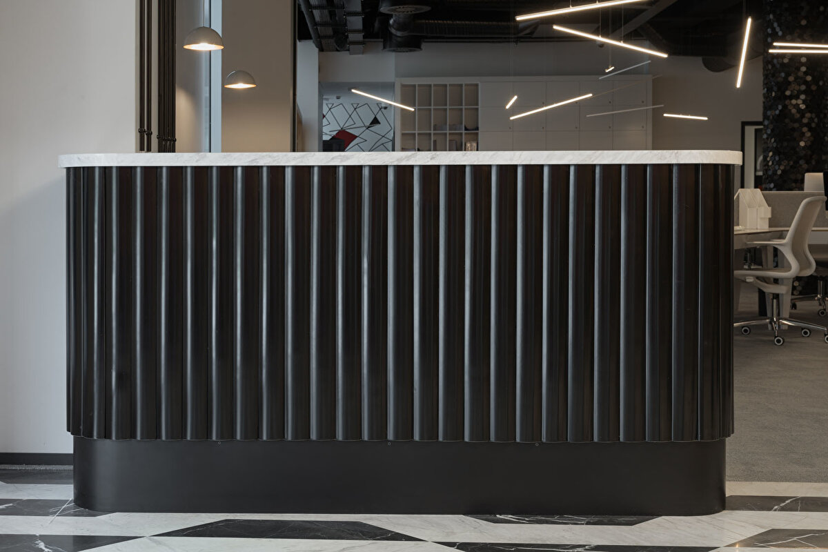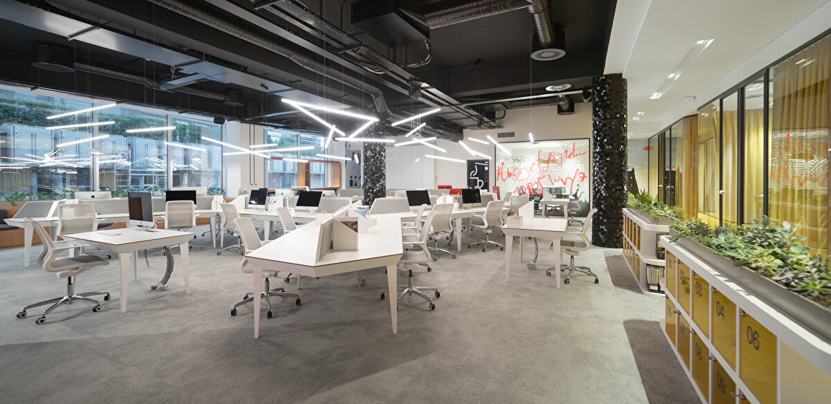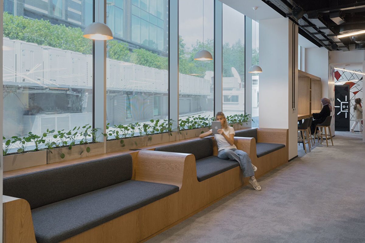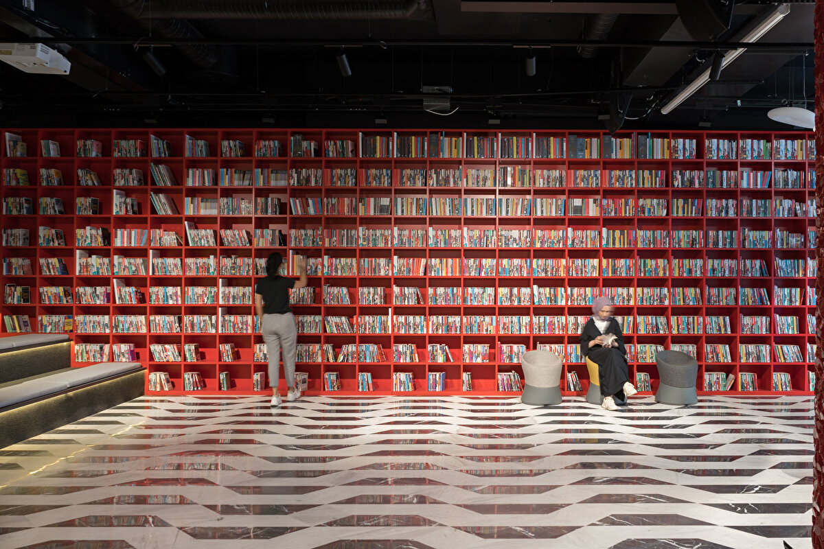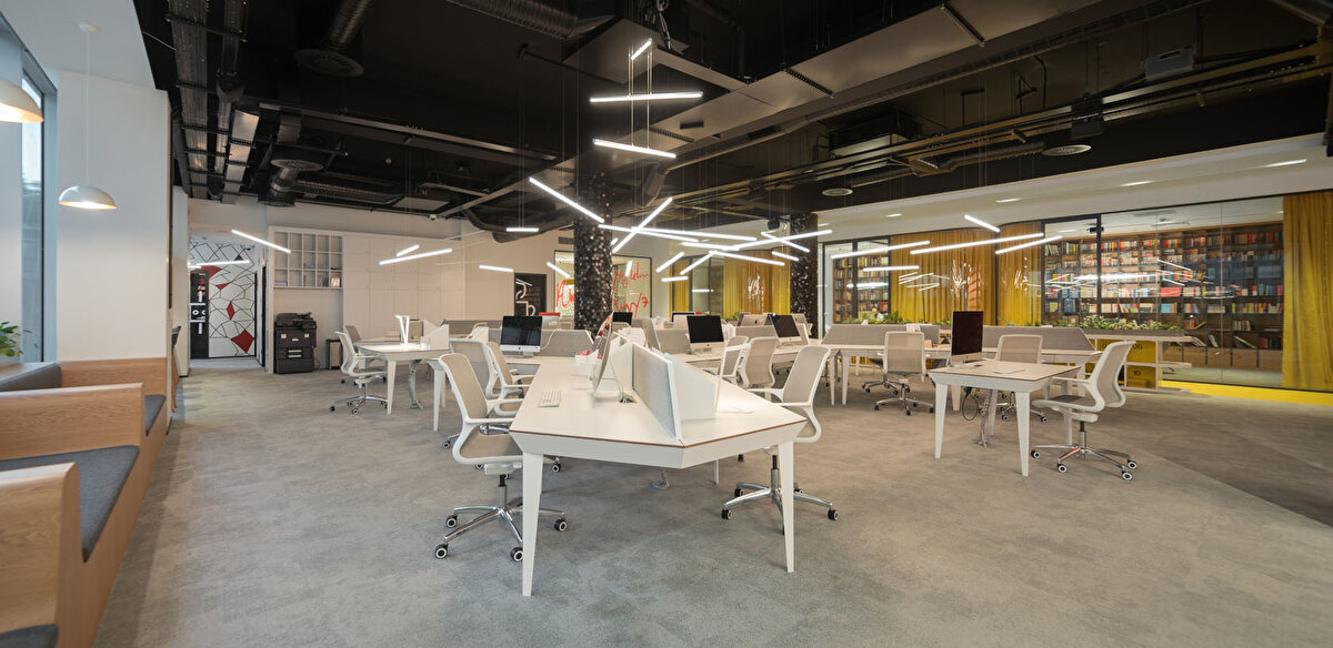 YDK Studio, Albayrak Holding'in Topkapı yerleşkesinde bulunan Ketebe Yayınları için, içerisinde açık ve kapalı ofislerin, etkinlik alanının ve mekanı karakterize eden kırmızı kütüphanenin yer aldığı bir ofis tasarladı. Bu geniş ve açık ofis alanı, editörlerin ve yöneticilerin kullanımlarına göre fonksiyonel olarak ayrıldı. Kullanıcıların olası ihtiyaçlarına cevap vermek amacıyla, mekanın içinde mutfak, oturma birimleri ve küçük bir çalışma standı tasarlandı. Ketebe Yayınları'nın marka kimliğinden referansla tasarlanan ikonik kütüphane ve kolonlar ile mekana renk vurgusu yapılırken, mobilyalara hakim olan beyaz renk ile mekanda bir denge sağlandı.