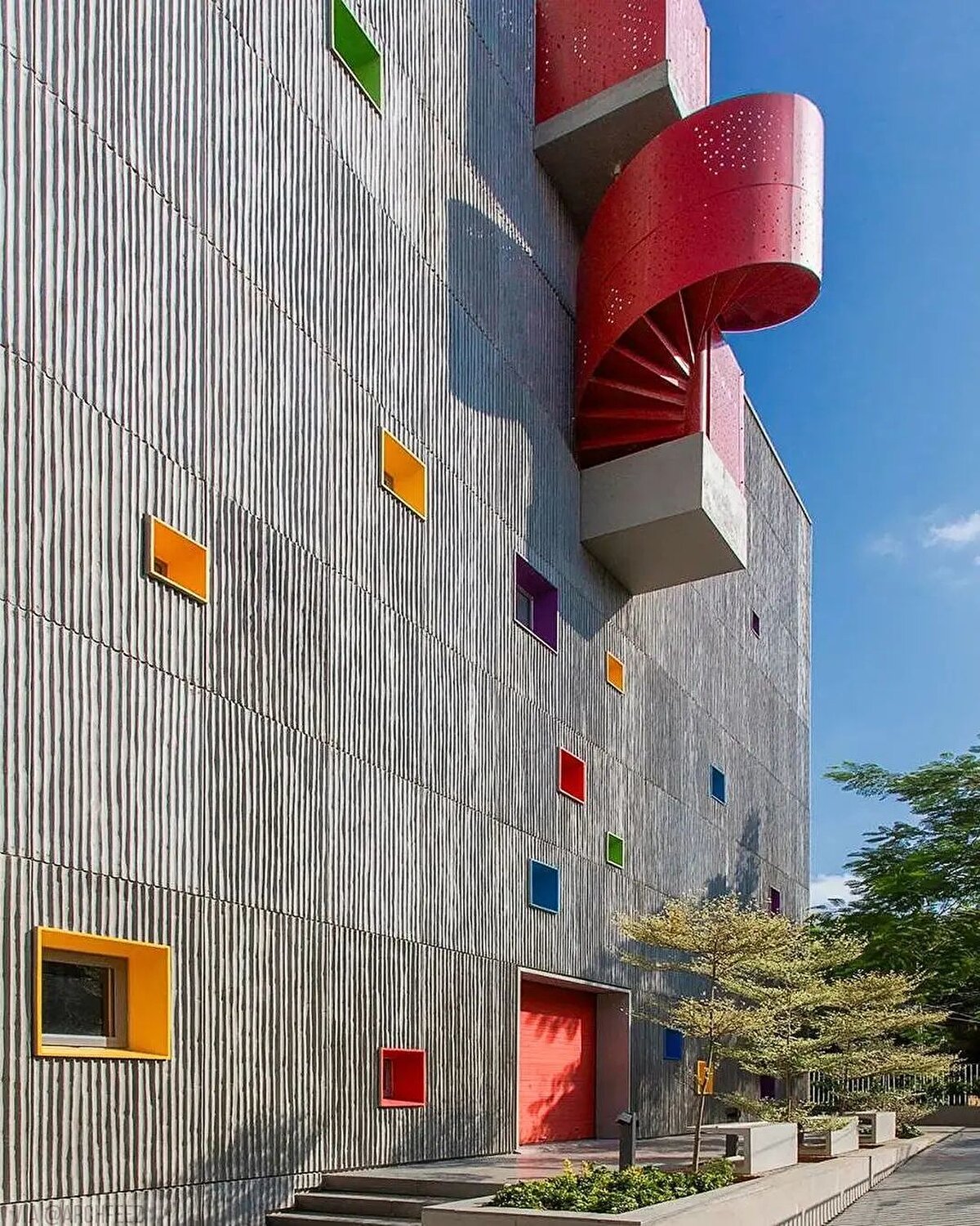Designed by KSM Architecture, this learning center is located in Besant Nagar, Chennai, 300 meters from the sea, on an area of 540 m². Aimed at children between the ages of 8-16, the center is especially designed for students who are learning according to their interests and are home-schooled. Designed with free-flowing volumes and open spaces, the building offers children an environment of discovery and interaction.