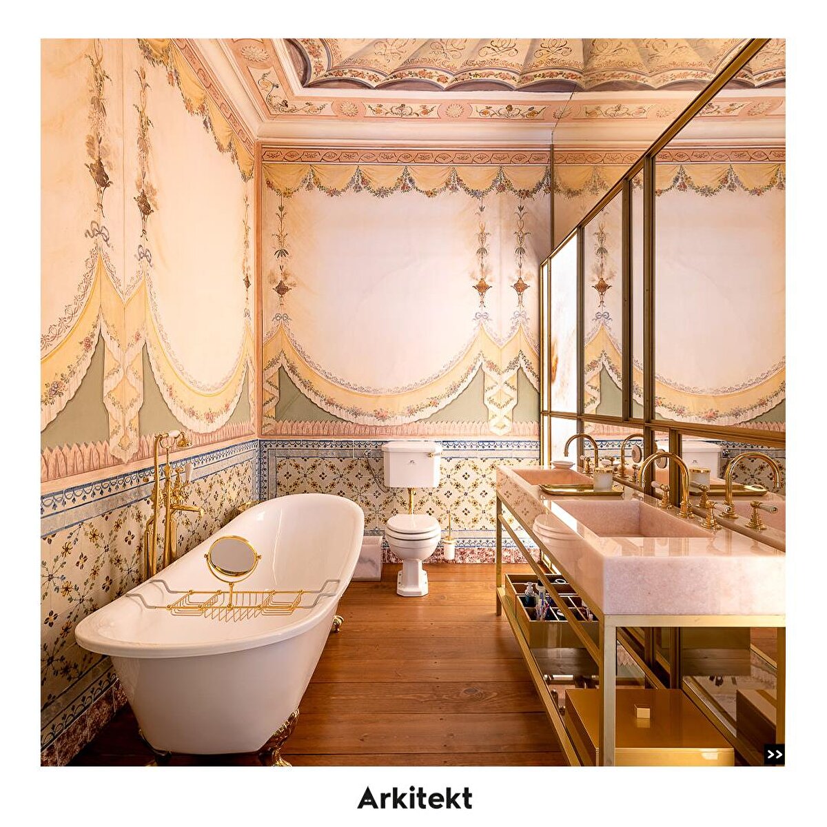 On bir odalı bir konuta dönüştürülen dairenin tüm duvarları ve tavanları orijinal resimler ile kaplı.