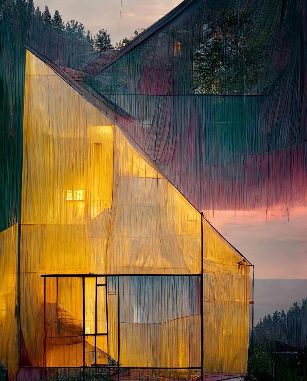 @matsysdesign, renkli kumaş parçalarını kullanarak yapıların cephelerini ön plana çıkartan enstalasyonlar tasarlıyor.