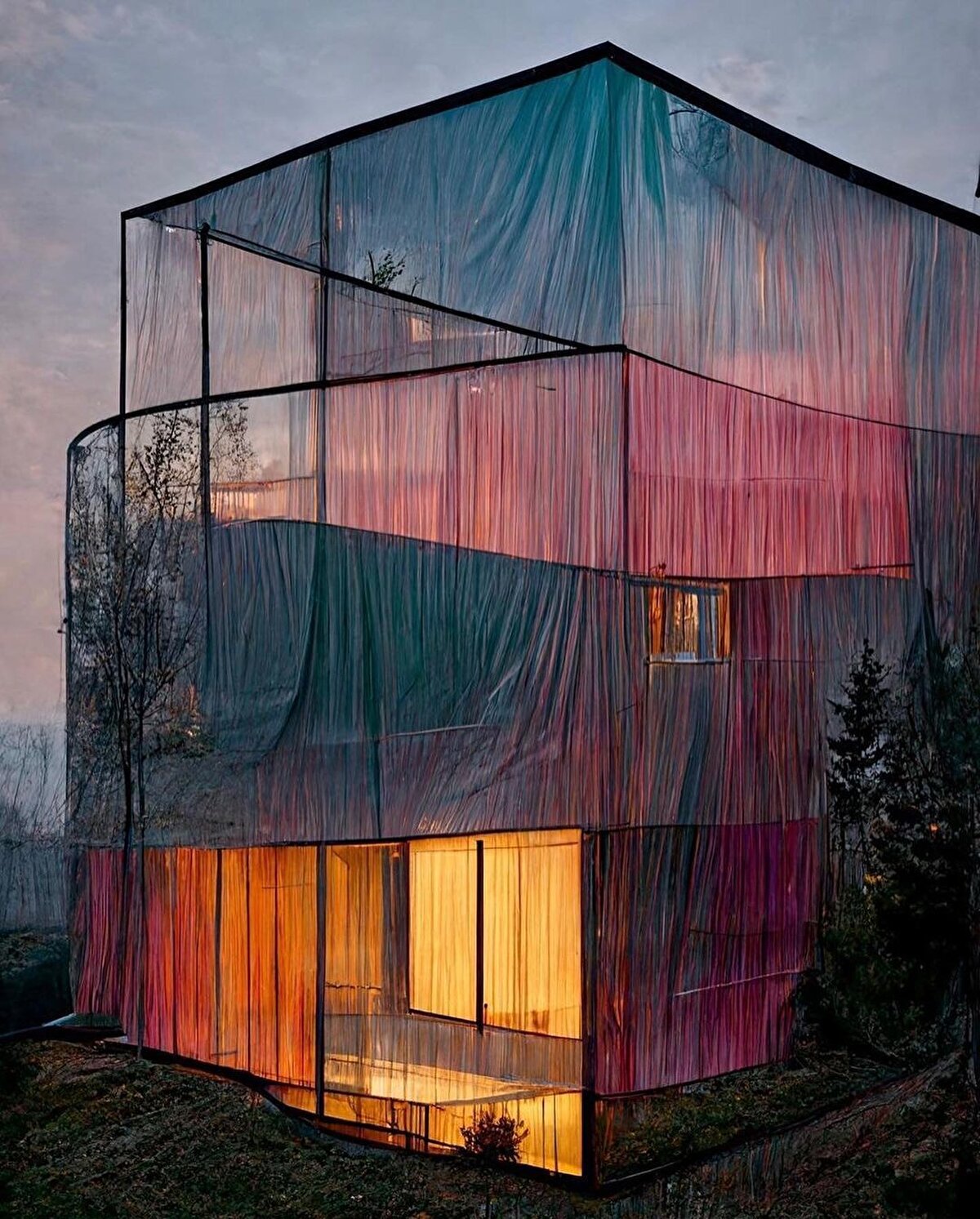 'Kumaş mimarisi' adını verdiği üretimler, ışık oyunlarıyla birlikte farklı deneyimler oluşturuyor.