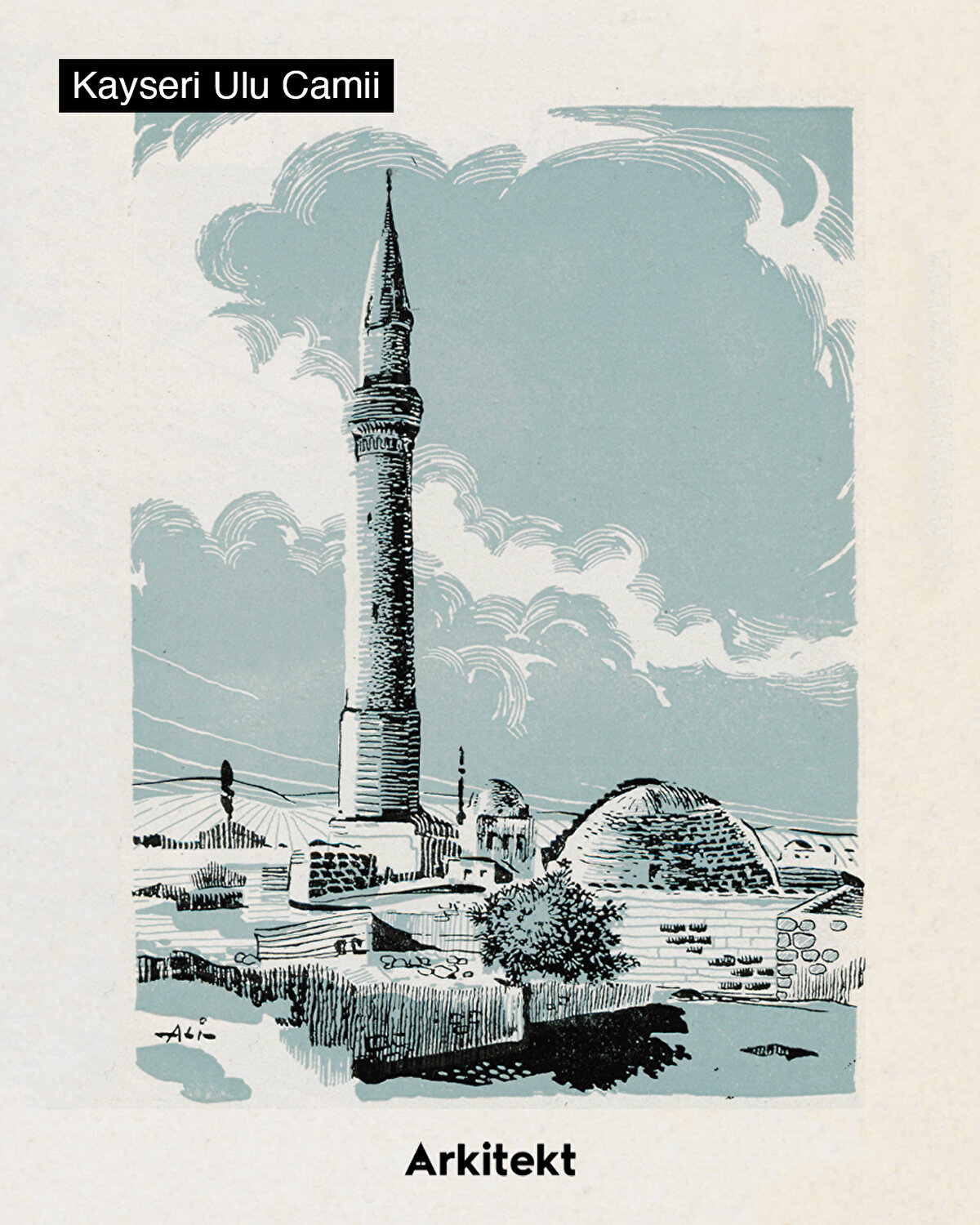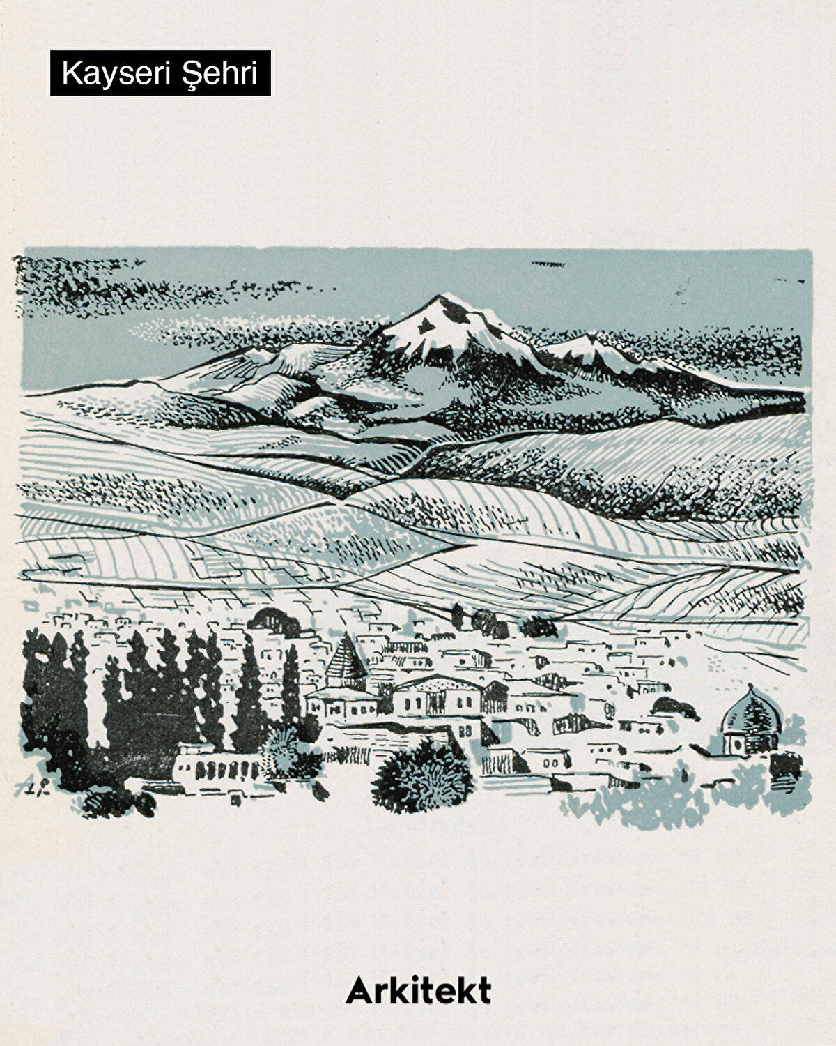Published in 1952 by the French Directorate of Press, Publishing, and Tourism, the booklet “Kayseri: Ville Aux Mausolées"—translated into English as “Kayseri: The City of Kümbets"—provides information about the structures built in the city during various periods, from the Seljuks to the Ottomans. Describing the buildings that shape the city—from mosques to kümbets—in a poetic language, the booklet is enriched with illustrations created by an artist signing as “Ali." Addressing the city during the midst of its modernization process, the booklet reveals the transformation Kayseri has undergone over the years.