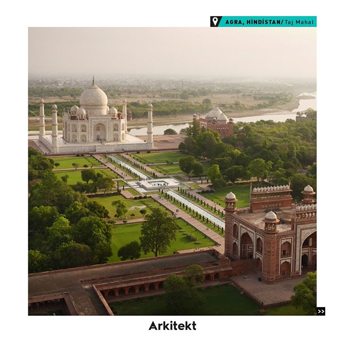 Tac Mahal, Jama Mescidi ve Lotus Tapınağı gibi mimari yapıların tümü, yerel manzaraları birlikte kadrajlanıyor.