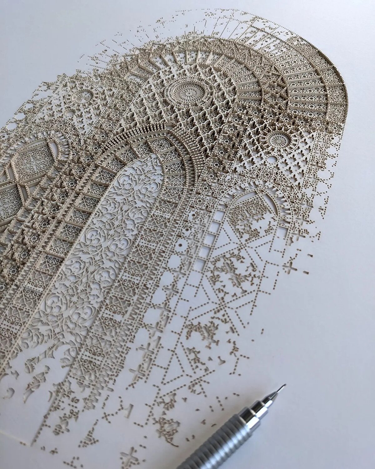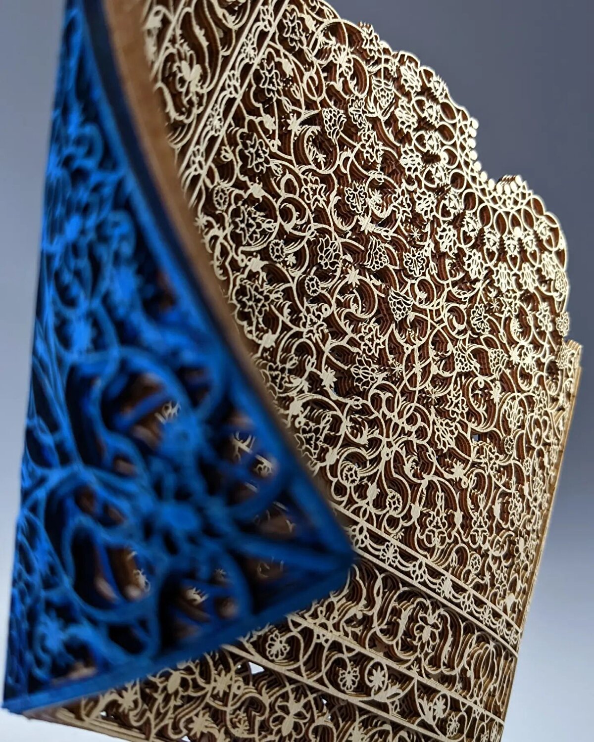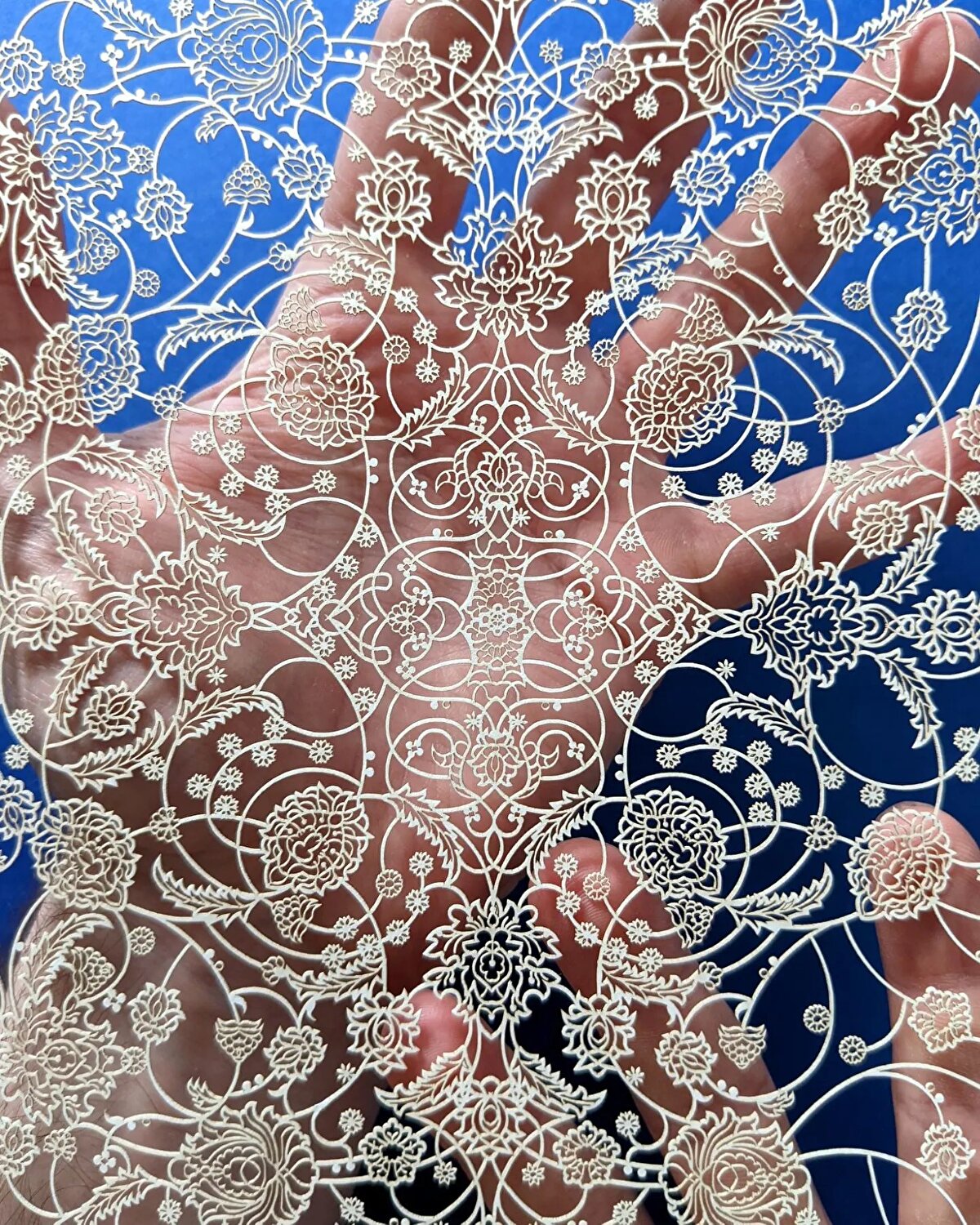 Üretimlerinde lazer kesim tekniğinden yararlanan sanatçı, farklı malzemelerle mikro ölçekte desenler üzerinde çalışıyor.