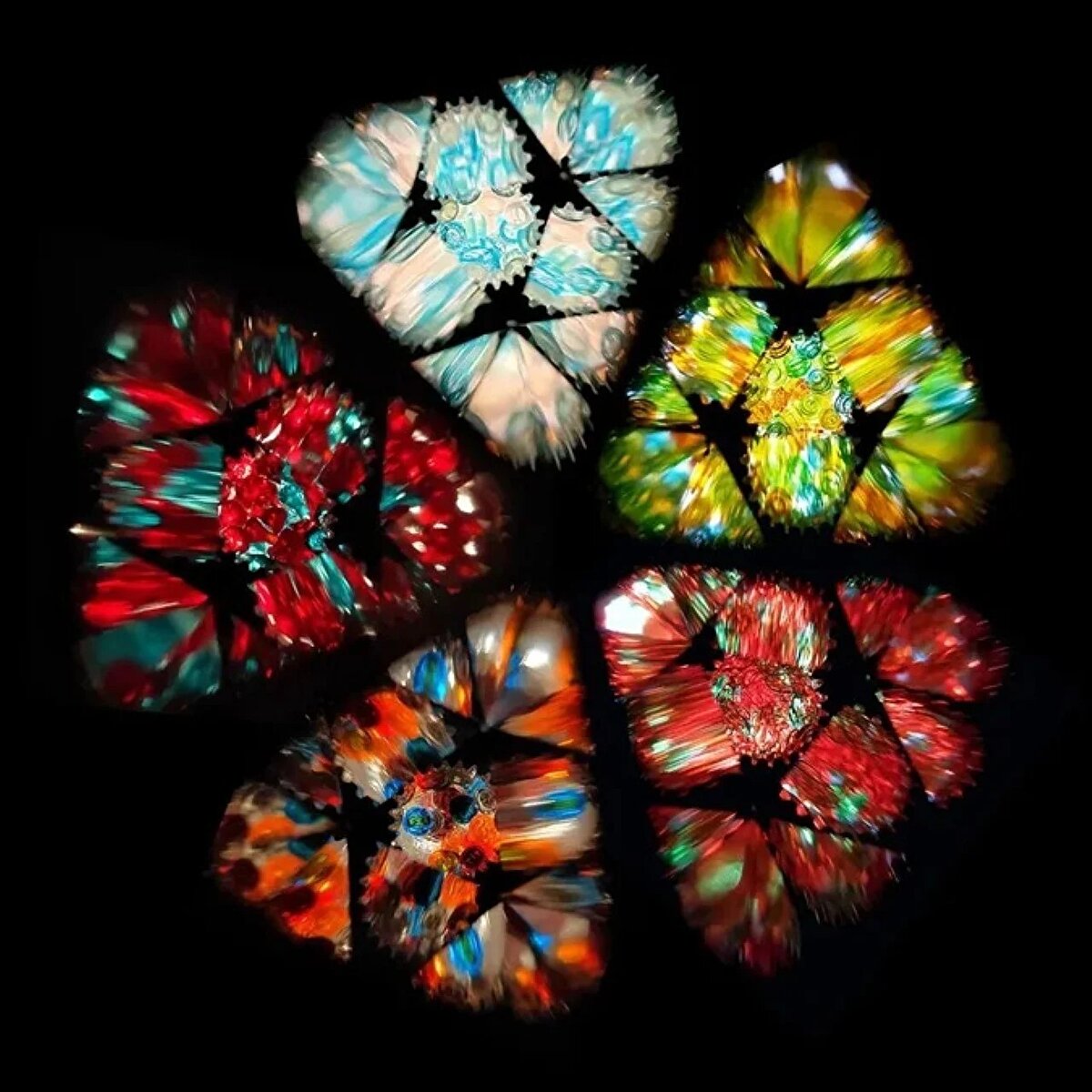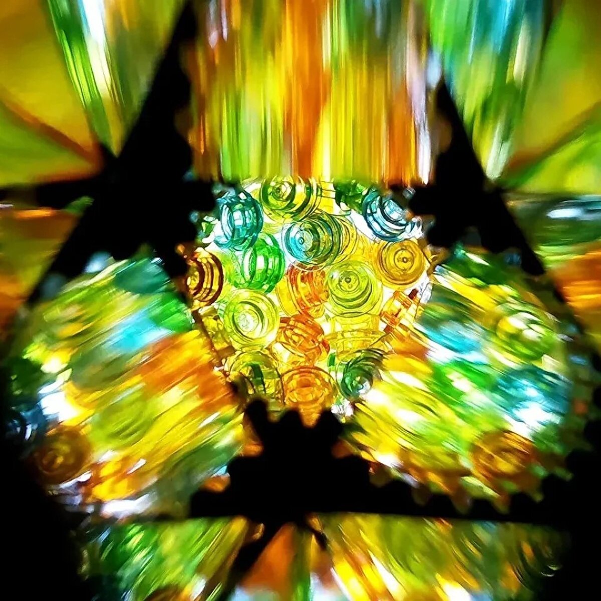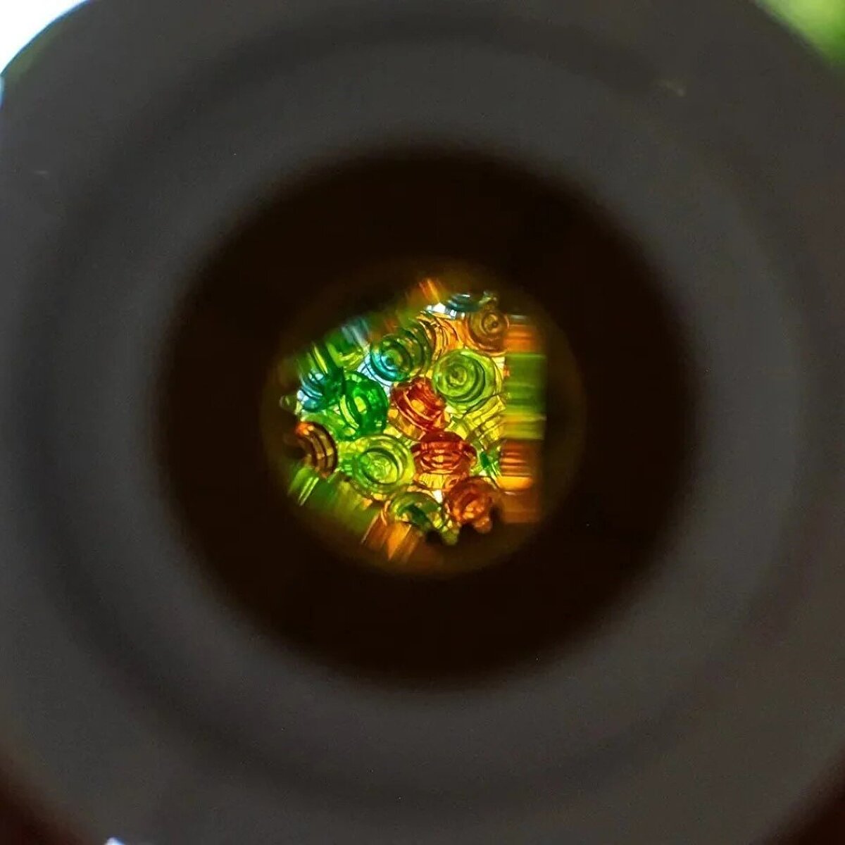 The translucent spikes added to the inner surface of the kaleidoscope create random geometric patterns with reflected light. Although the reflections are not as clear as a conventional mirror, the slight blurring gives the images a unique character. The project directly involves the user in the production process and encourages them to experience the design. KaLEGOidoscope is available as a MOC (My Own Creation) for community voting on the LEGO Ideas platform, with the potential to become an official LEGO set if it receives enough votes.